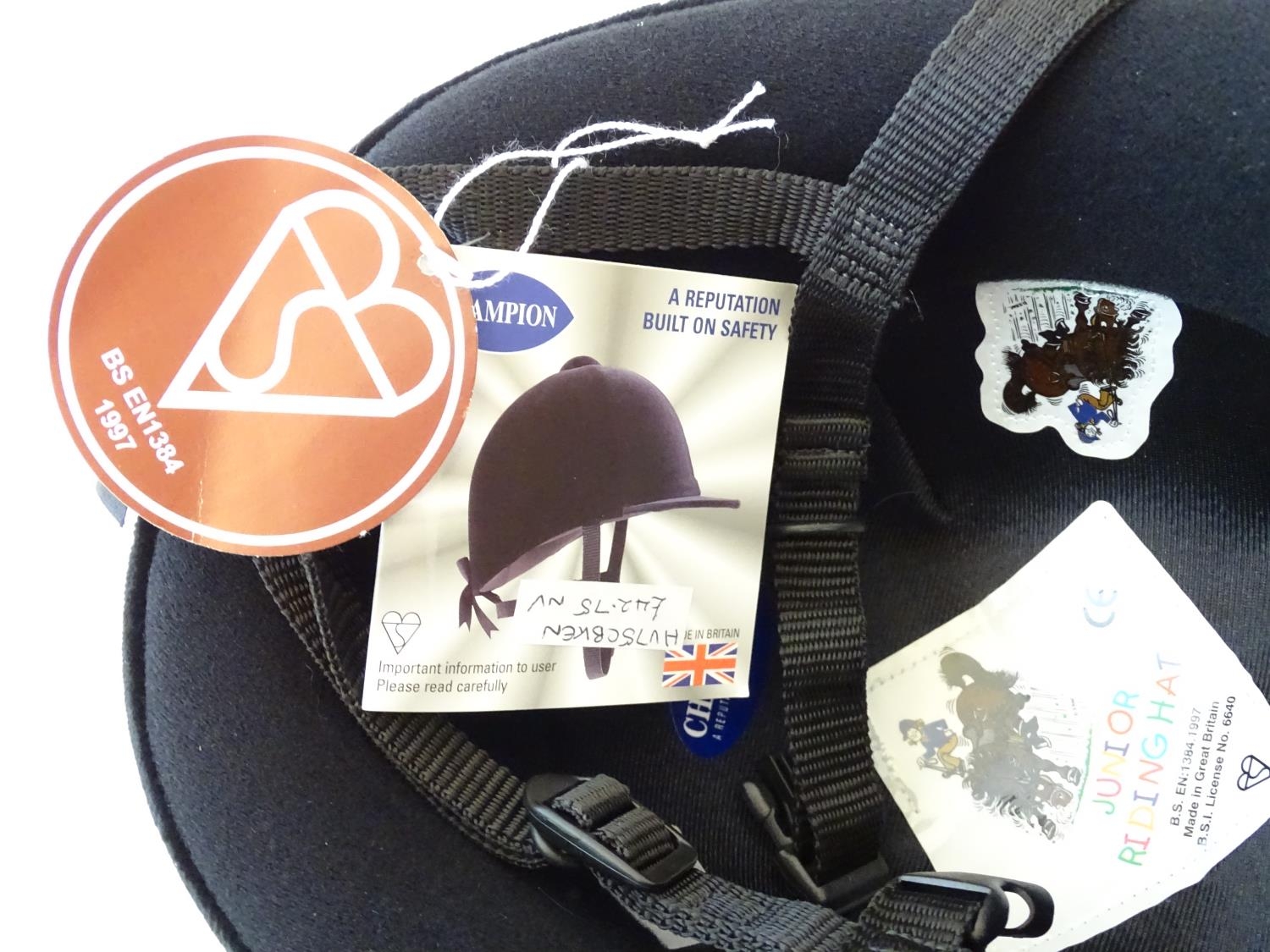 A Champion junior jockey helmet / horse riding hat in black (size 7.5), with tags