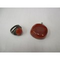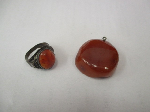 LARGE AMBER PENDANT AND ANTIQUE AMBER RING