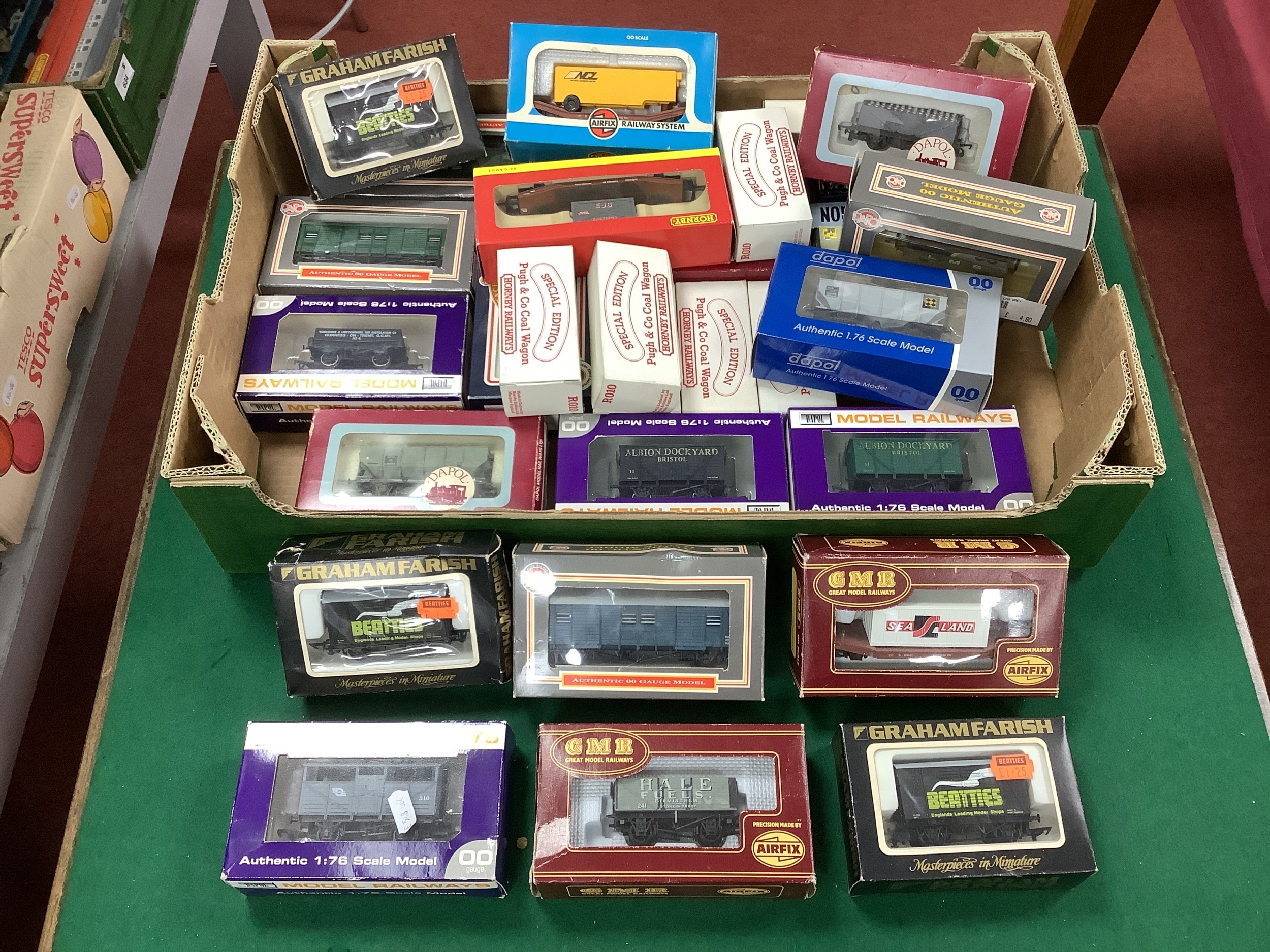 Approximately twenty-eight boxed 00 gauge wagons by Hornby, Dapol, Airfix and others.