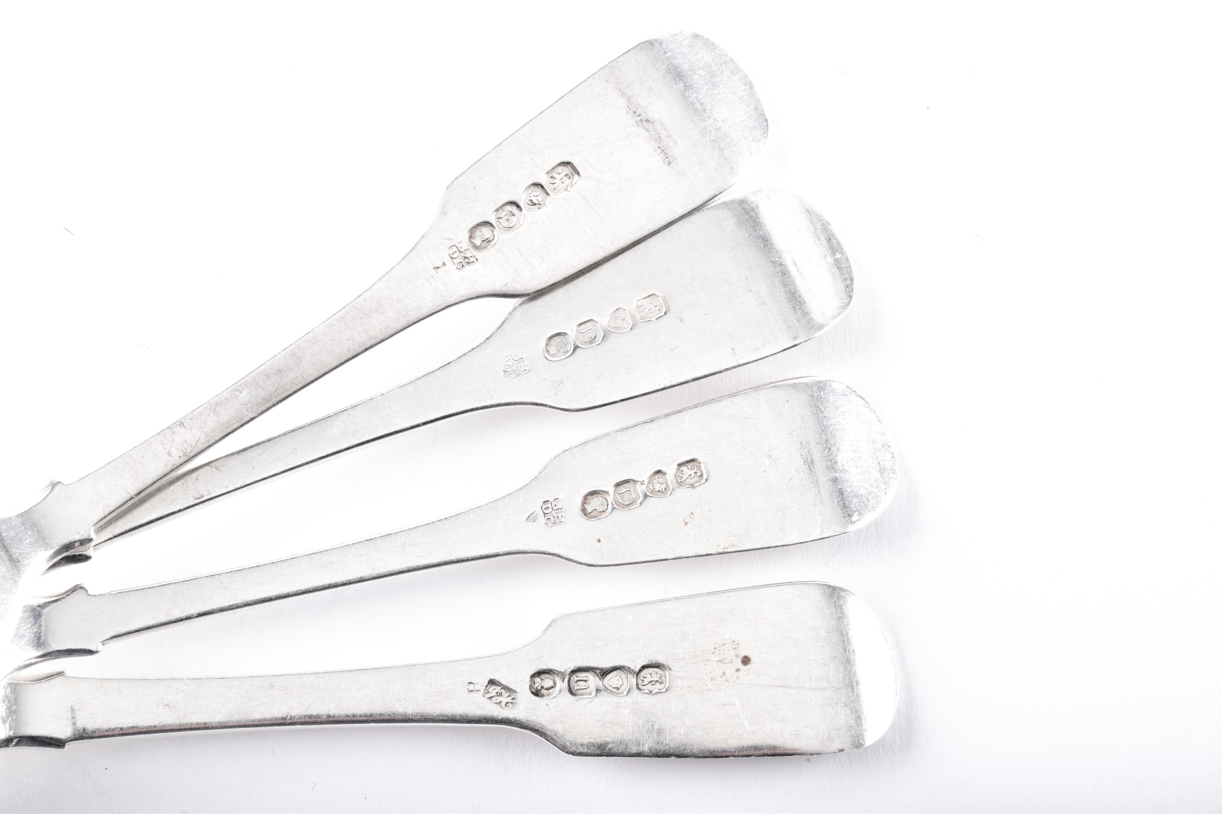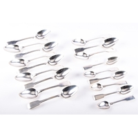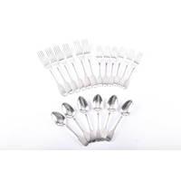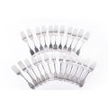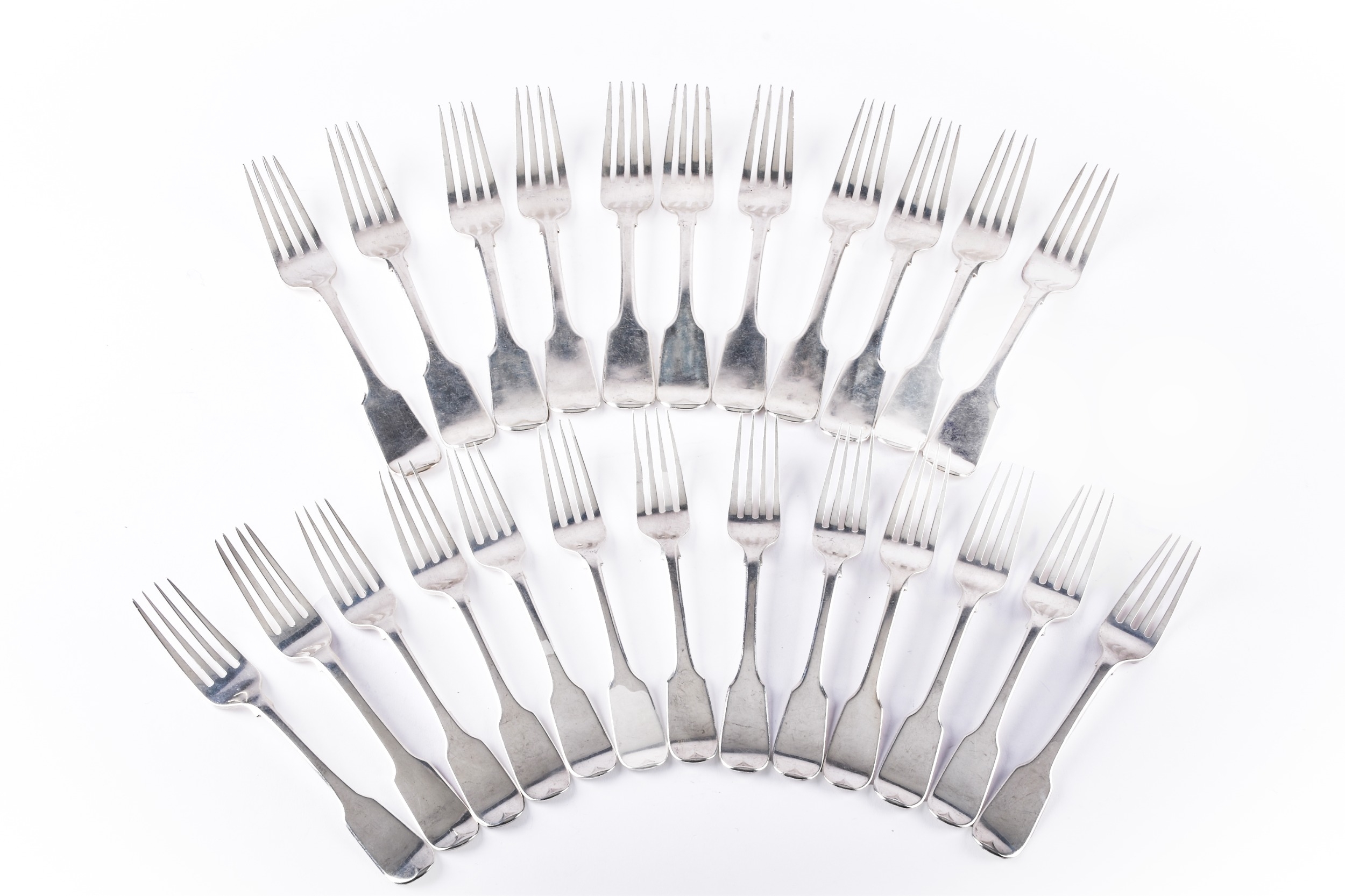 A collection of Victorian silver forks, including a set of twelve dinner forks and twelve dessert forks, all hallmarked for all hallmarked for London 1839 by Samuel Hayne & Dudley Cater, fiddle pattern, dinner forks 20 cm, dessert forks 16.8 cm long. (24)