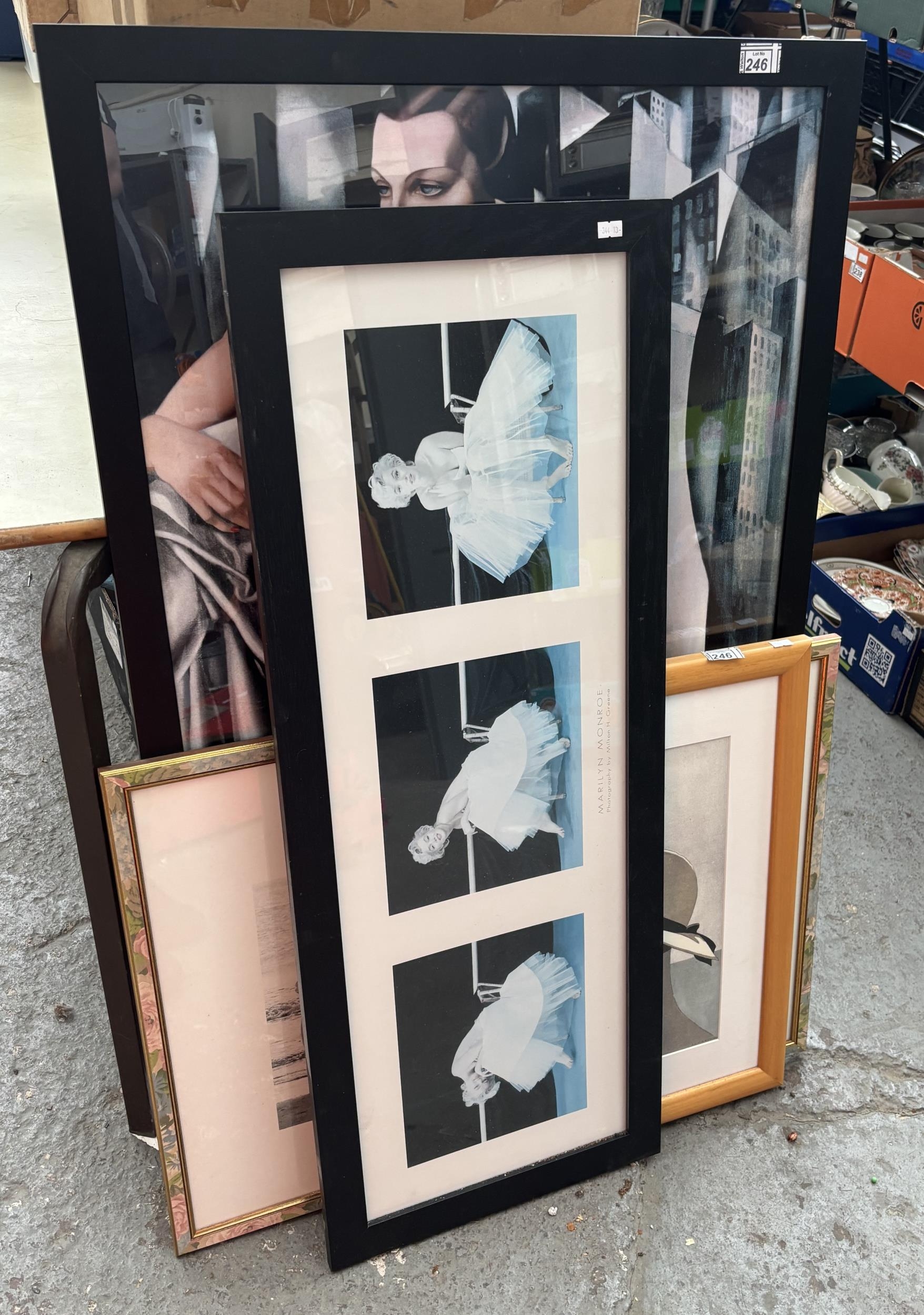 Quantity of framed and glazed prints including Marilyn Monroe