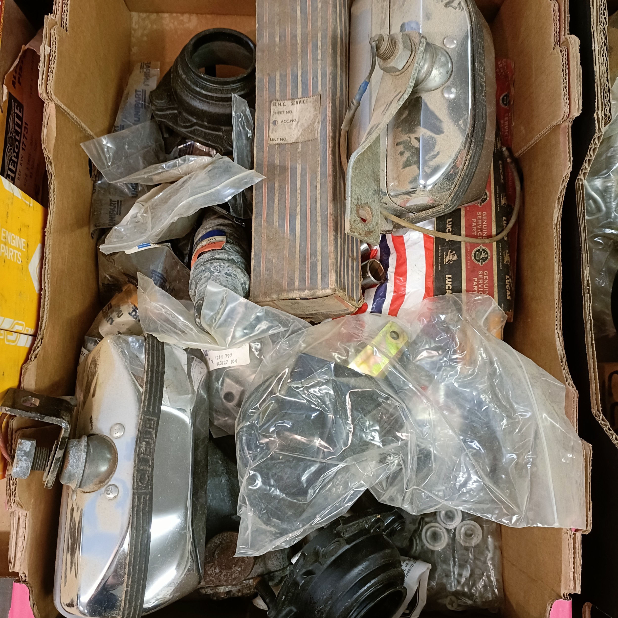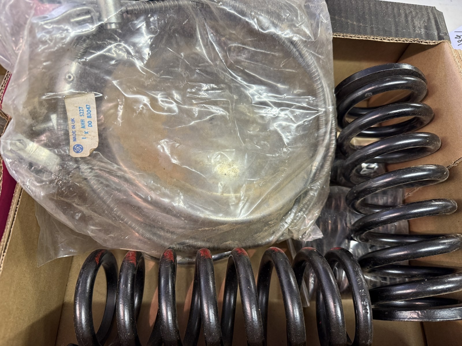Assorted new old stock and other parts, including springs, cylinders and other items (2 boxes)
