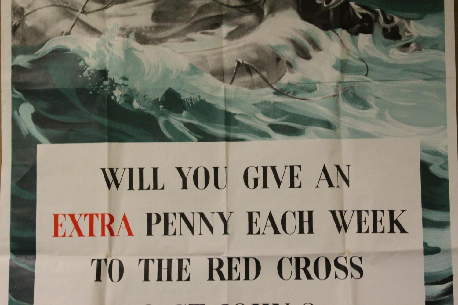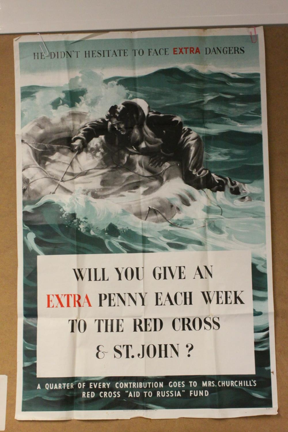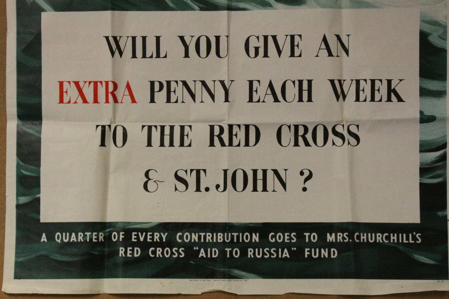 Original World War II Advertising Poster - Mrs Churchill's Red Cross ' Aid to Russia Fund ' ' Will you give an Extra Penny each week to the Red Cross & St John? ', 50cms x 75cms