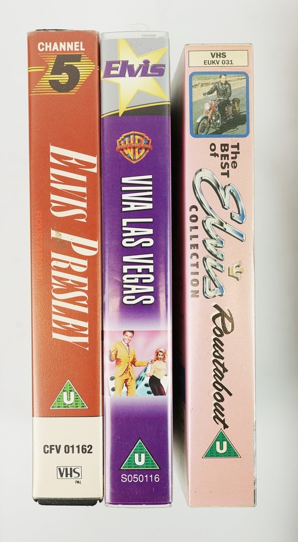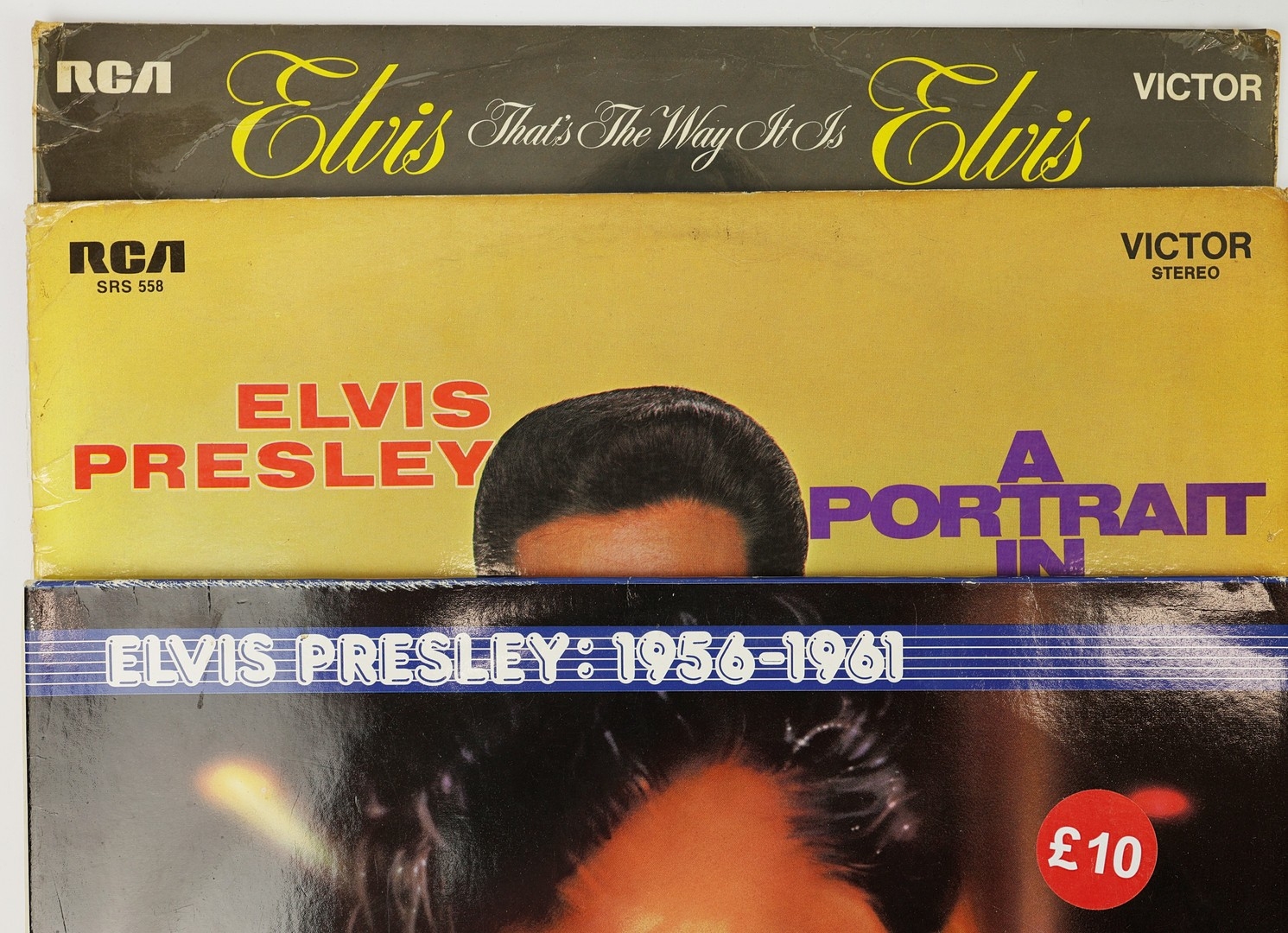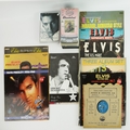 A COLLECTION OF ELVIS PRESLEY LPs, BOOKS & EPHEMERA (15). To include 8 LPs (including two box sets), 1 book, 3 video cassettes, and a selection of ephemera. Mixed condition, see images. LPs not play tested.