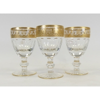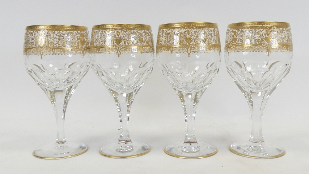 De Lamerie Fine Bone China, 4 matching Wine Glasses with heavy gilt decoration.. Made in England. (4)