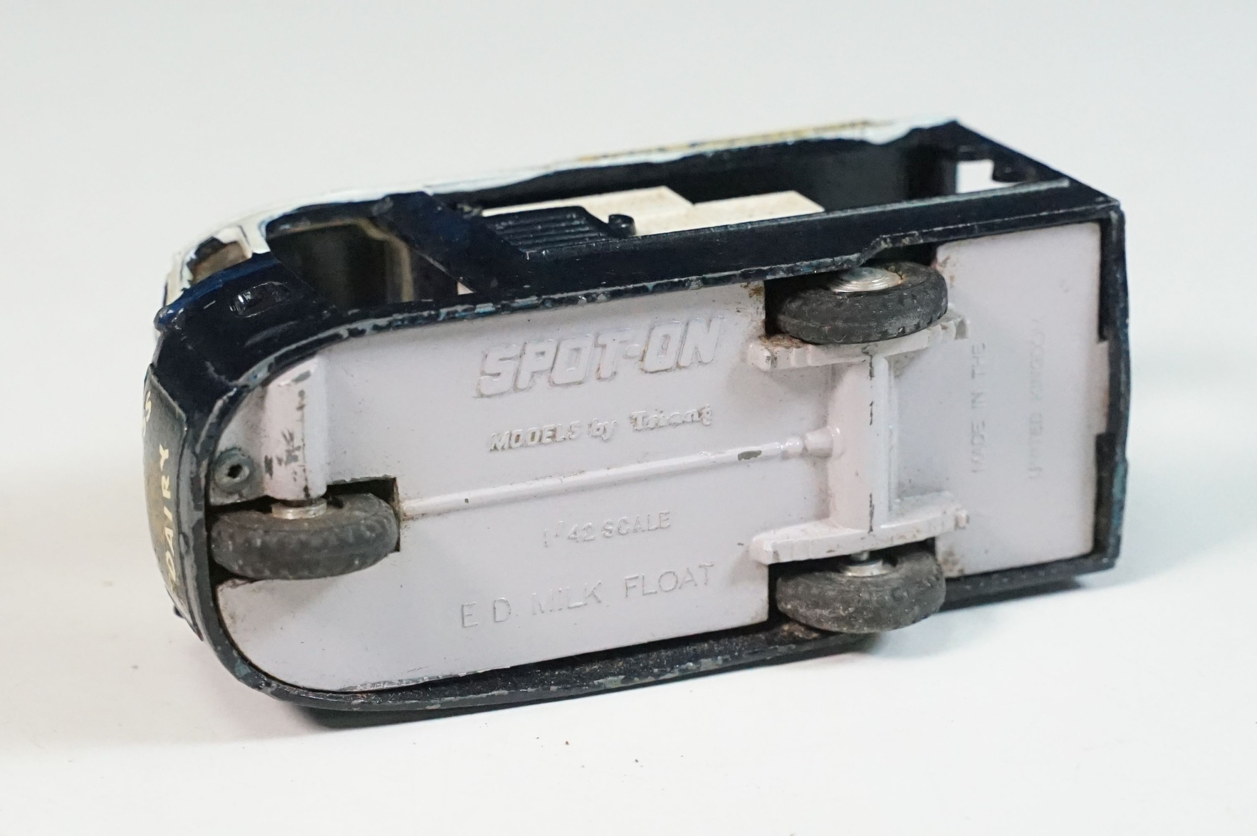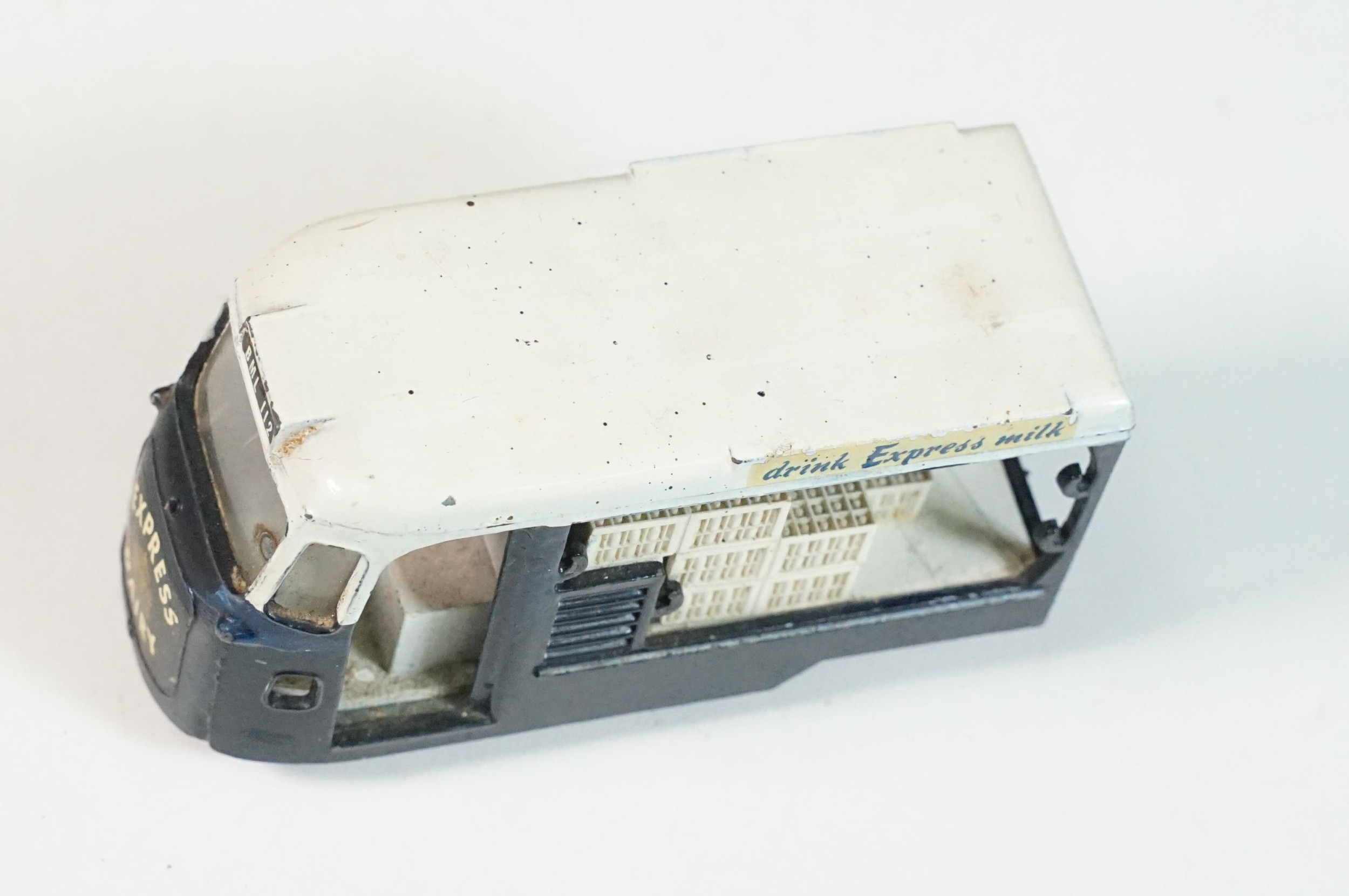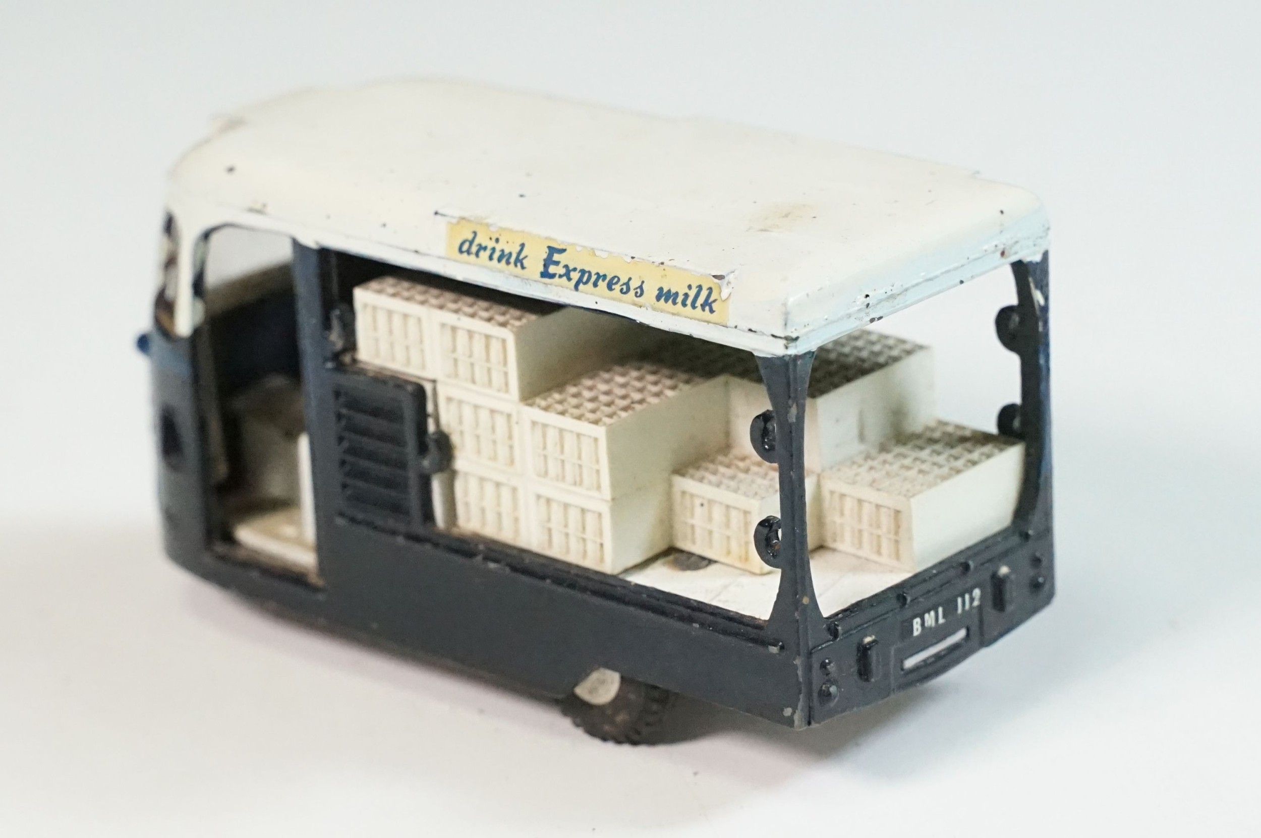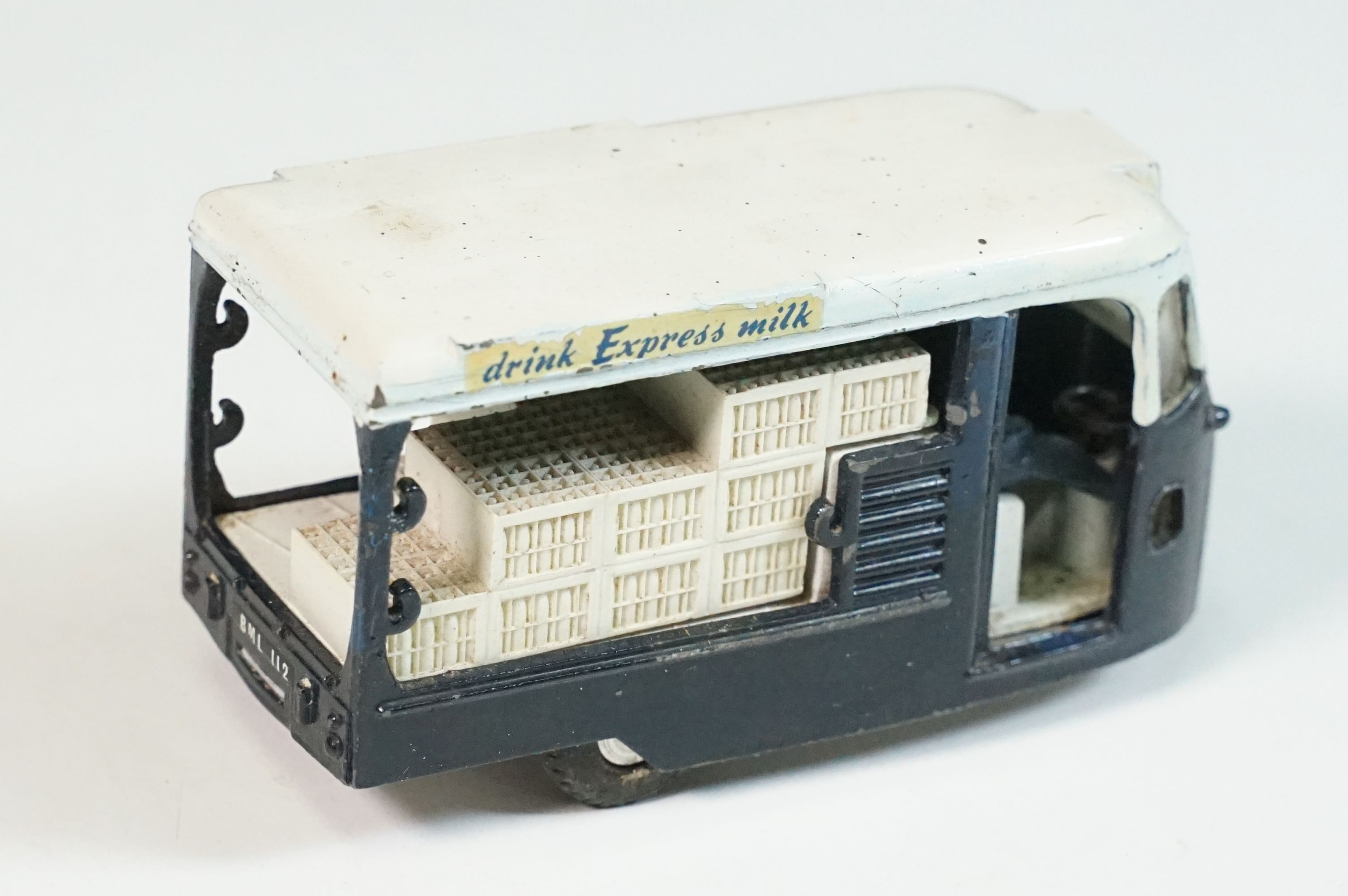 Boxed Triang Spot On 271 Express Dairy Van diecast model, with driver figure and crates, play wear and marks and grubby box missing an end flap