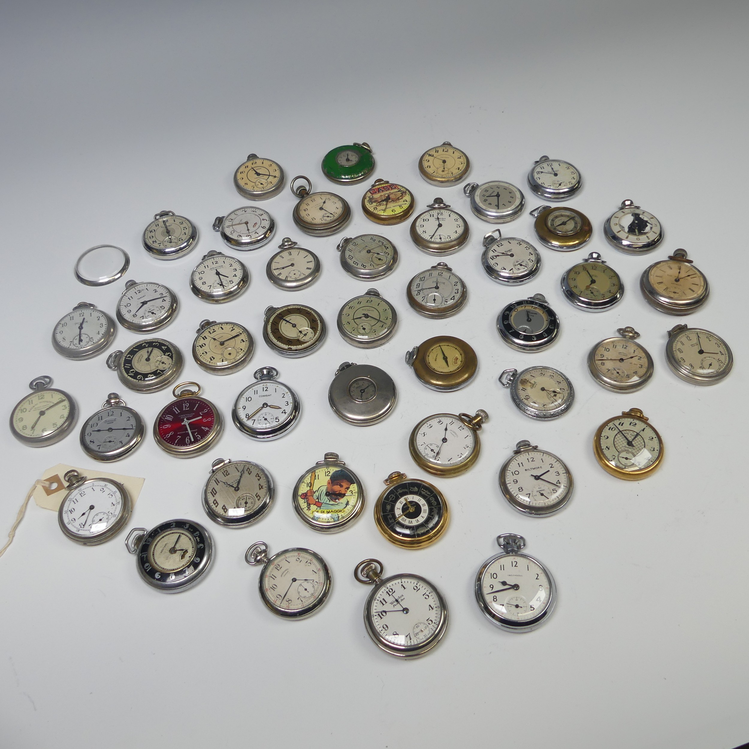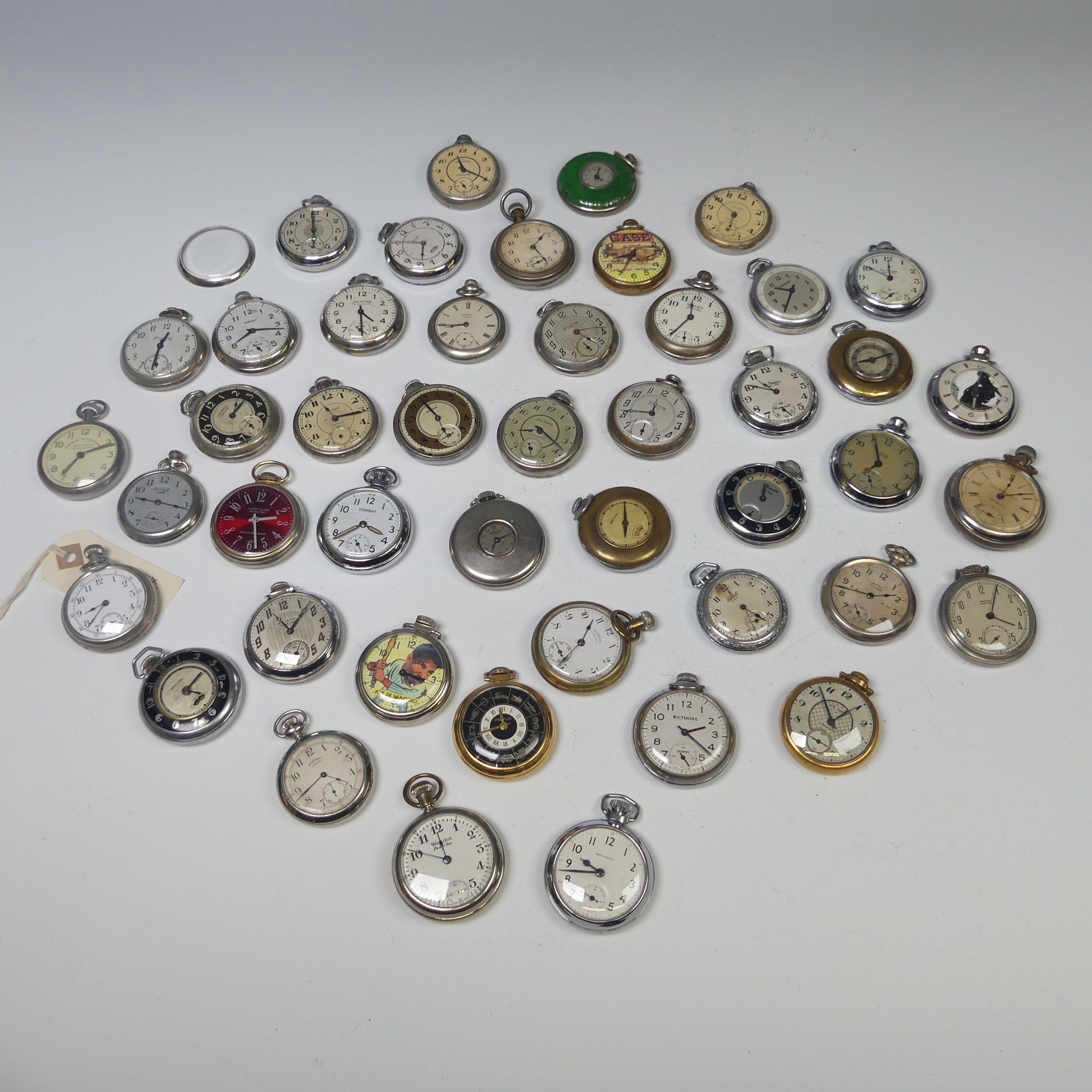 A large quantity of Mid-20thC Pocket Watches, mainly nickel and chrome cased, including Ingersoll, Westclox, New Haven, Ingraham etc., as found (a lot)