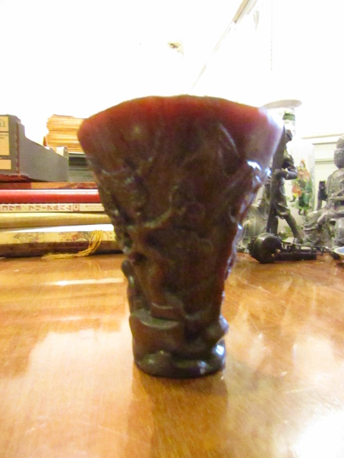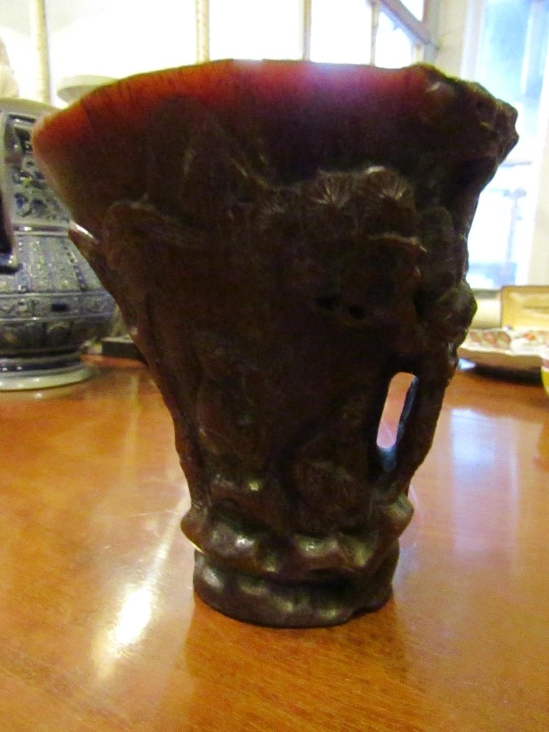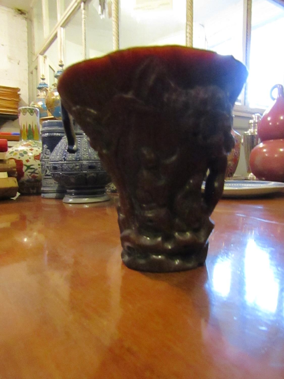 Carved Libation Cup Incised Detailing Approximately 5 Inches High