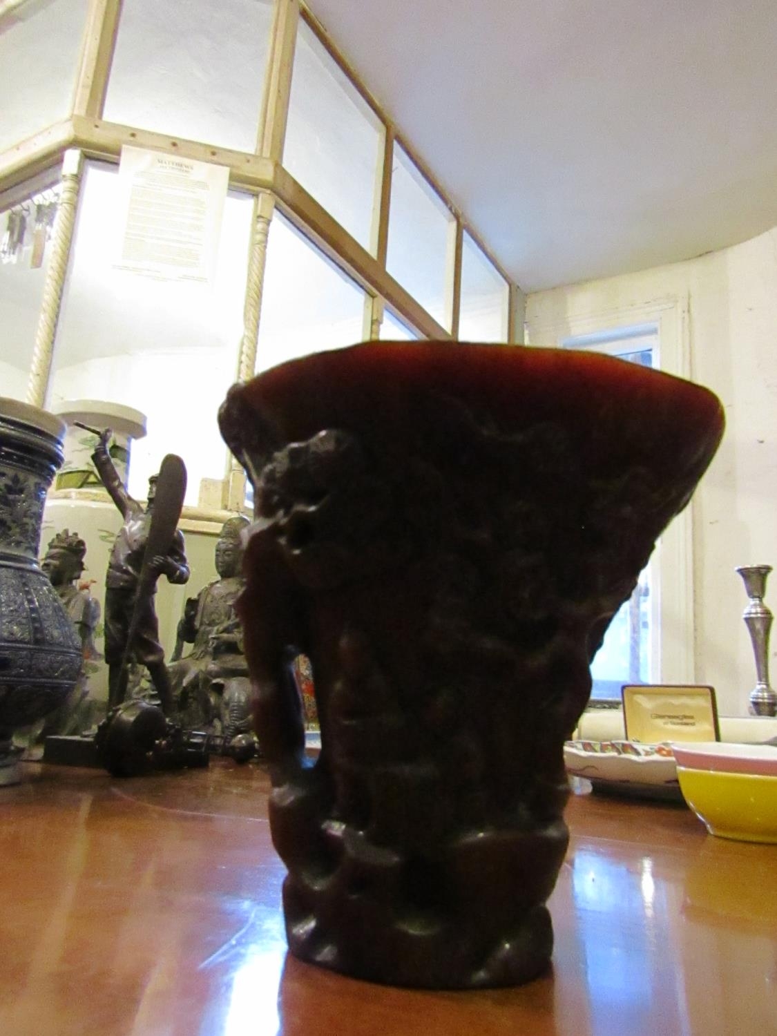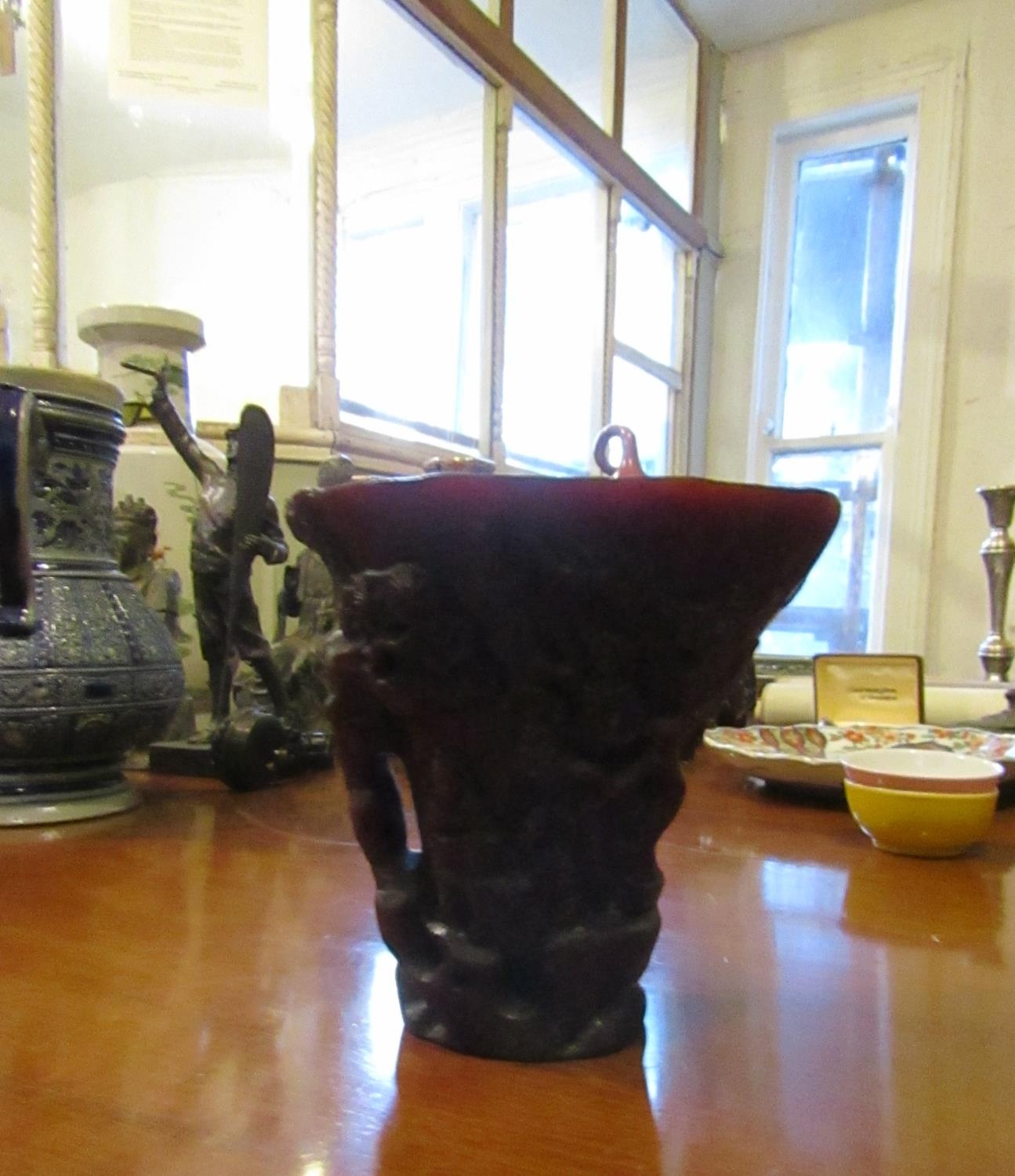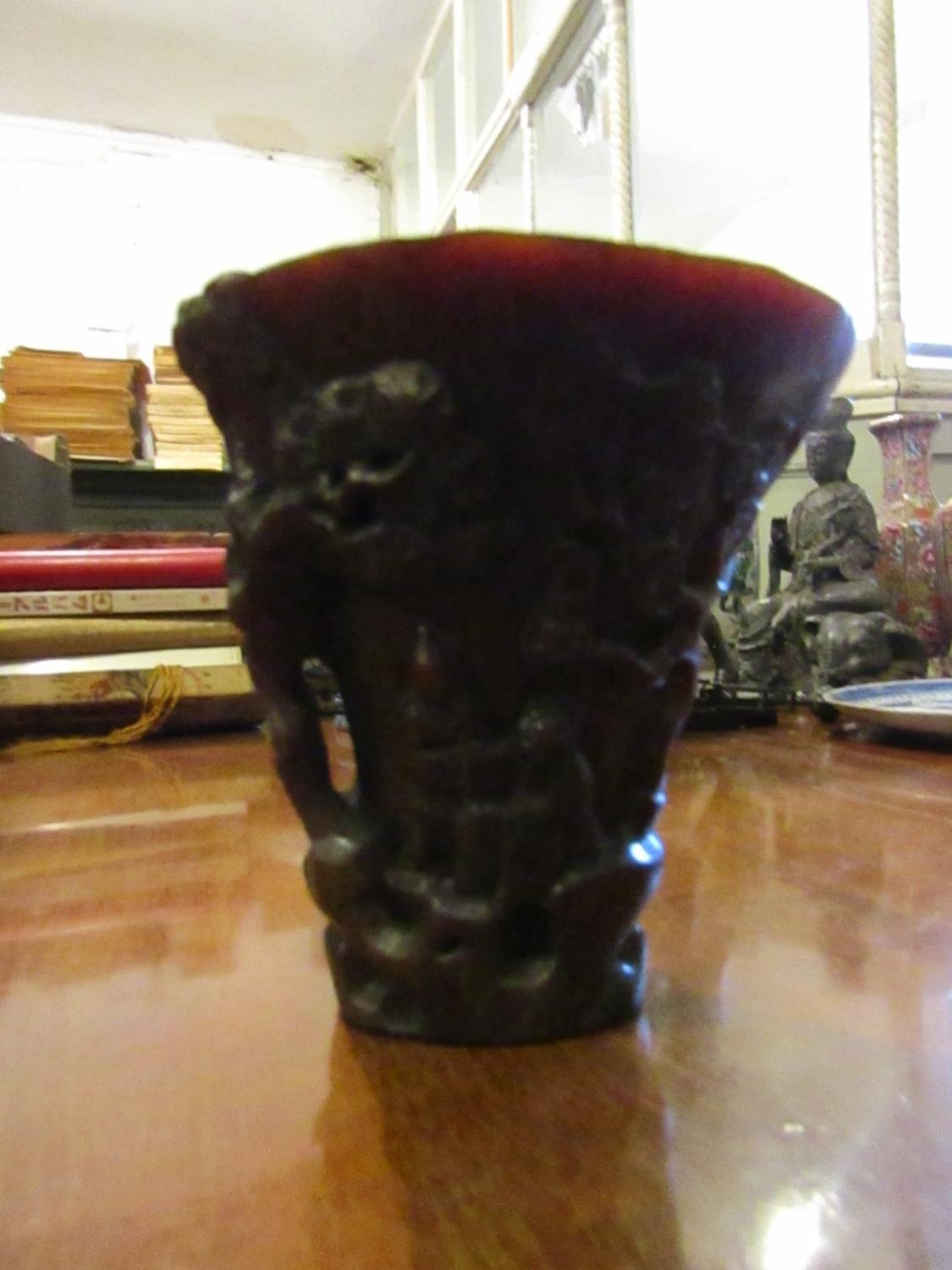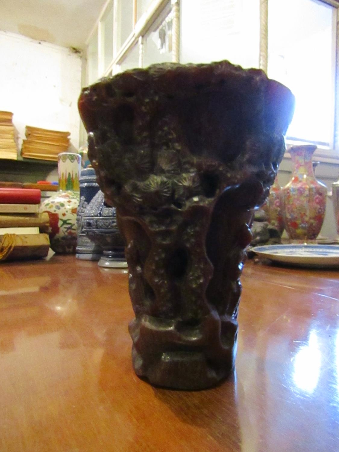 Carved Libation Cup Incised Detailing Approximately 5 Inches High