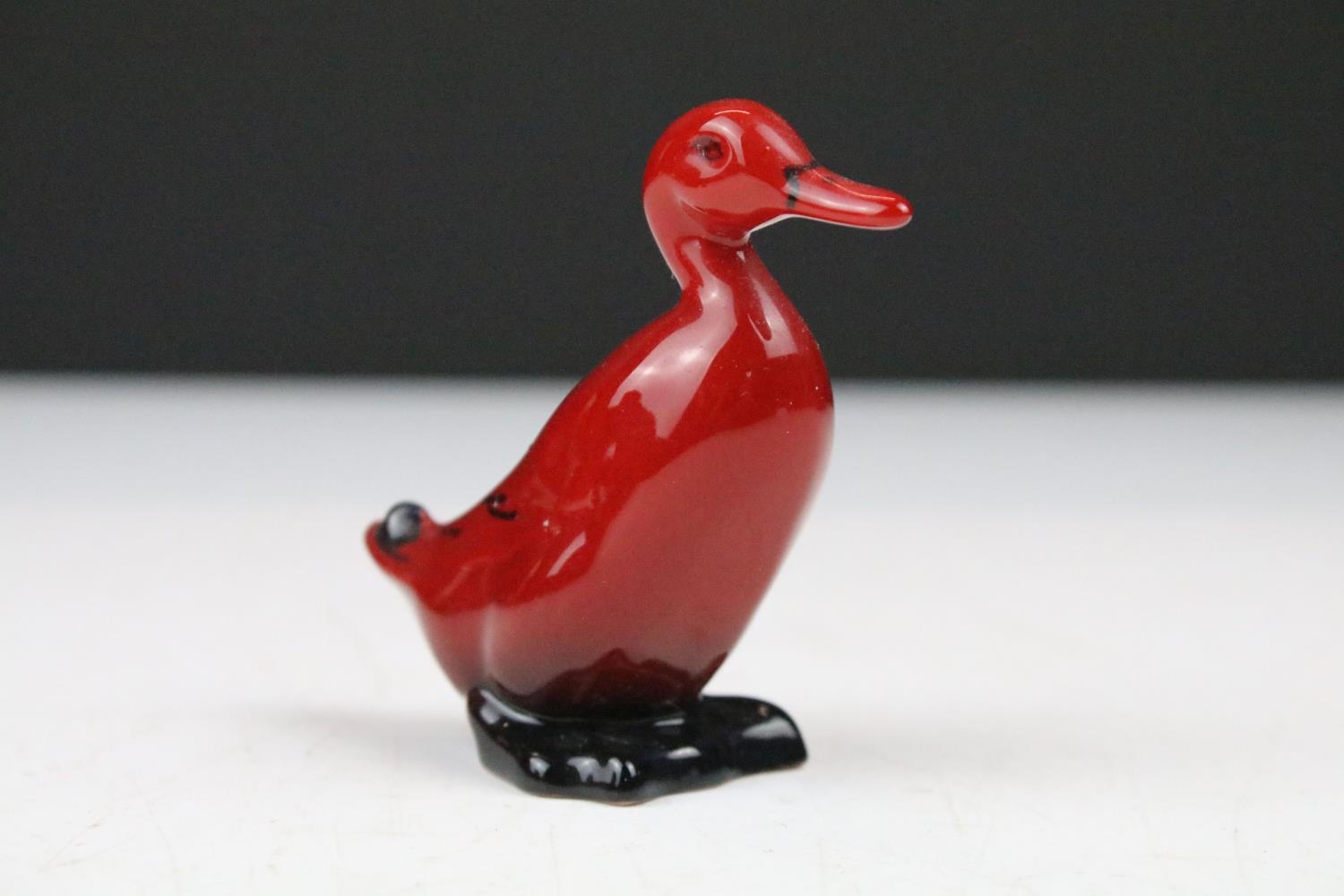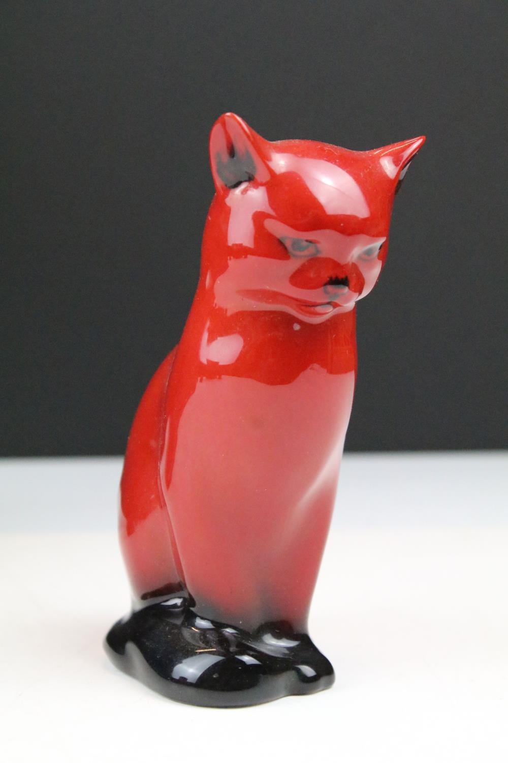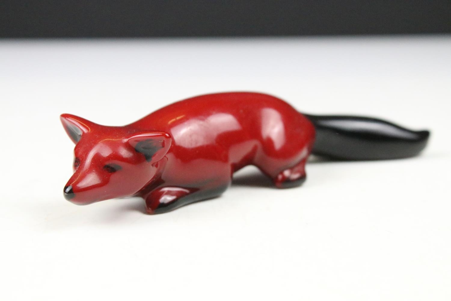Four boxed Royal Doulton flambé porcelain animals to include Fox (298), Rabbit (113), Duck (395) and Cat 9 (01640 - approx 12.5cm tall)