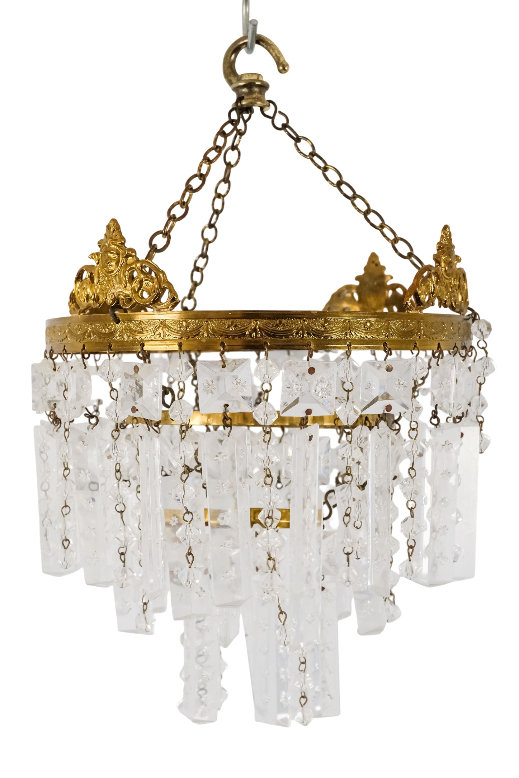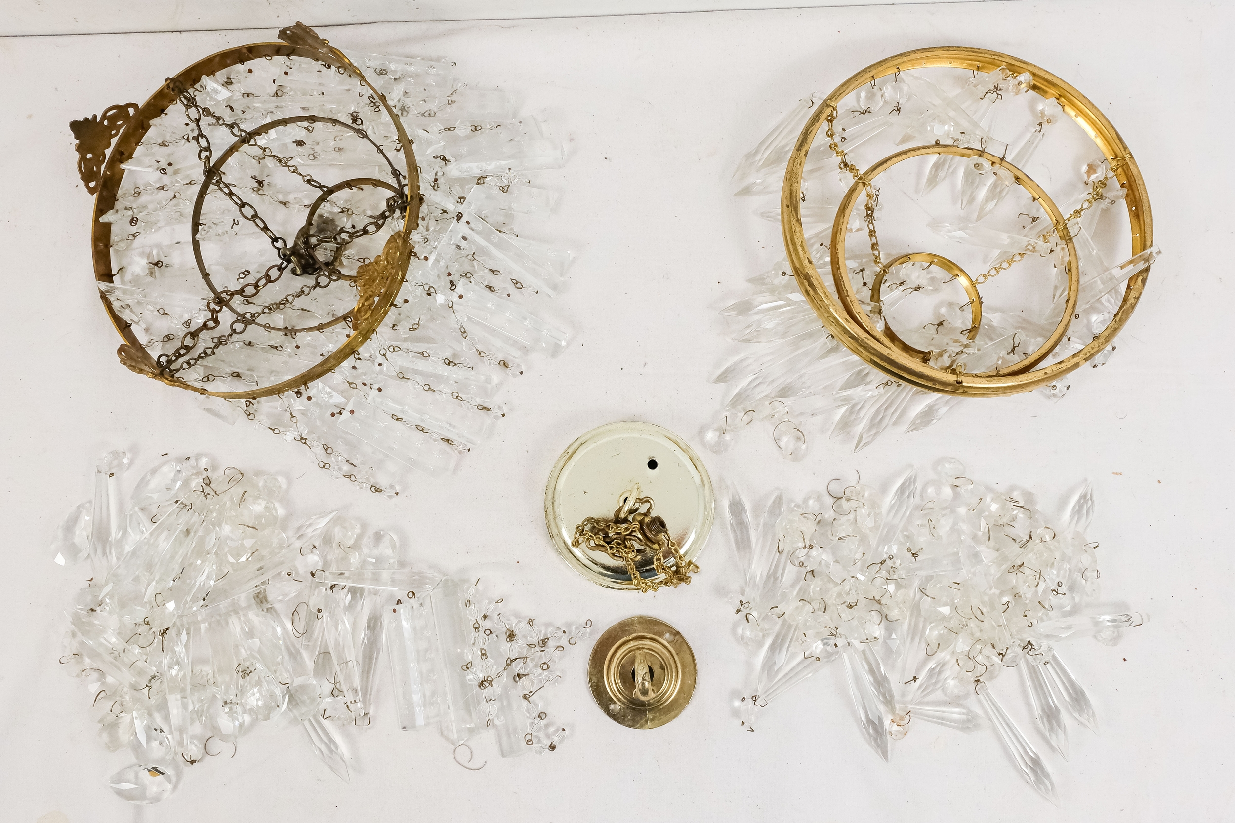 A crystal chandelier, diameter 21cm - together with another crystal chandelier of similar proportions.