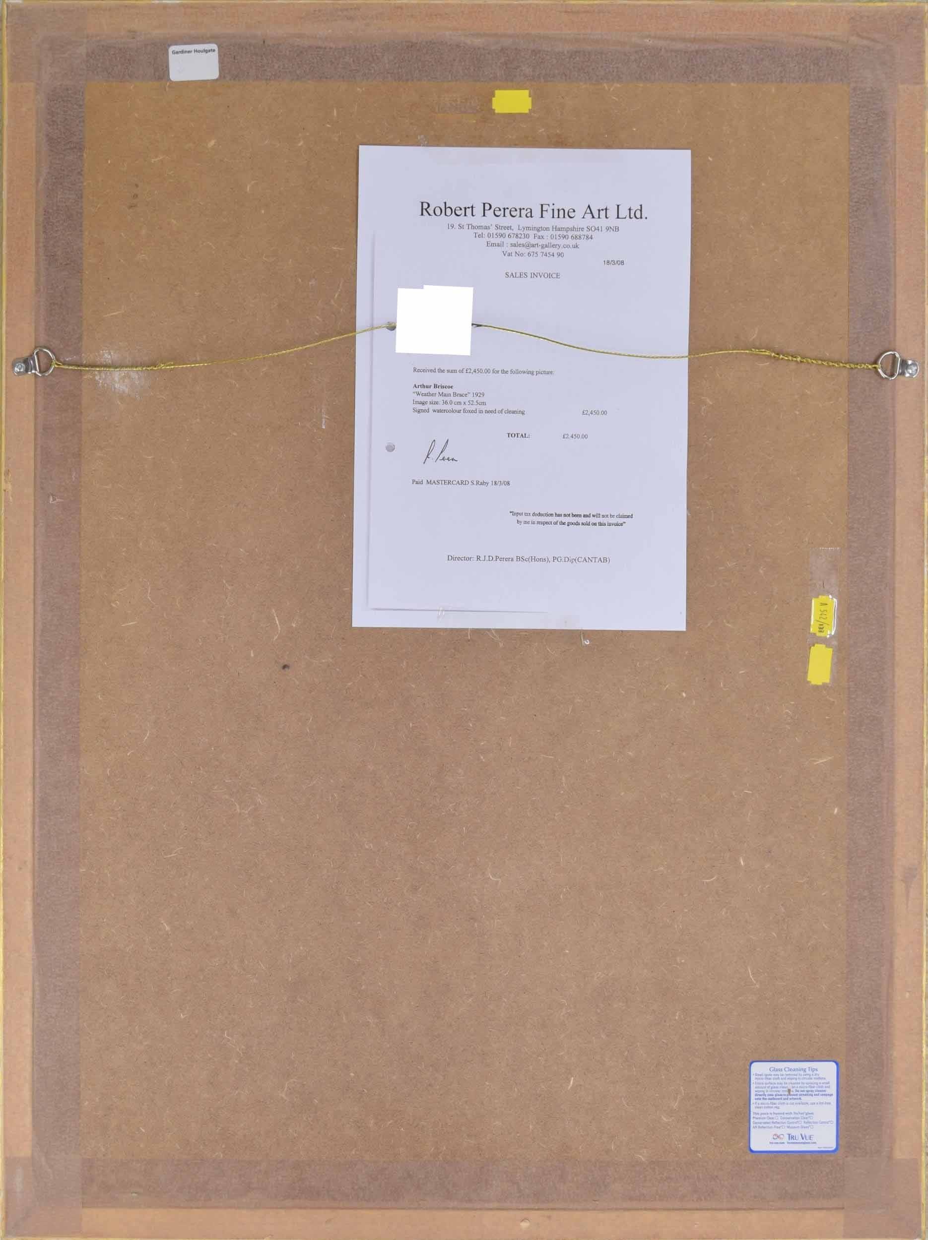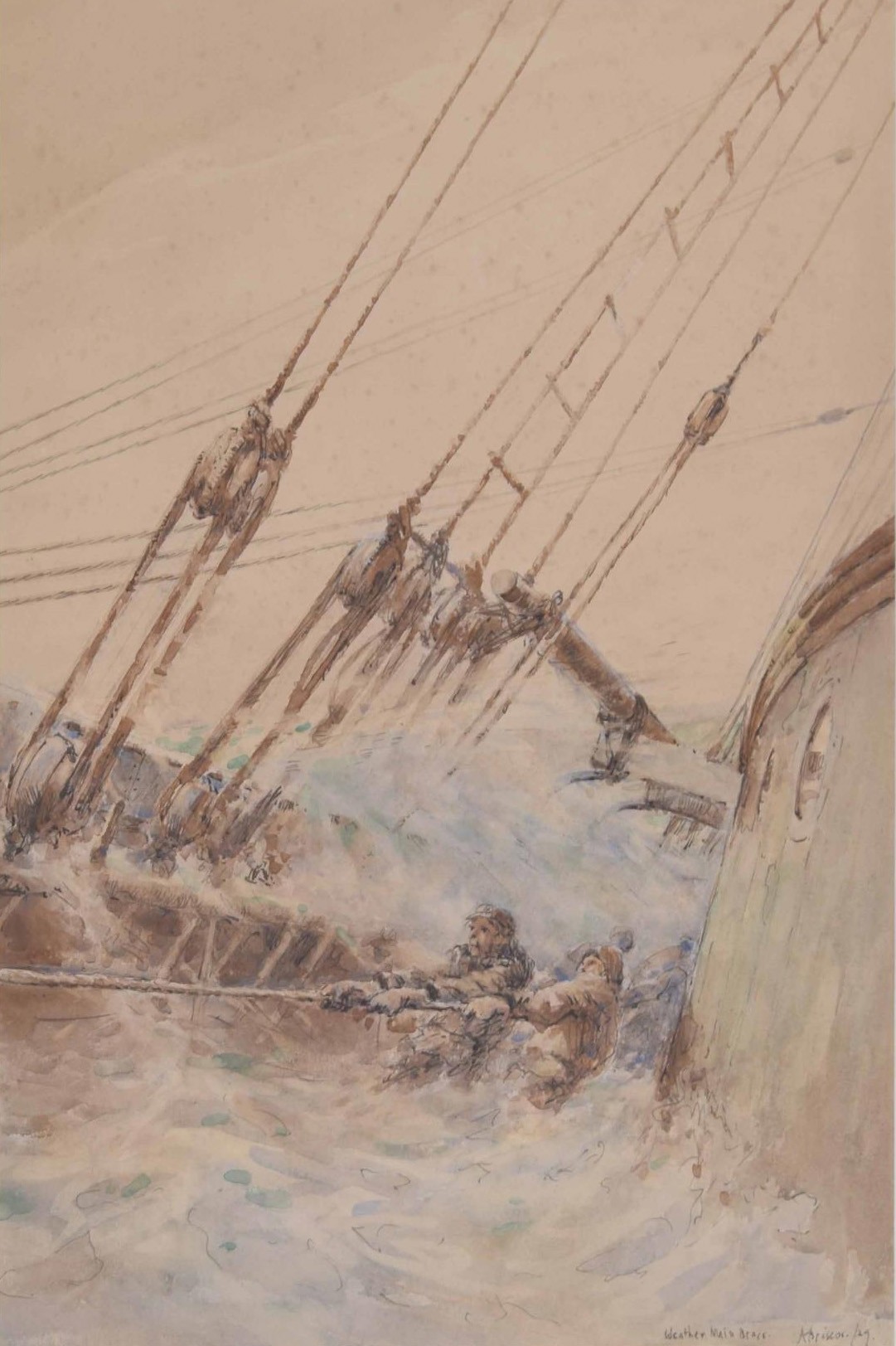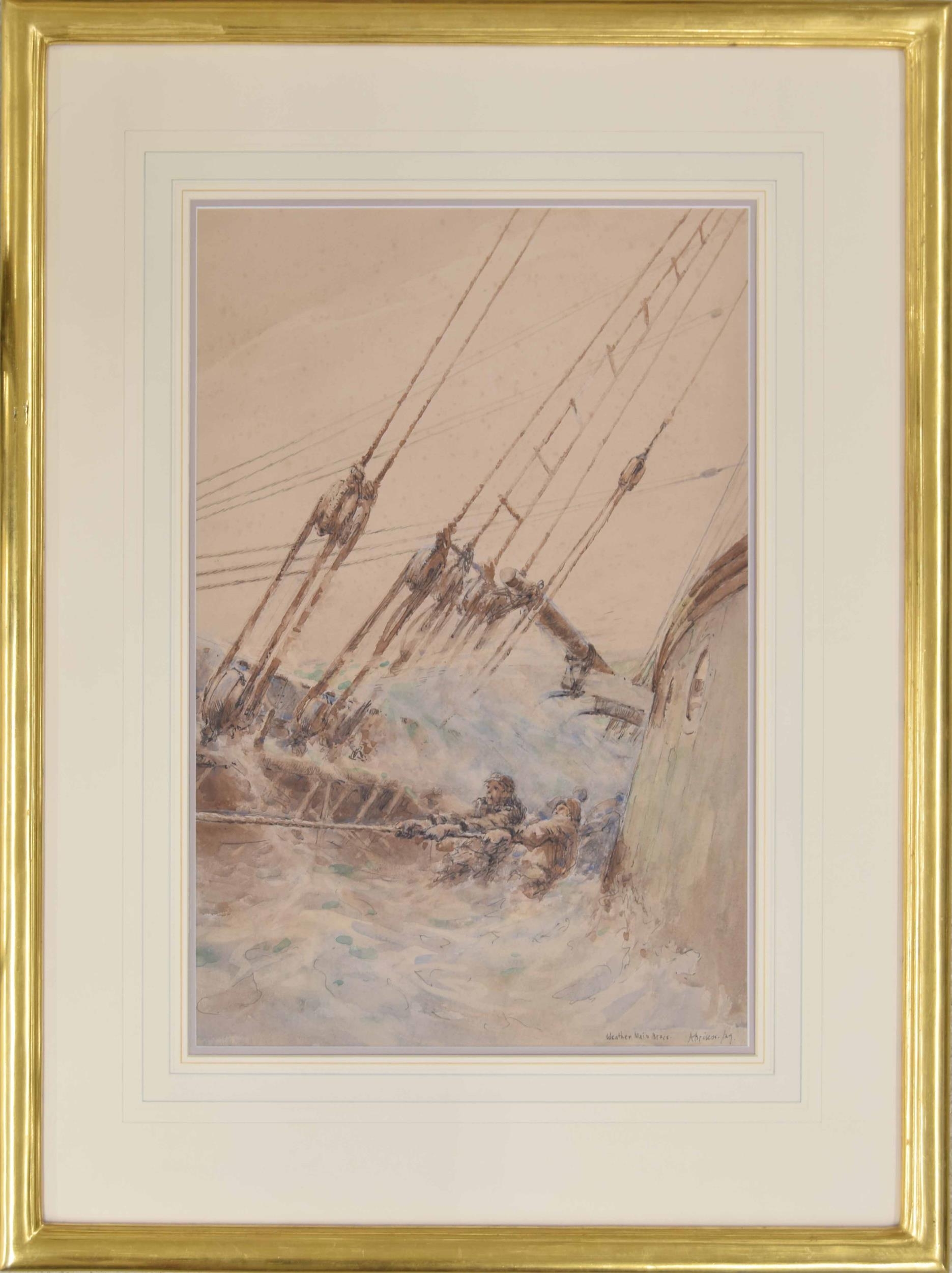 Arthur John Trevor Briscoe RE RI (1873-1943) - "Weather Main Brace" signed, inscribed with the title and dated 29 (1929) pencil and watercolour, 20" x 13.25"