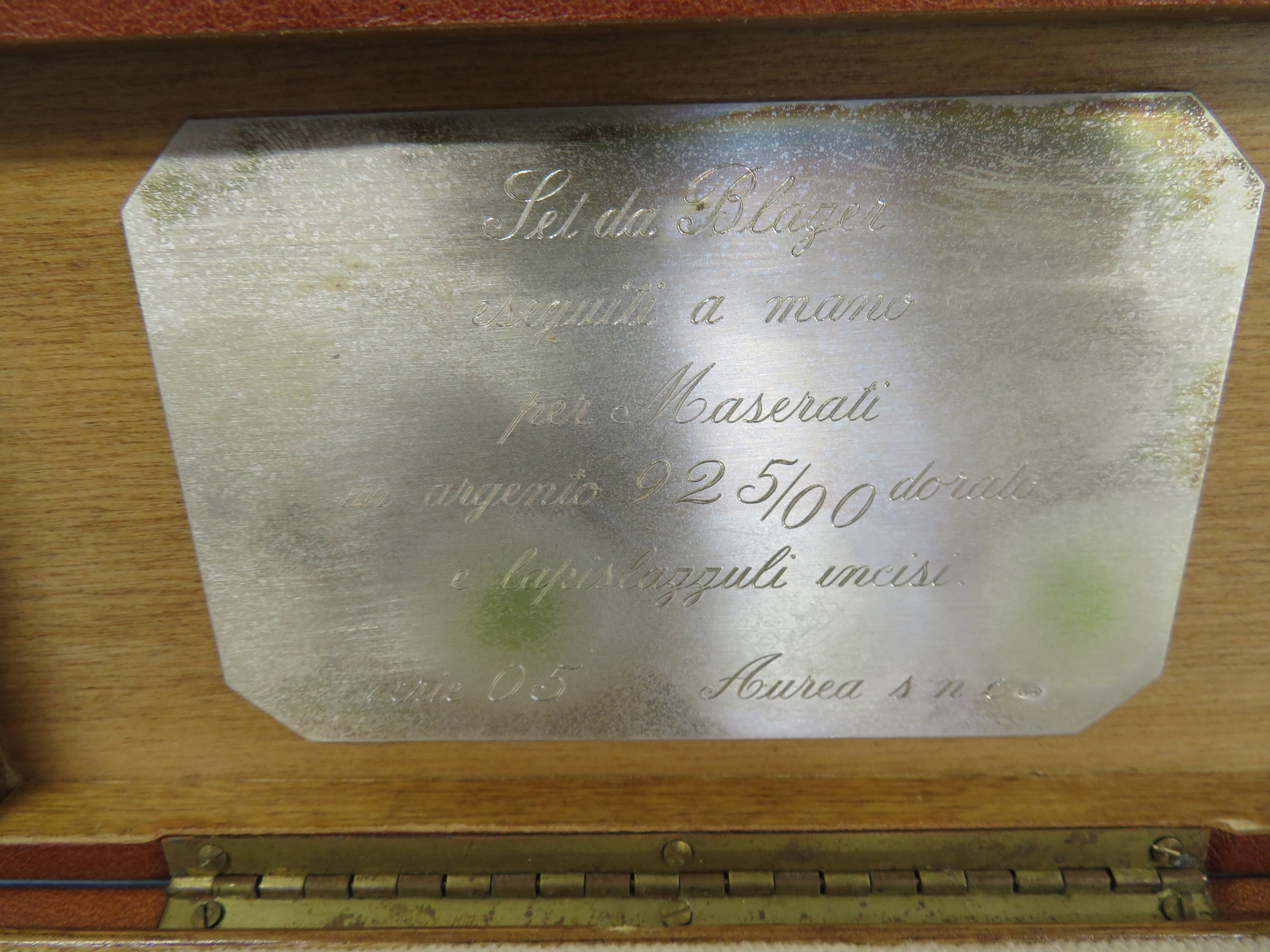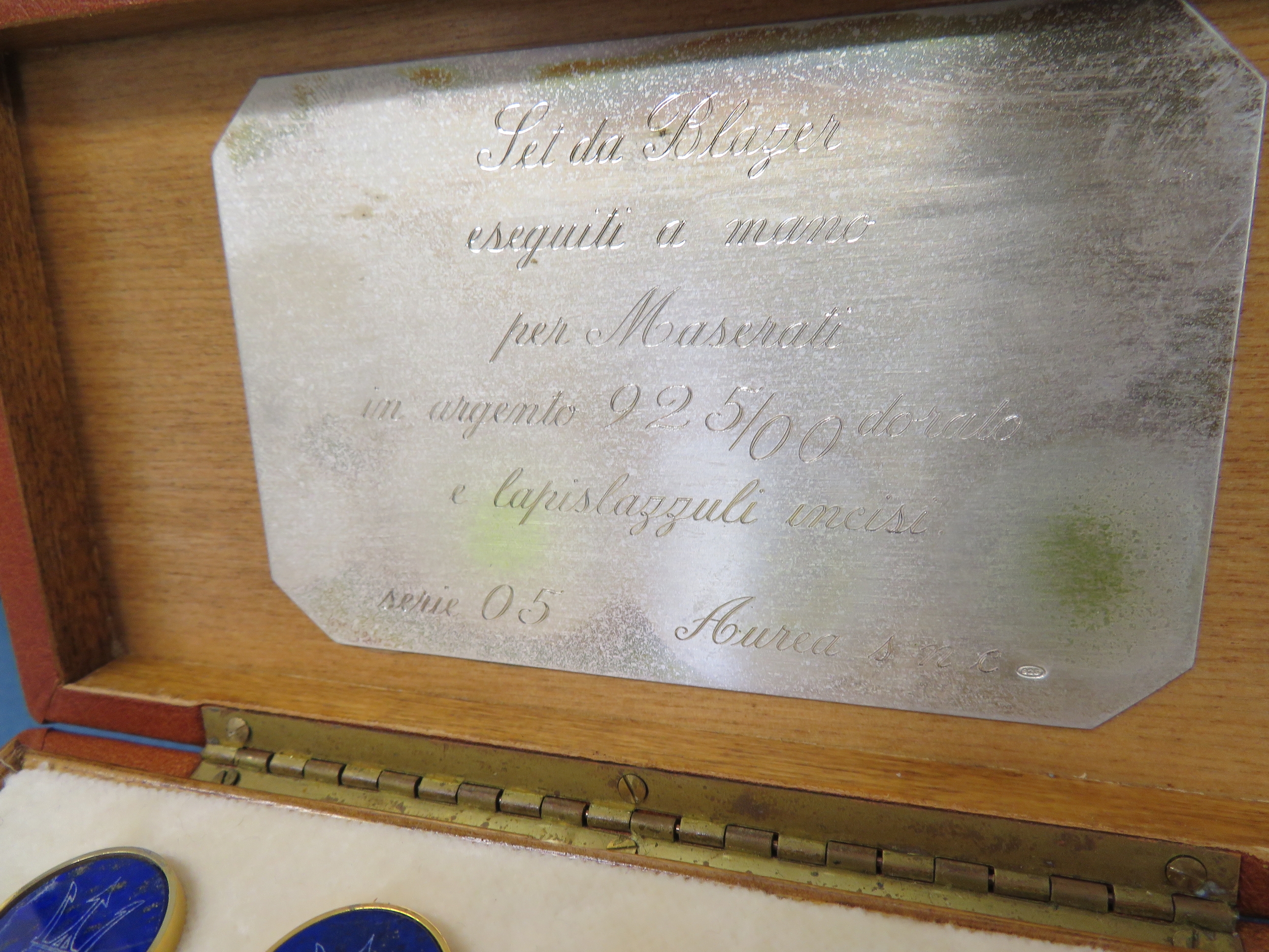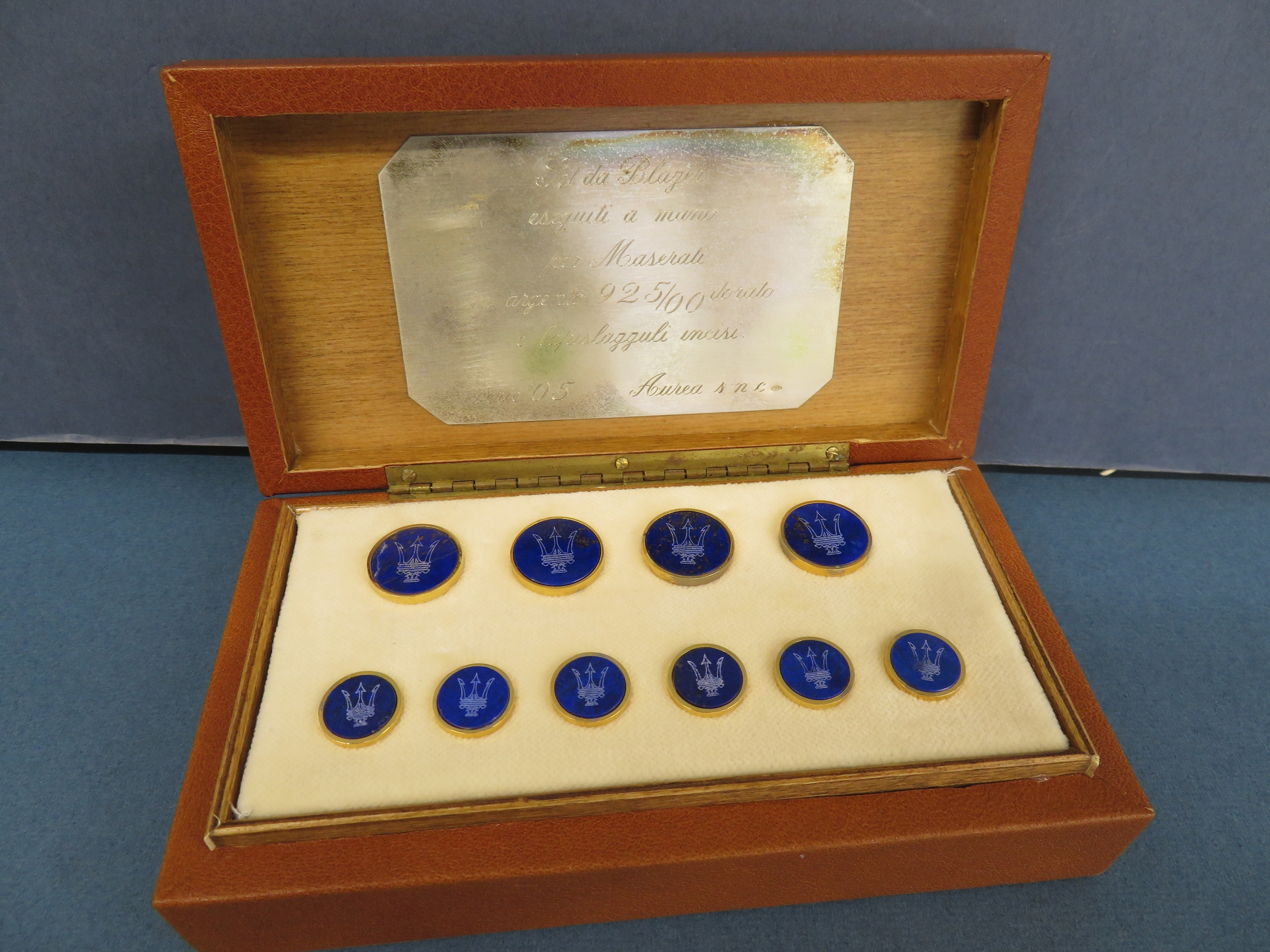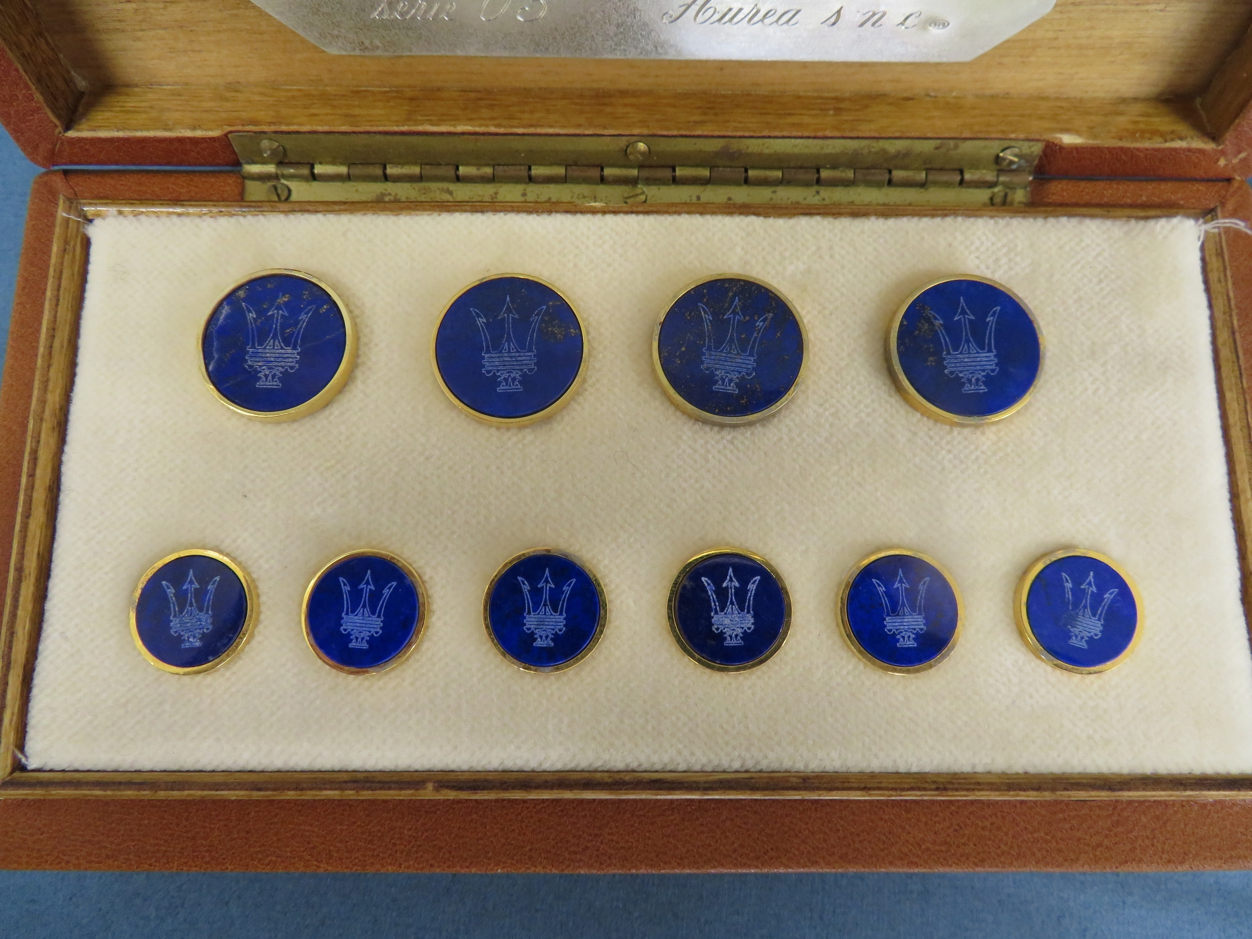 An extremely limited edition of Maserati blazer buttons - silver gilt, Lapis lazuli faces with the Maserati logo engraved.