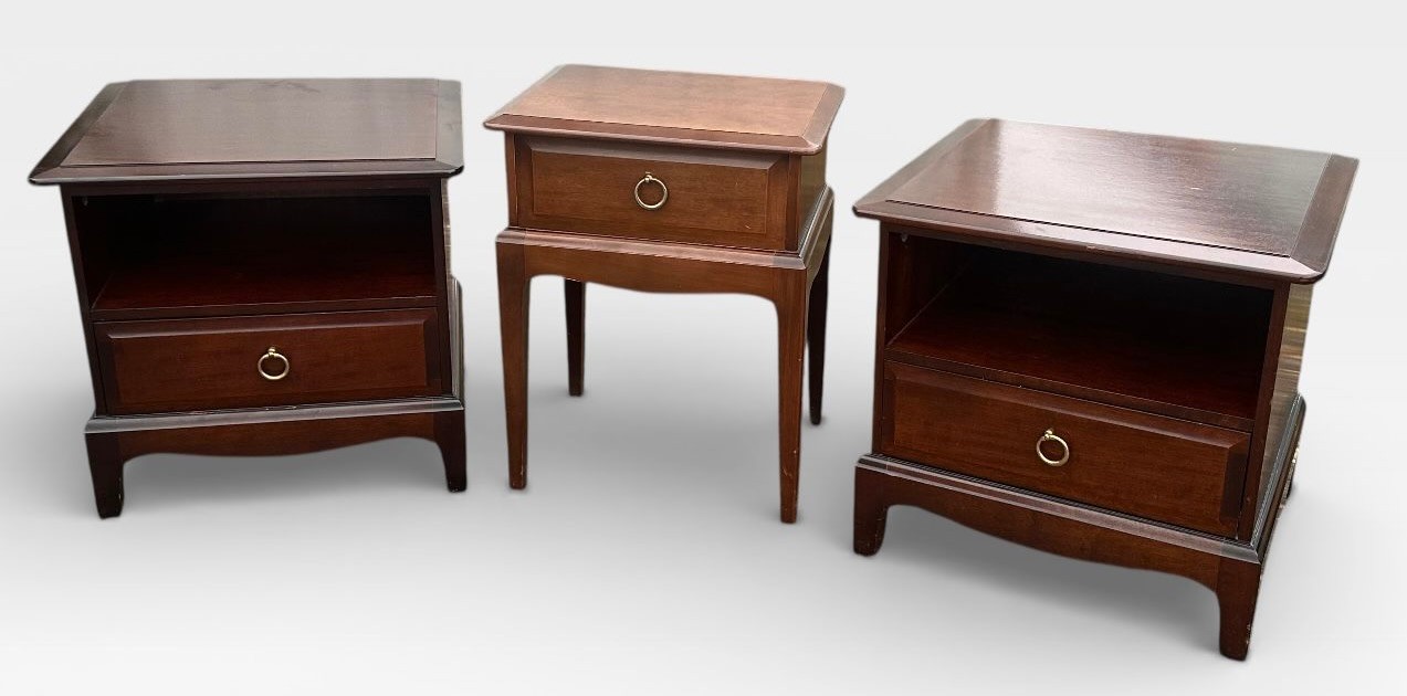 Pair of Stag bedside cabinets together with another similar bedside cabinet