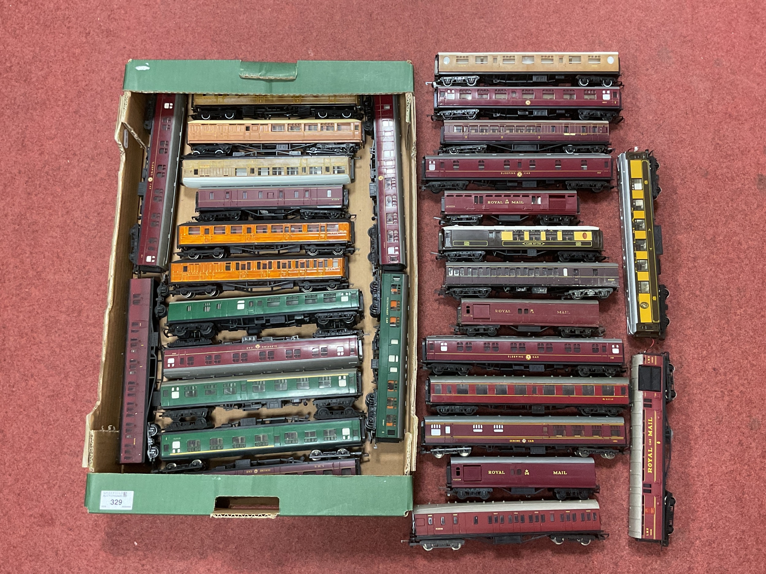 Approximately Twenty-Nine 'OO' Gauge Steam Era Coaches, by Hornby, Triang, Dapol and others, including sleeping cars and mail vans, playworn.