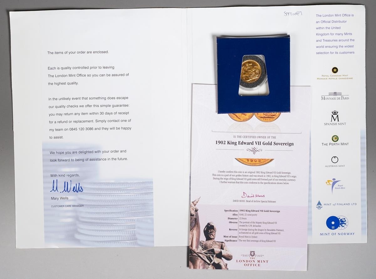 An Edward VII 1902 Sydney mint gold full sovereign, comes with The London Mint Office documentation (1)