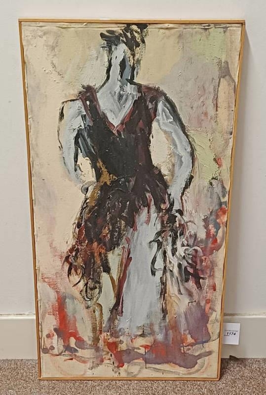 FRAMED OIL ON CANVAS OF AN ABSTRACT FIGURE, UNSIGNED, 91 X 46 CM