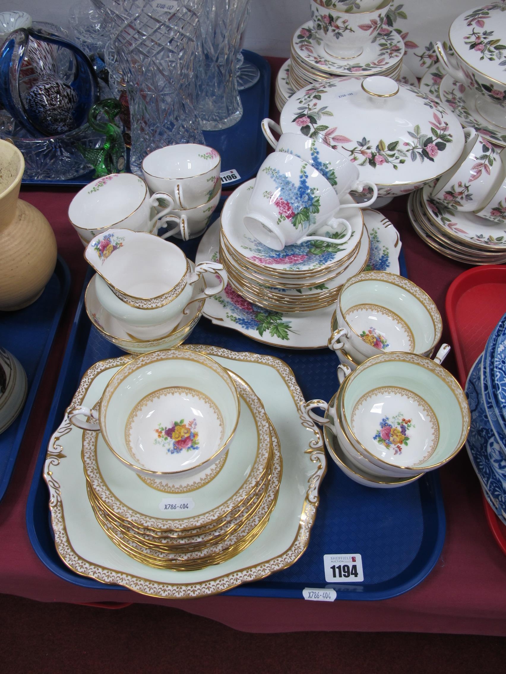 A Paragon Twenty One Piece Tea Set, comprising of bread and butter plate, side plates, two tea cups, saucers, milk jug and sugar bowl, along with another by Aynsley:- One Tray