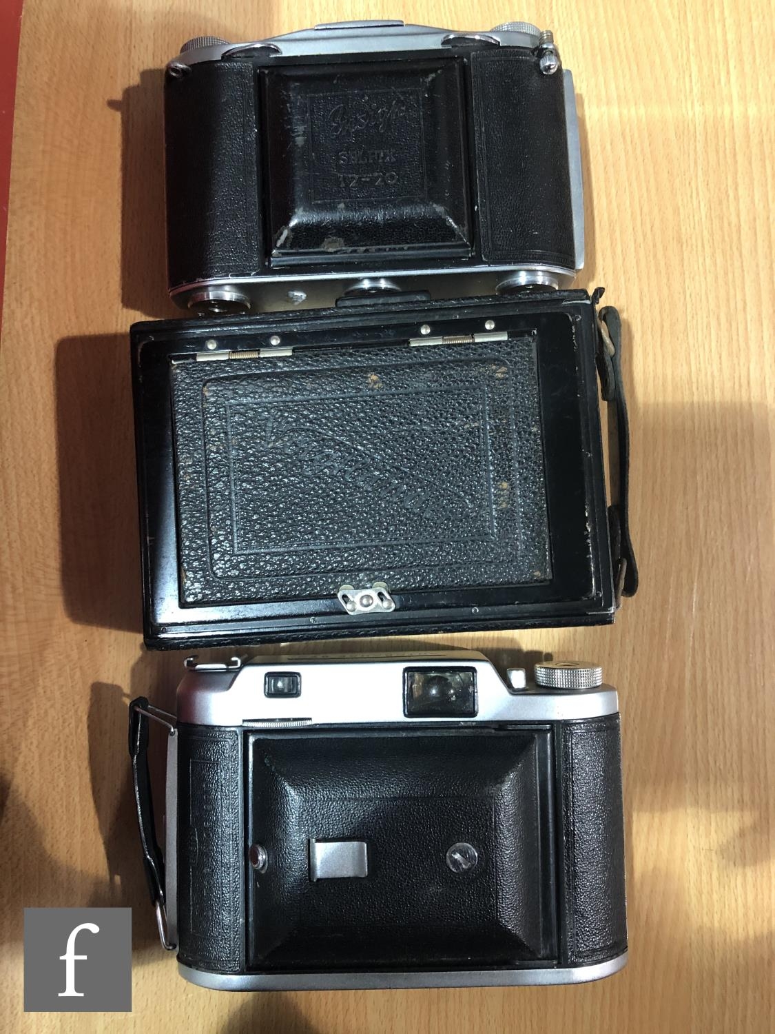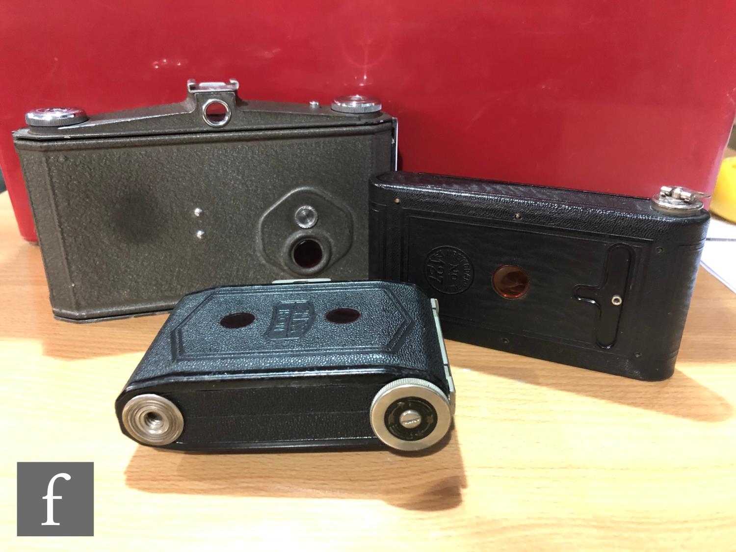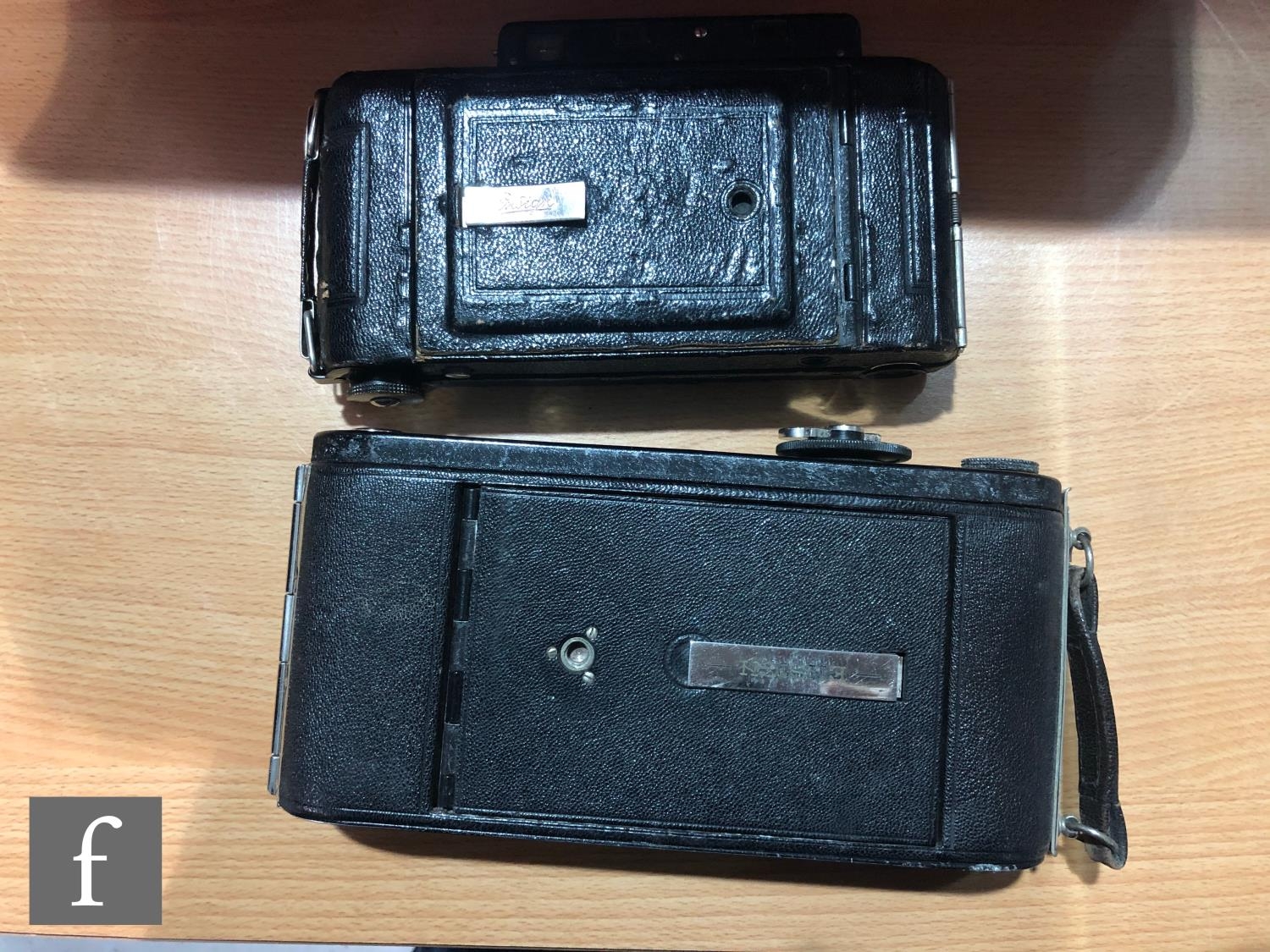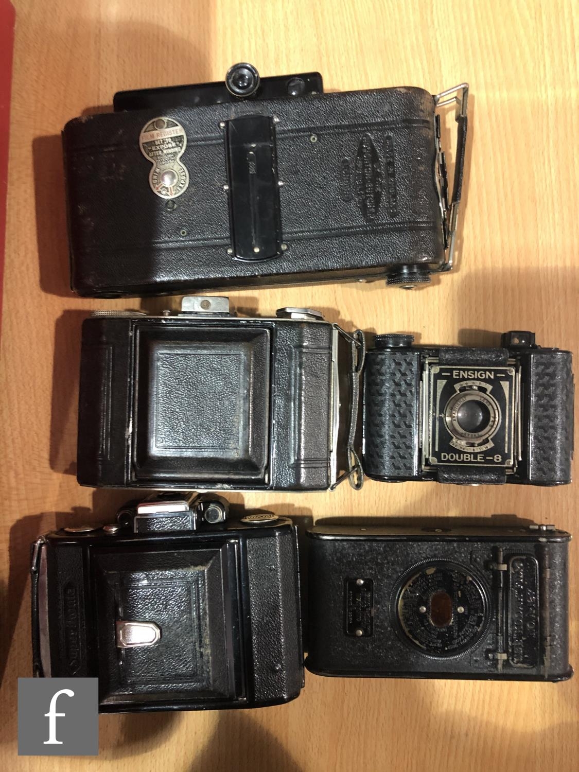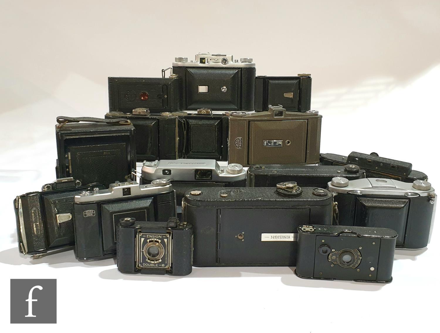 A collection of vintage folding cameras, to include examples by Zeiss Ikon, Ensign, Kodak etc. (14)