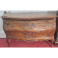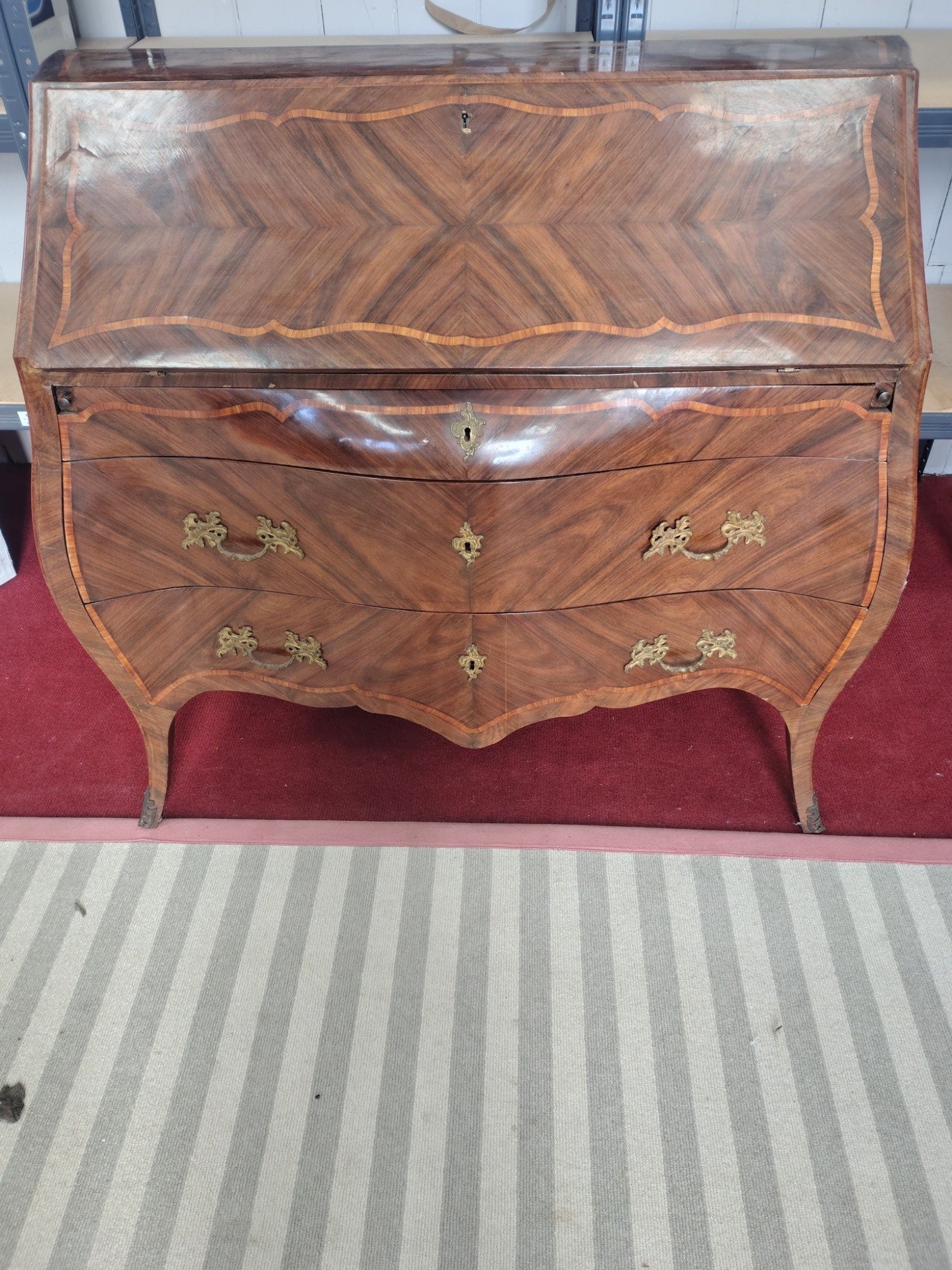 A stylish three drawer bow front bureau / writing desk. Came from a substantial property in Italy. 110cm x 50cm x 110cm approx