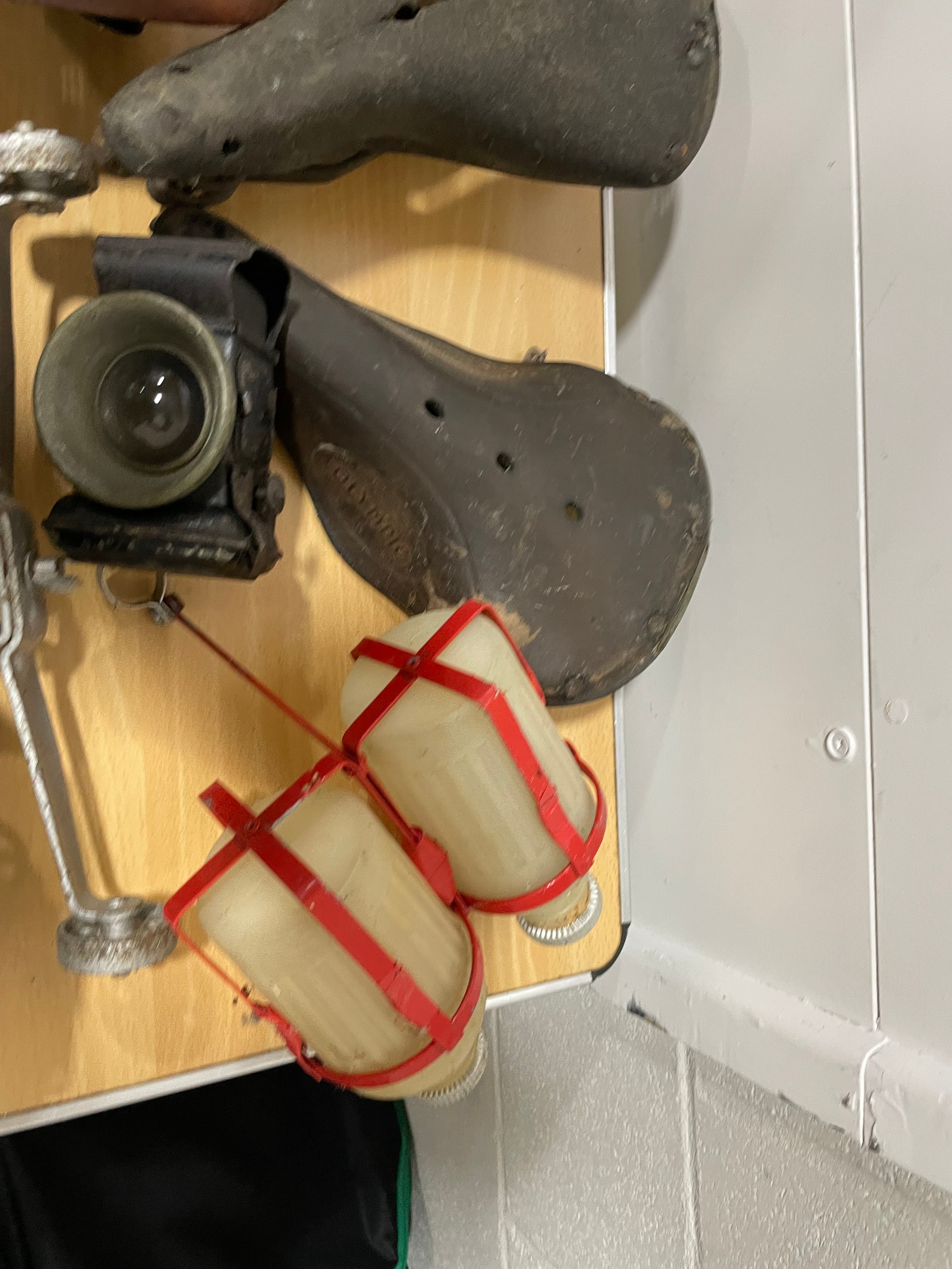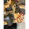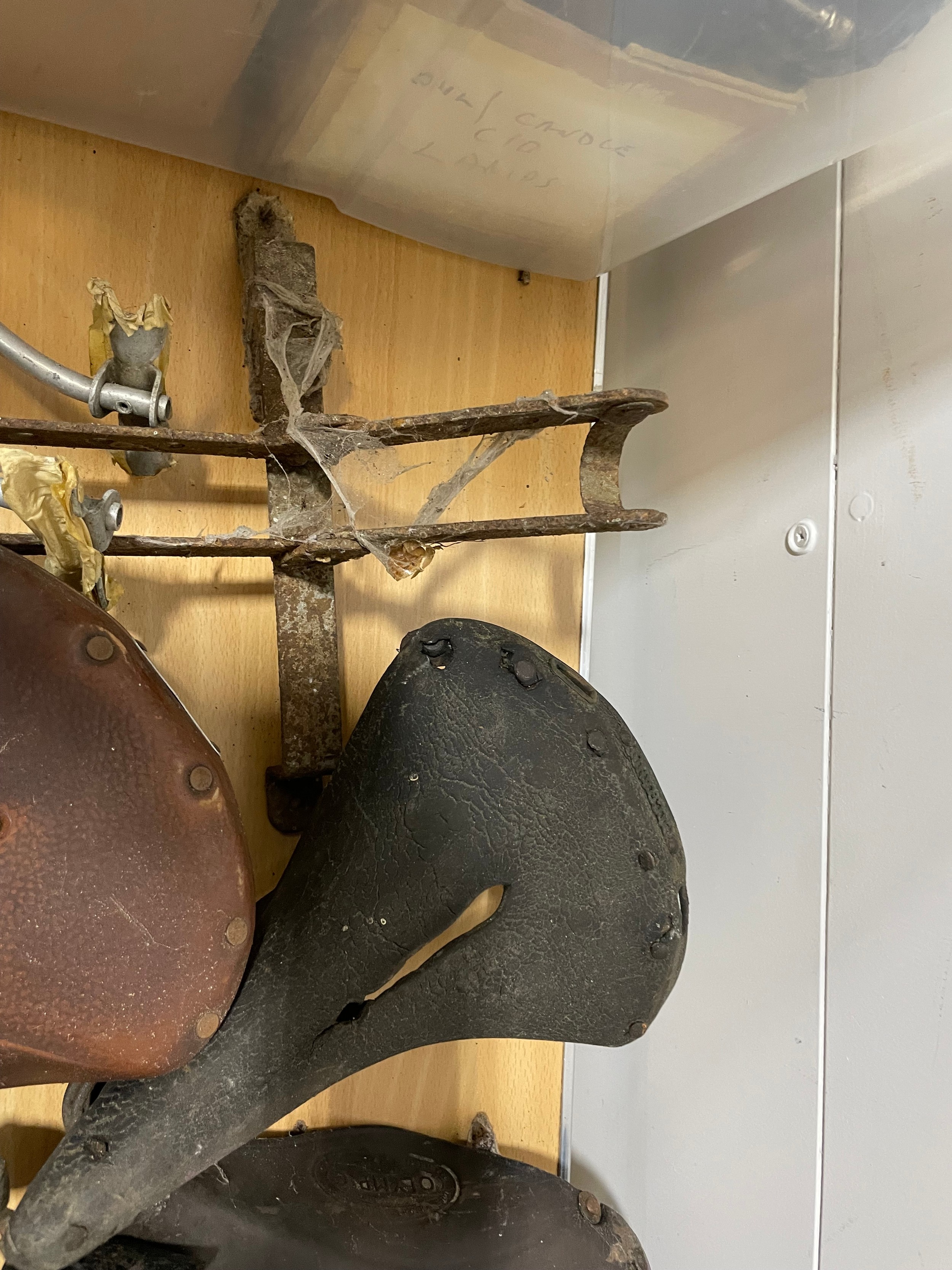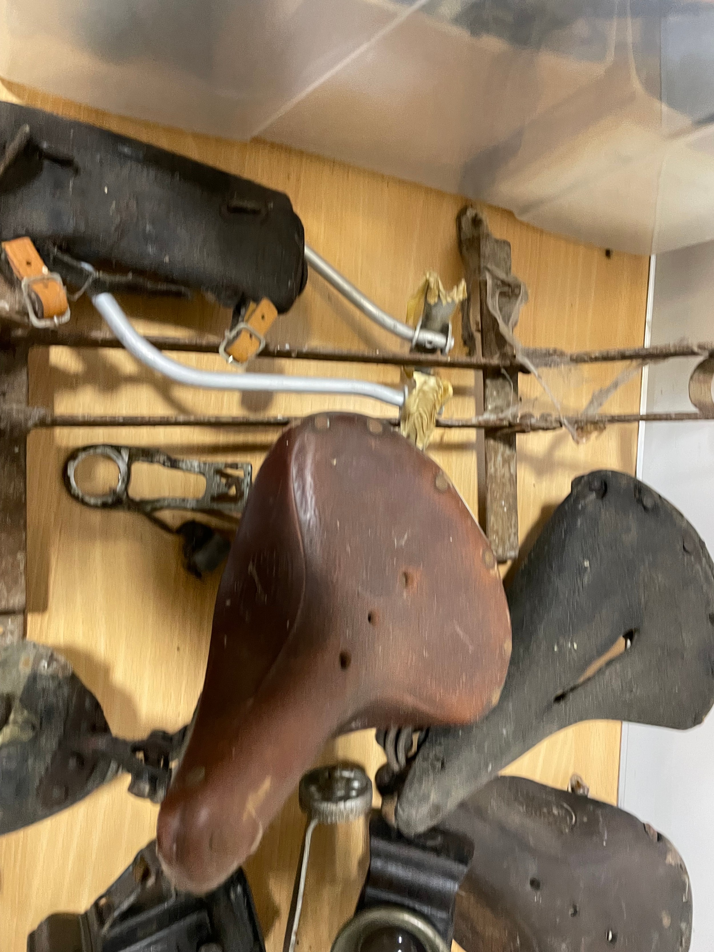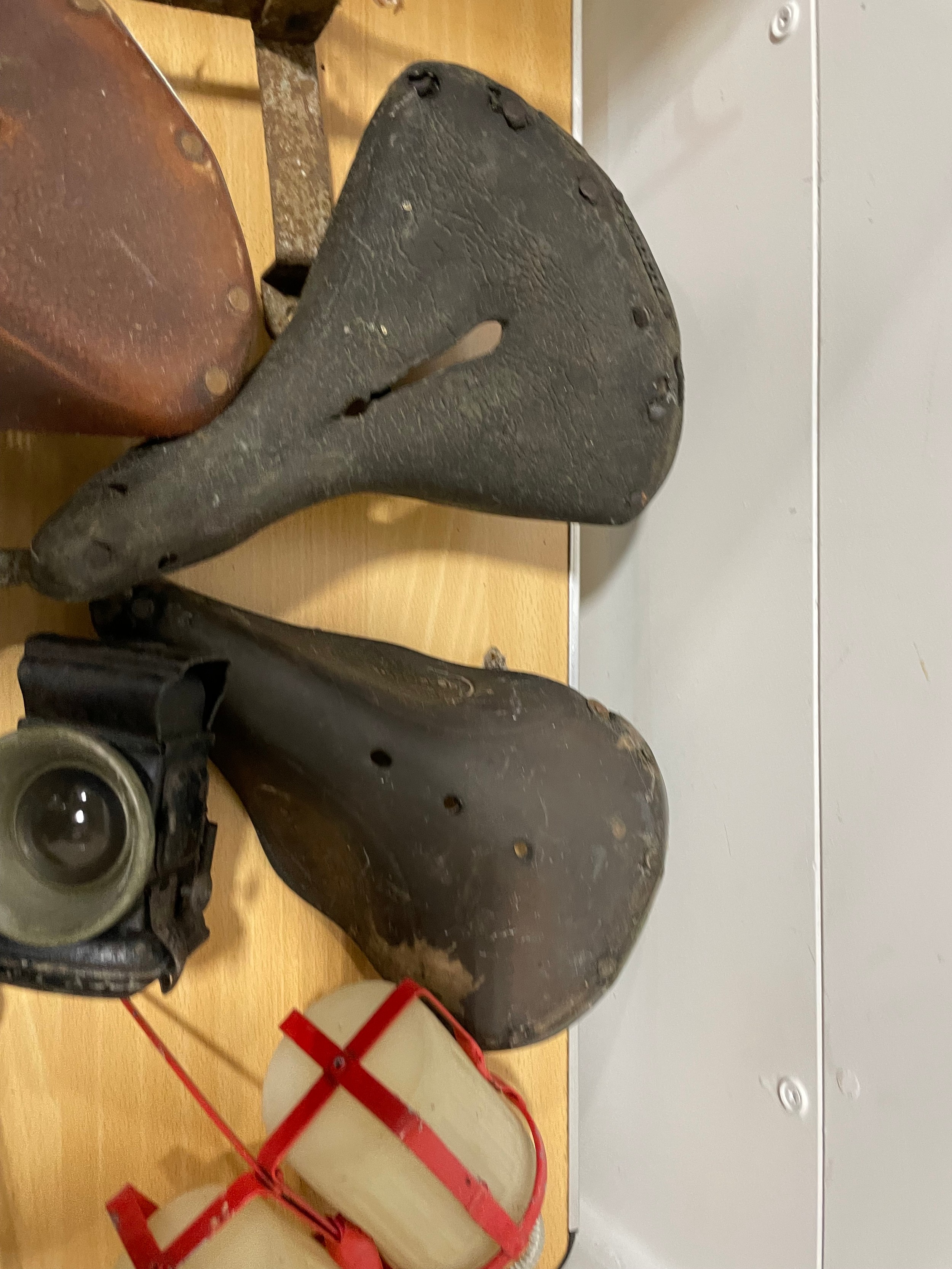 Box of Sundry Bicycle Parts, Saddles, Lamps, Etc