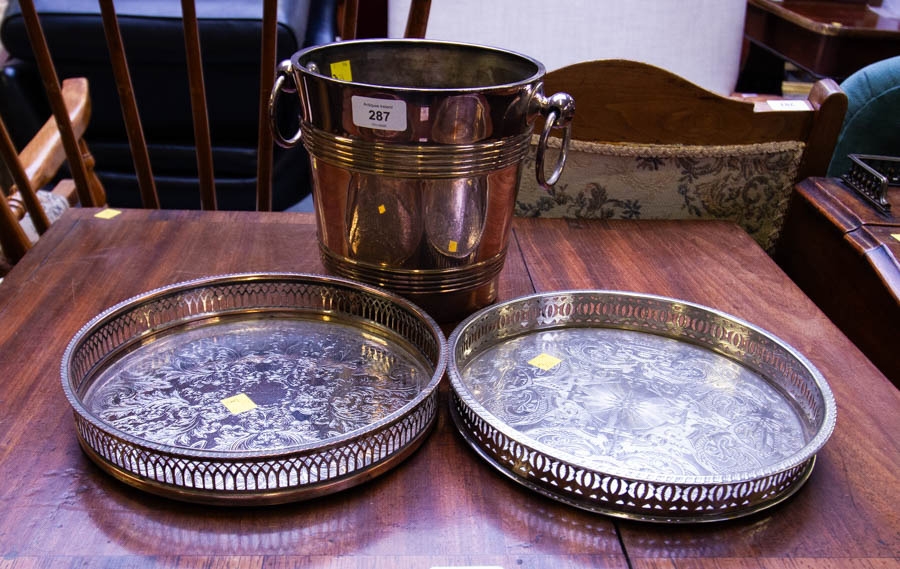 SILVER PLATED ICE BUCKET + 2 ROUND TRAYS