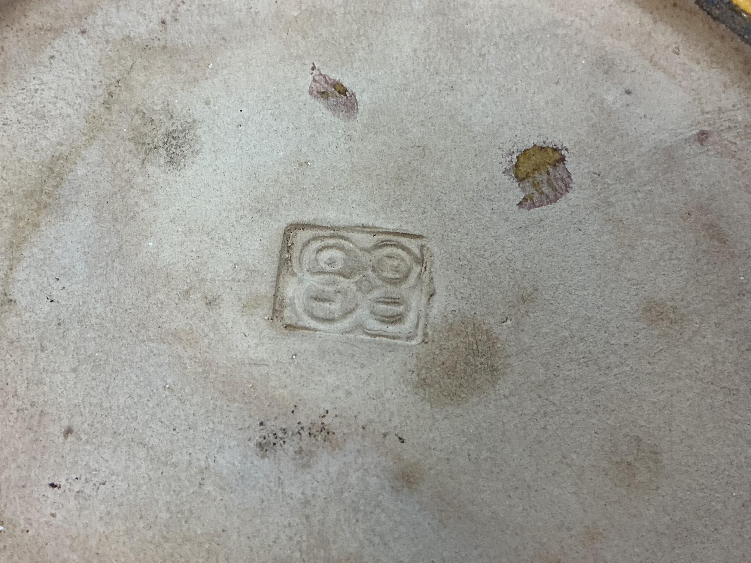 A Biot ochre glazed terracotta dinner service to include soup bowls, dinner plates and a centre bowl