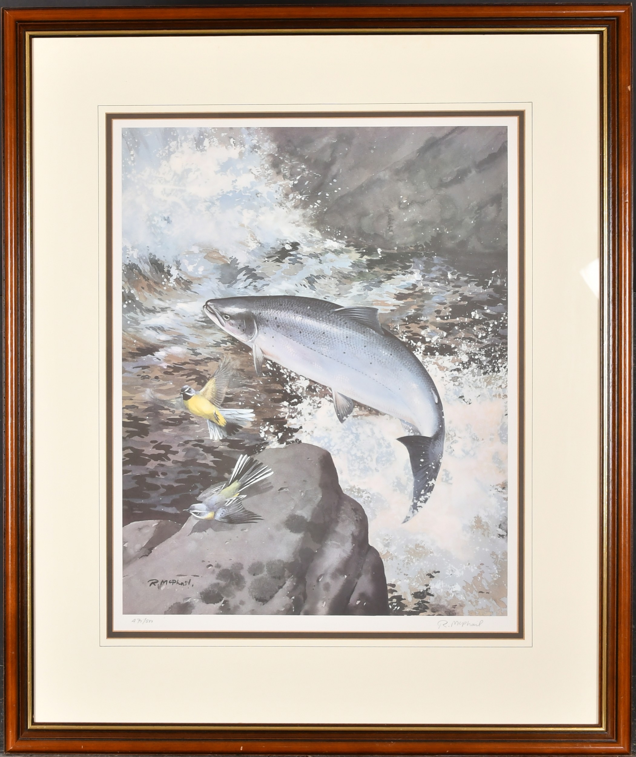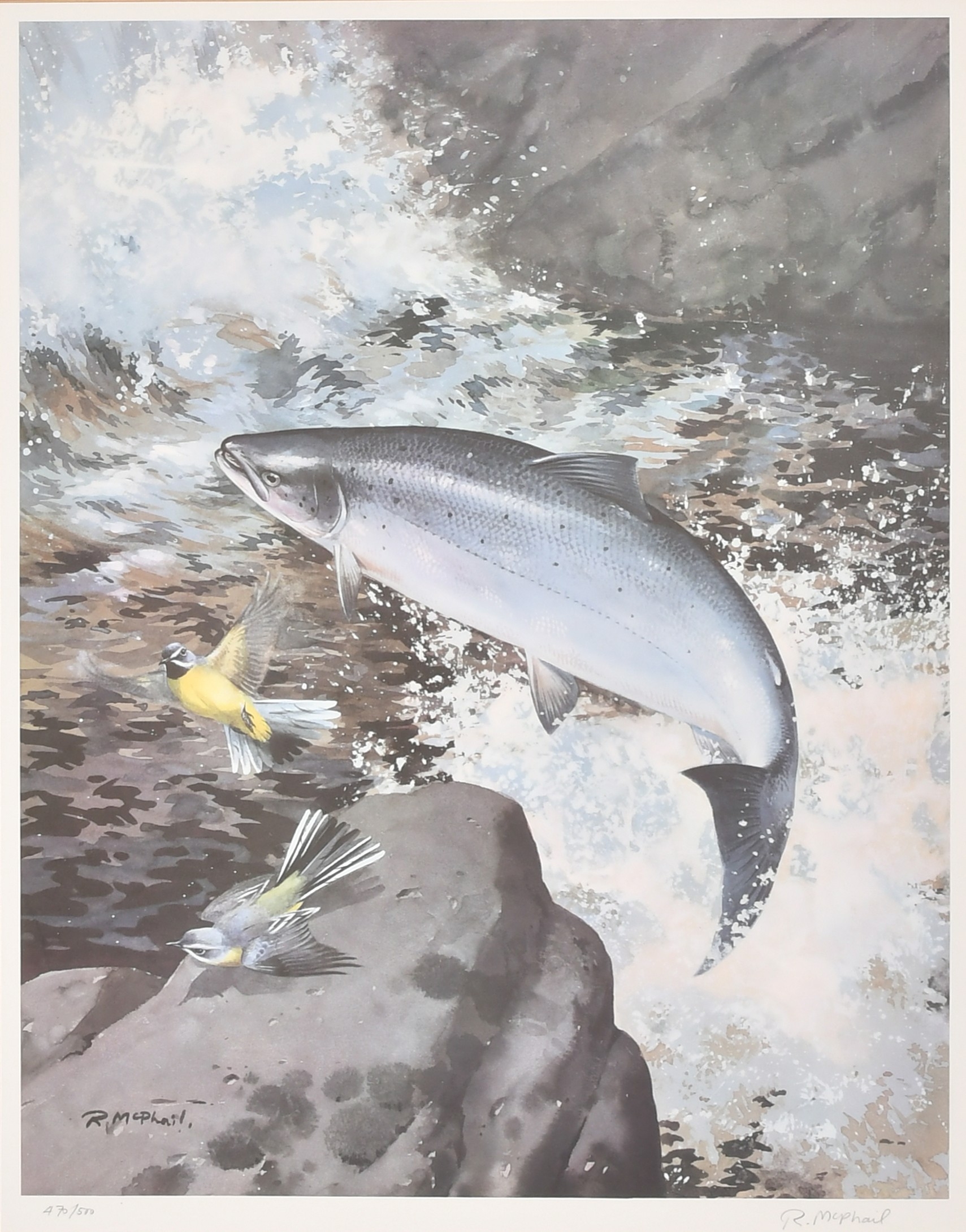 Rodger McPhail (1953- ) British. Leaping Salmon, Lithograph, Signed and numbered 470/500 in pencil, 20" x 15.75" (50.8 x 40cm)