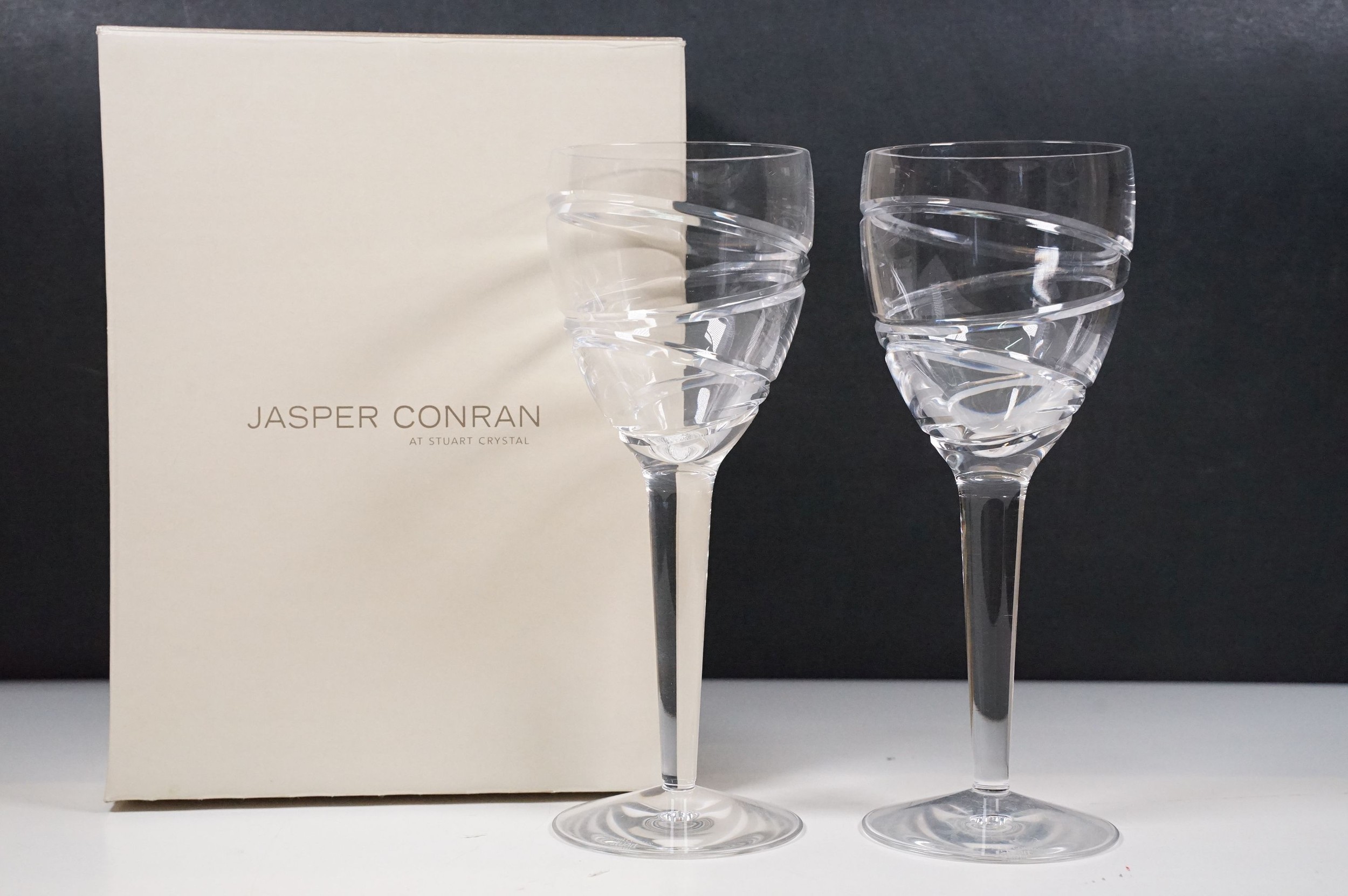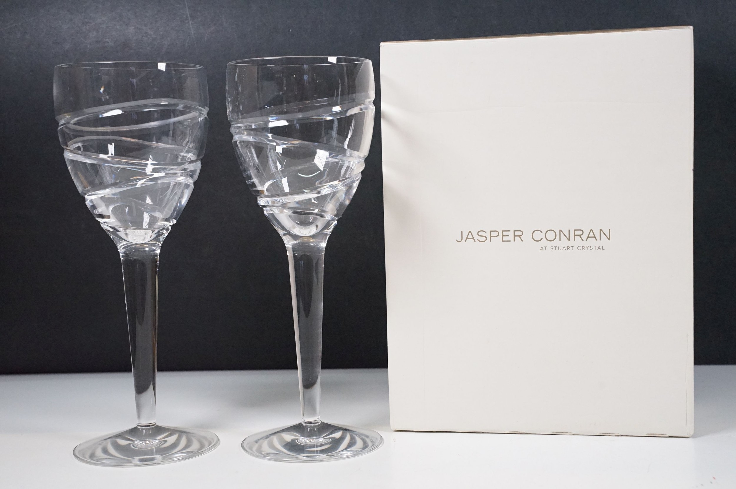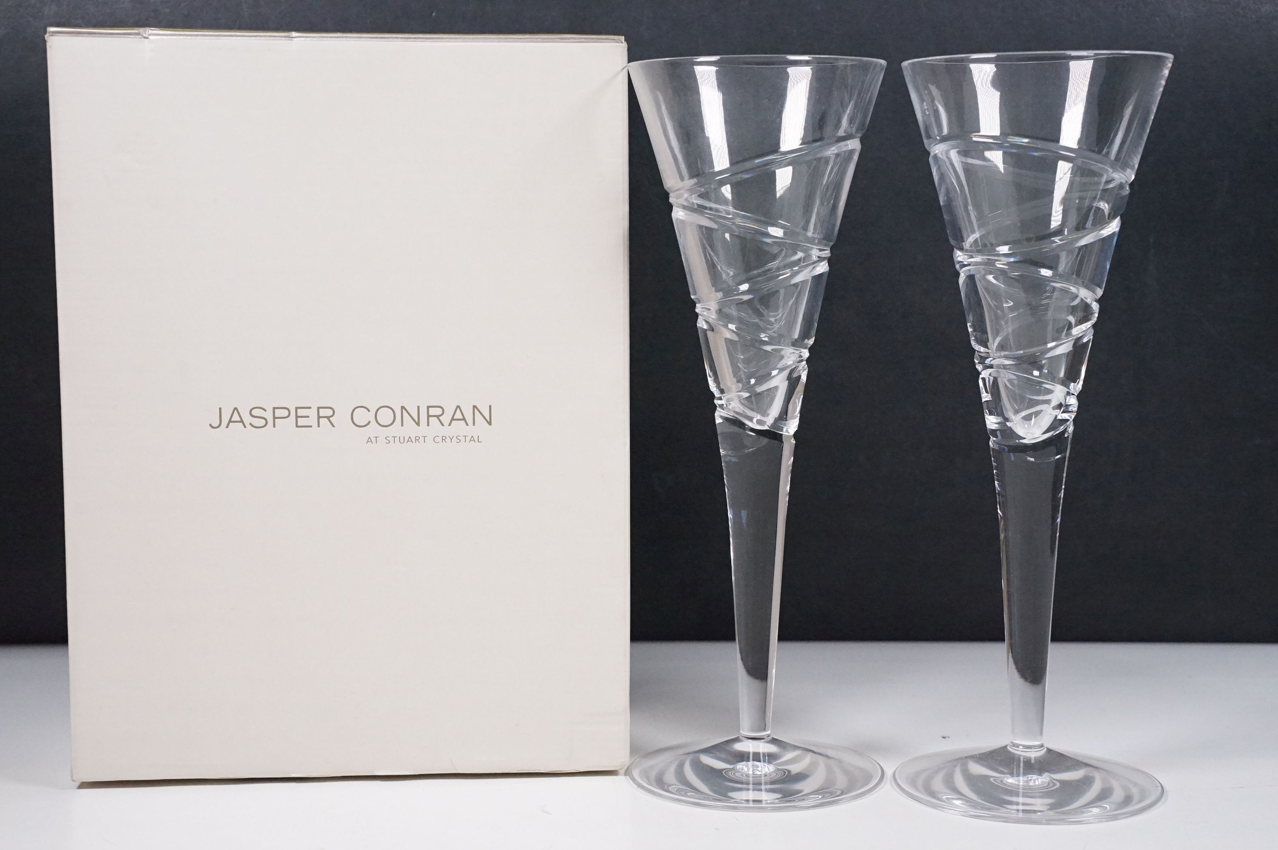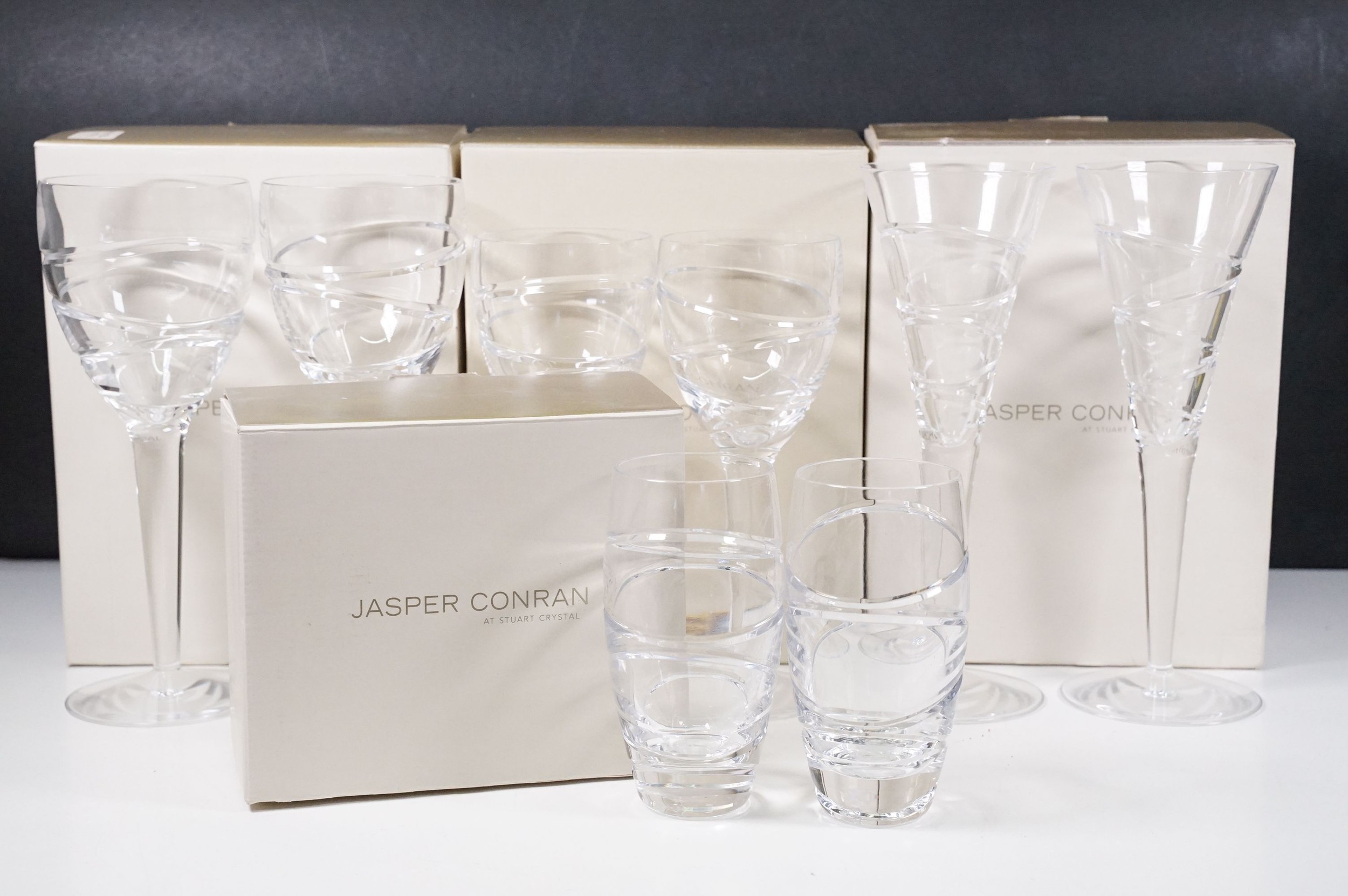 Jasper Conran at Stuart crystal 'Aura' design glasses to include long drink, wine and goblet examples and champagne flutes (4 boxes)