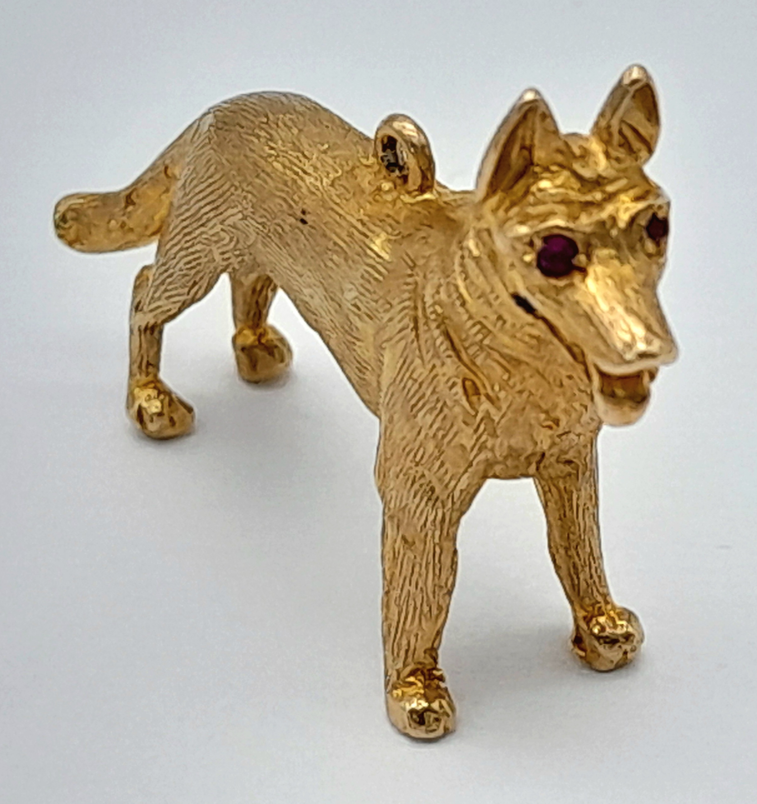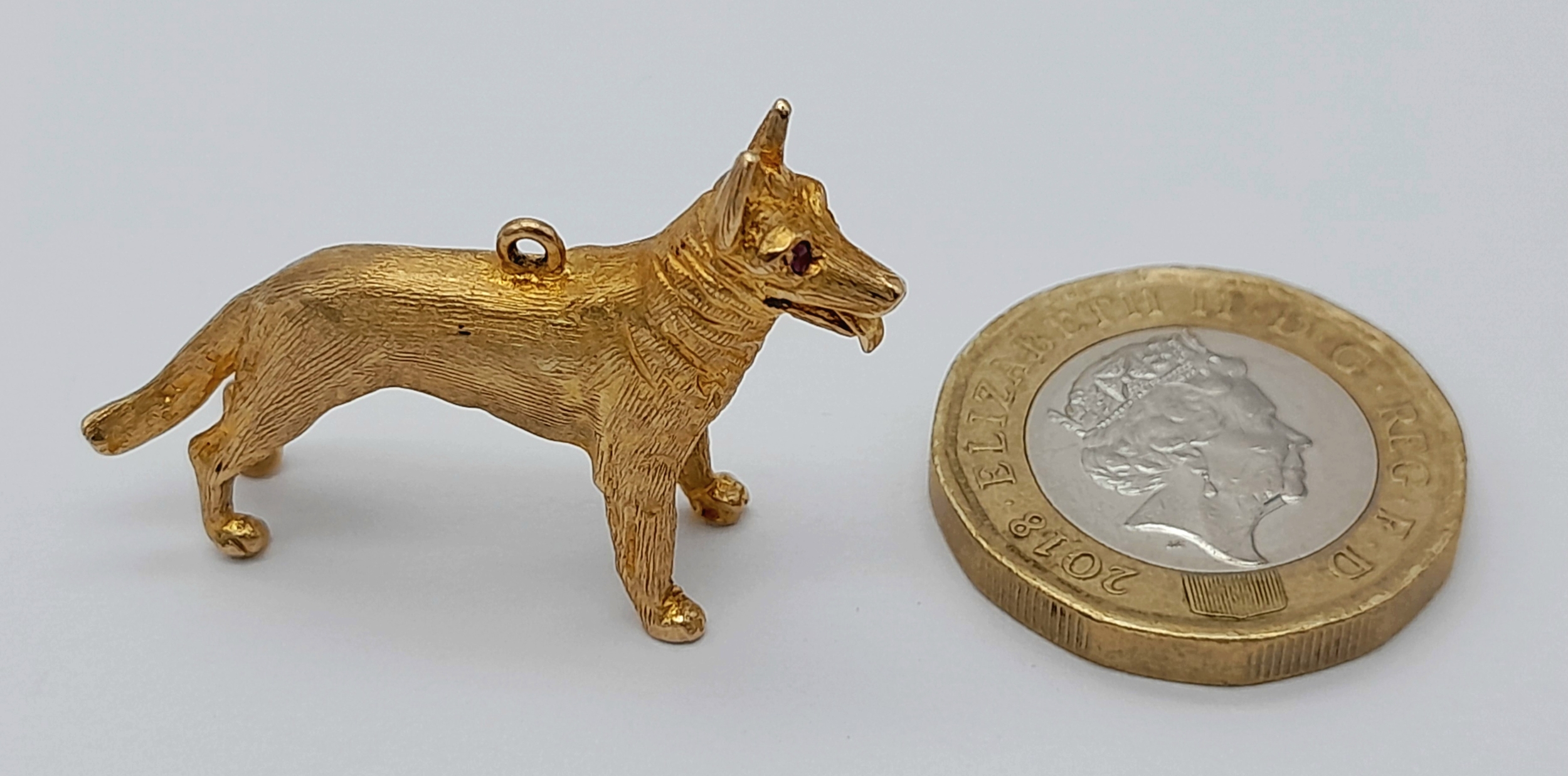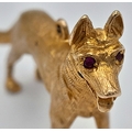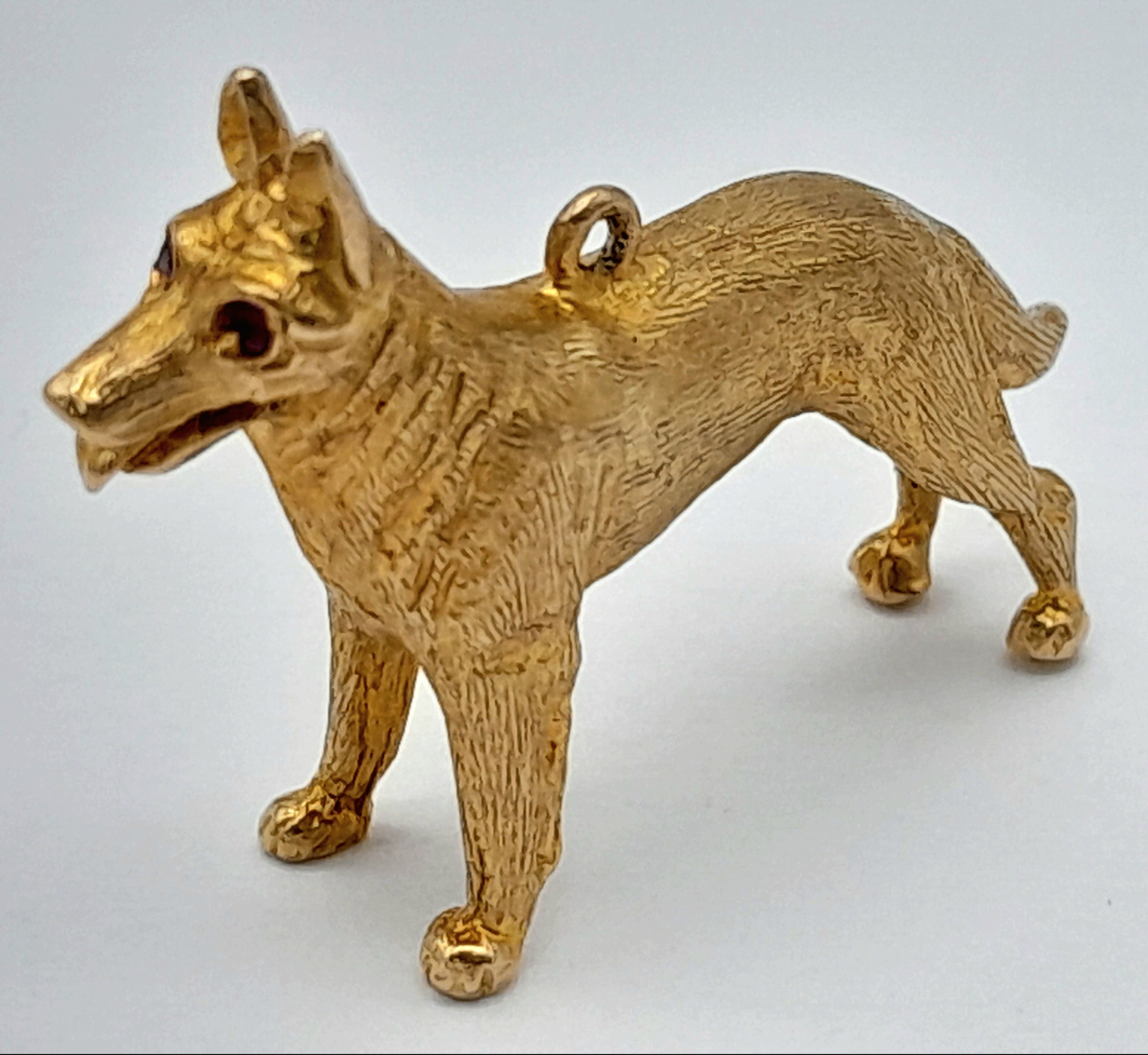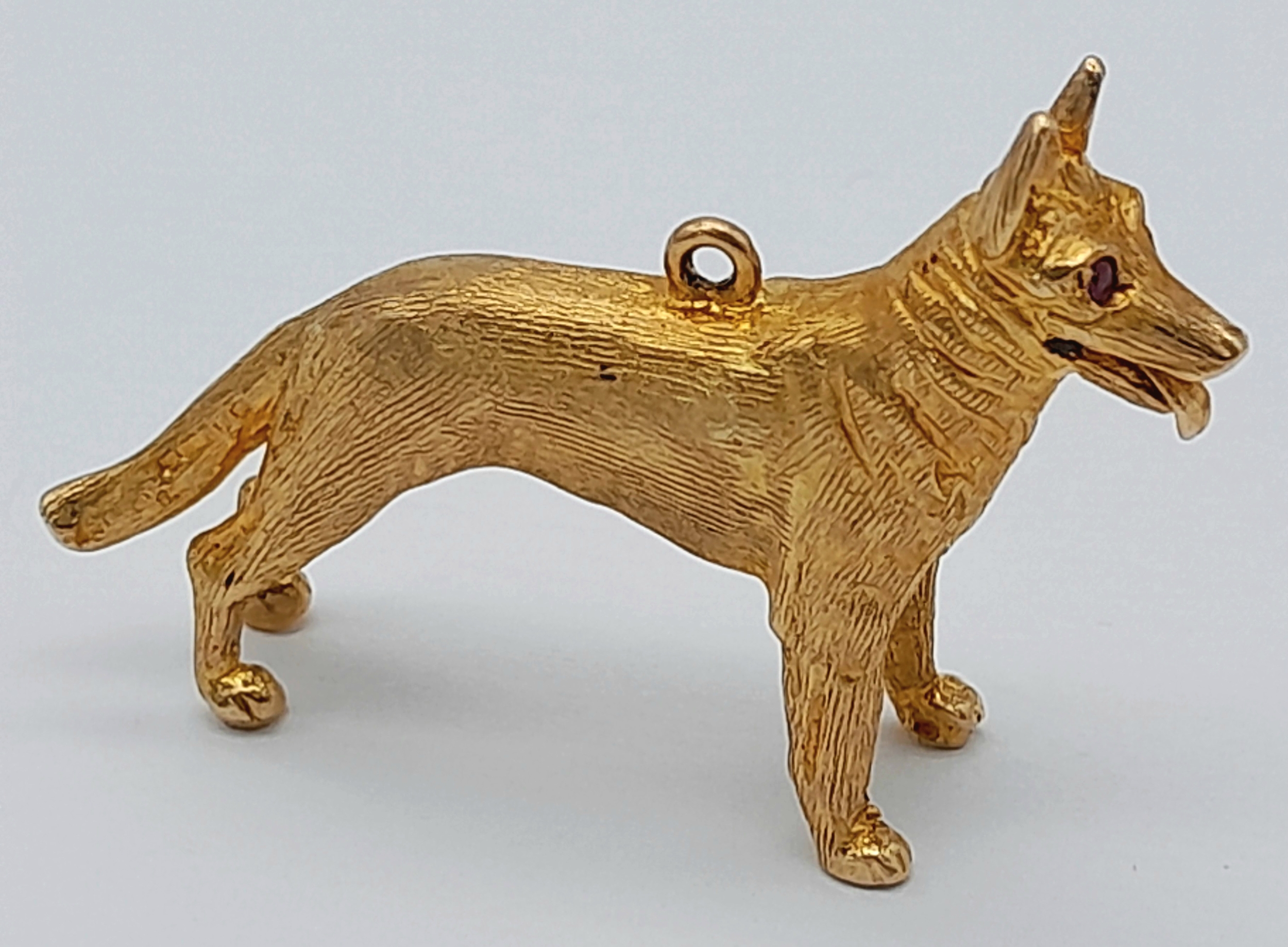 A 9K Yellow Gold German Shepard Dog with Ruby Eyes Pendant/charm. 3cm. 7.2g.