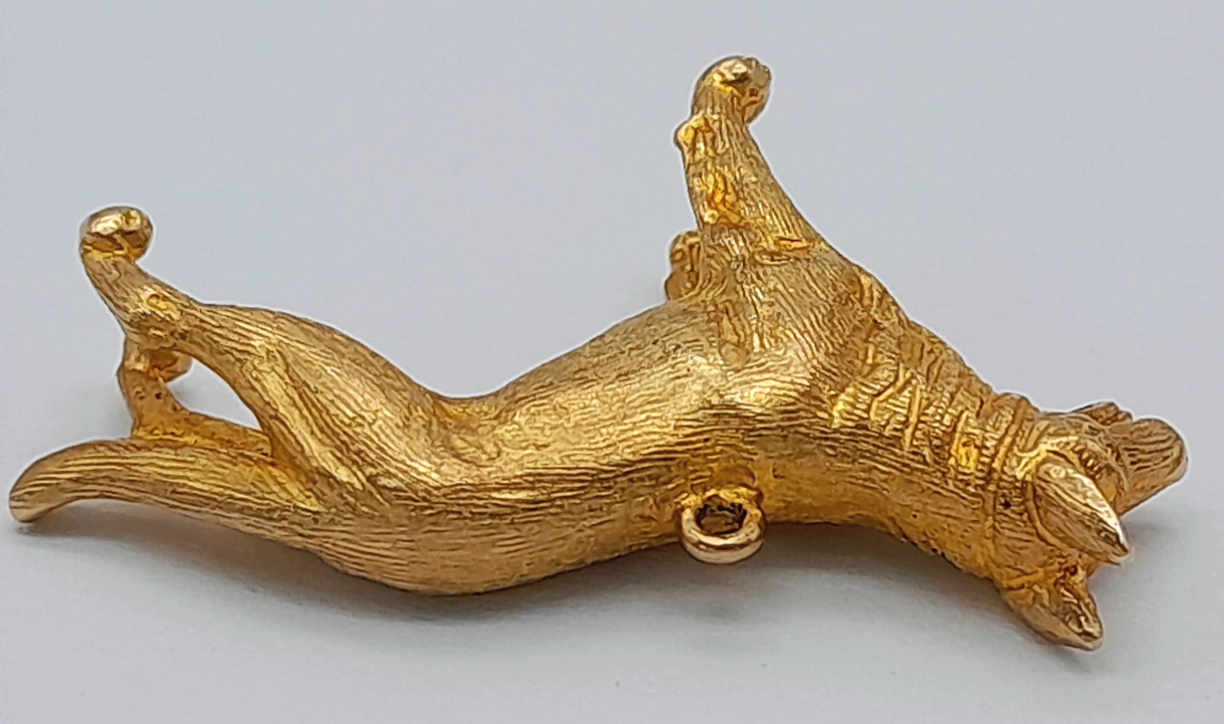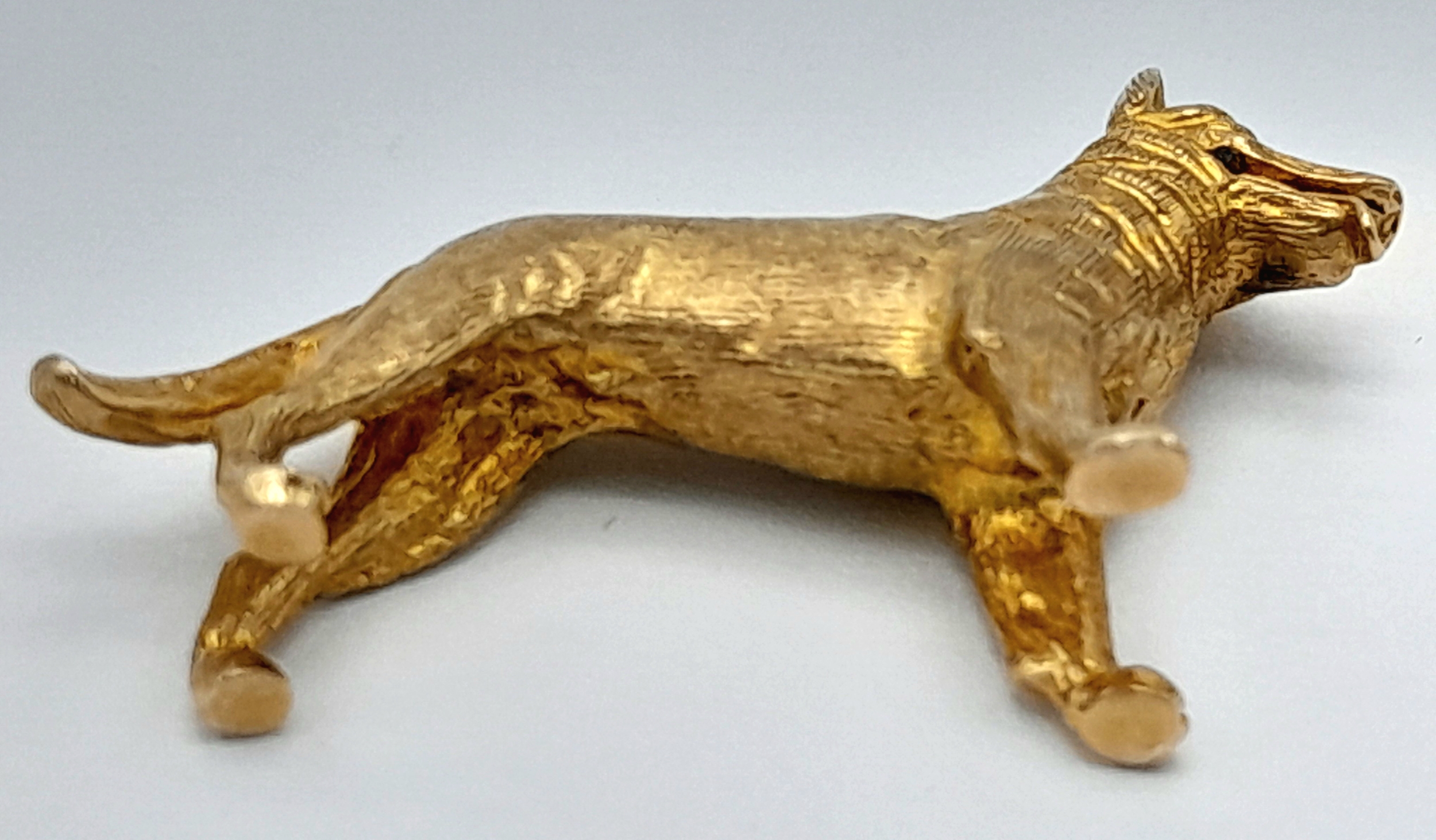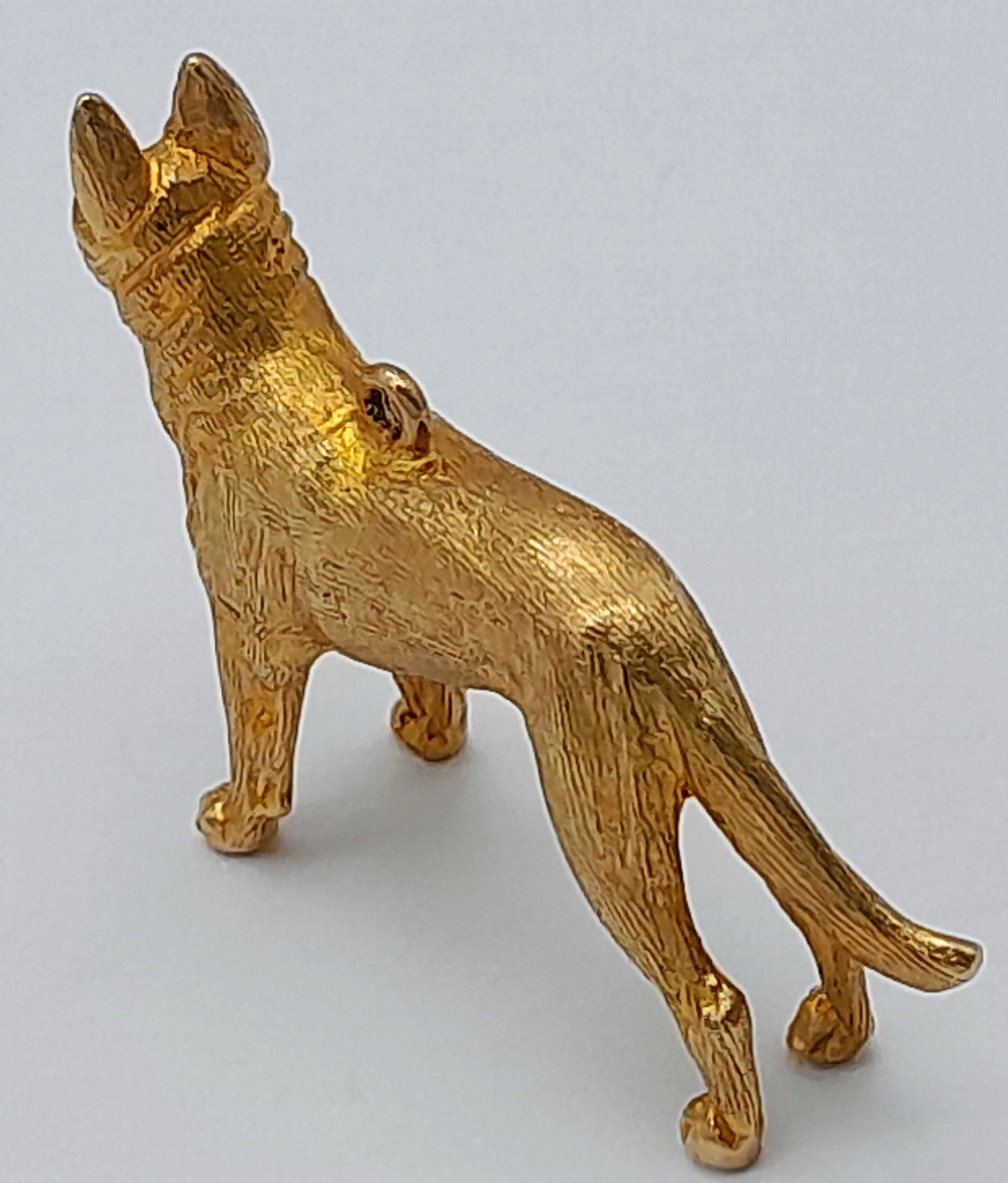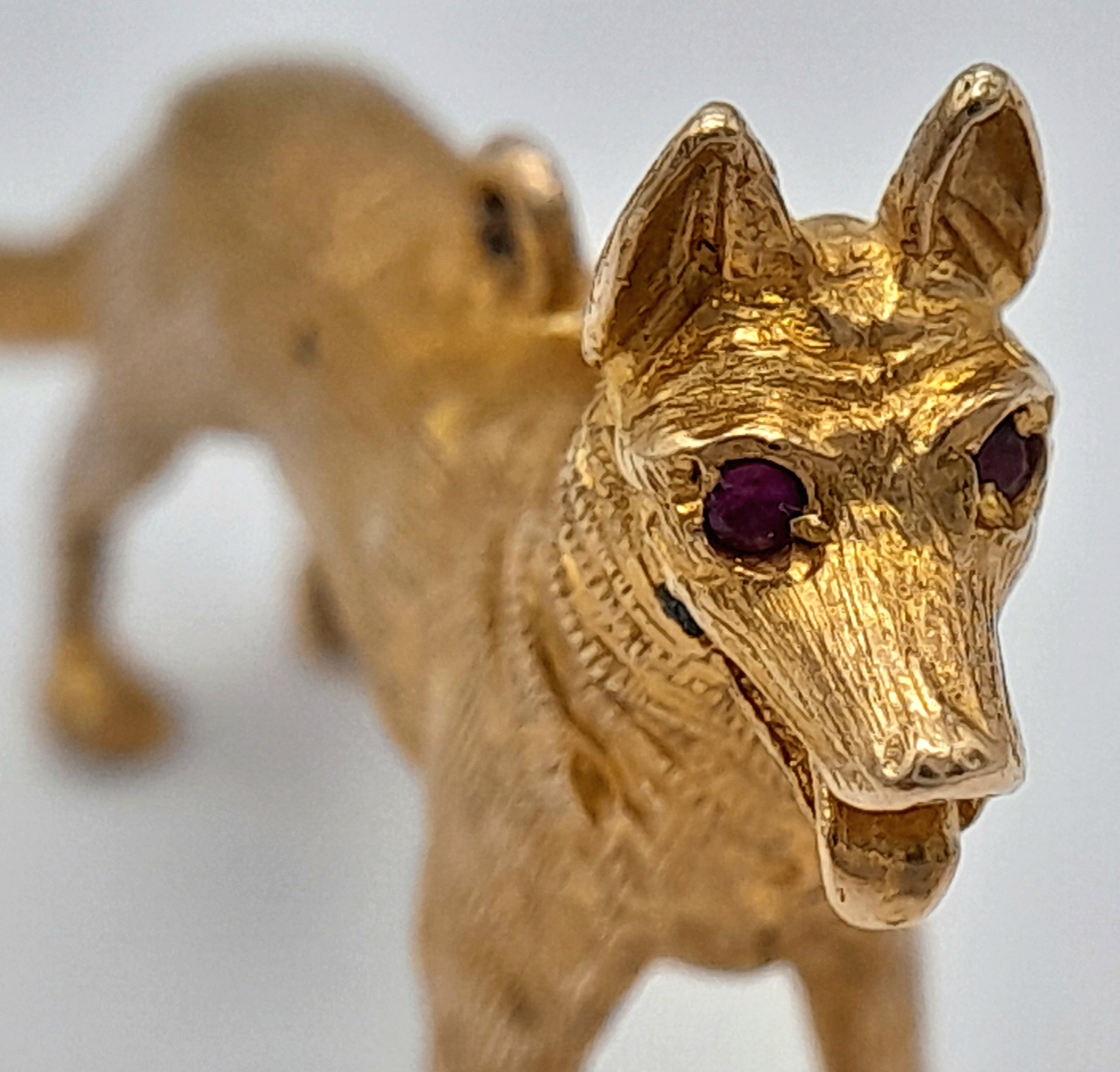 A 9K Yellow Gold German Shepard Dog with Ruby Eyes Pendant/charm. 3cm. 7.2g.