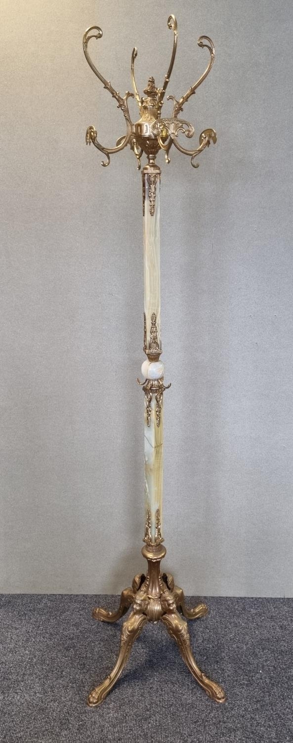Brass & Onyx Hat & Coat Stand, Height 179cm
