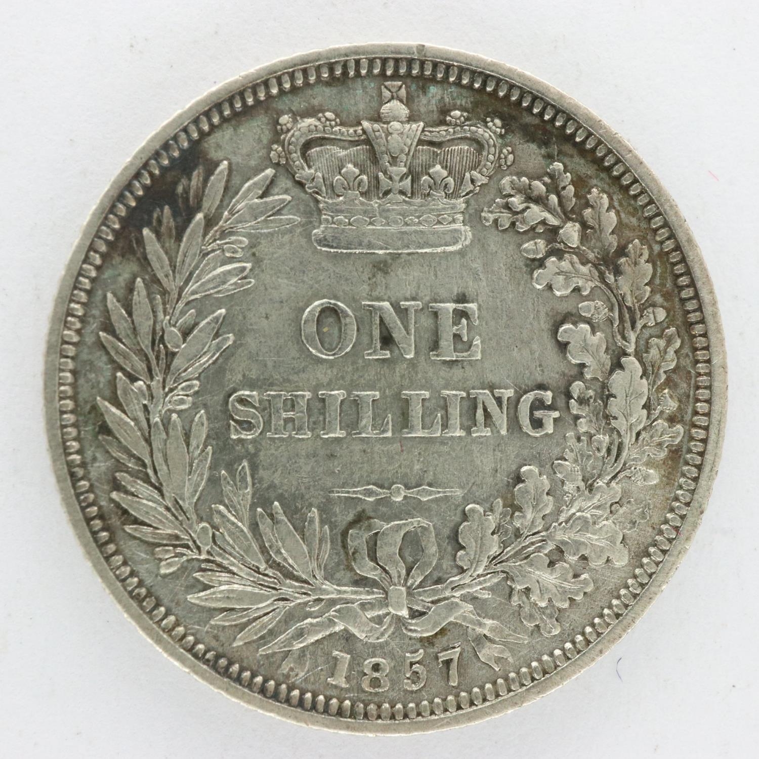 1857 silver shilling of Queen Victoria. UK P&P Group 0 (£6+VAT for the first lot and £1+VAT for subsequent lots)