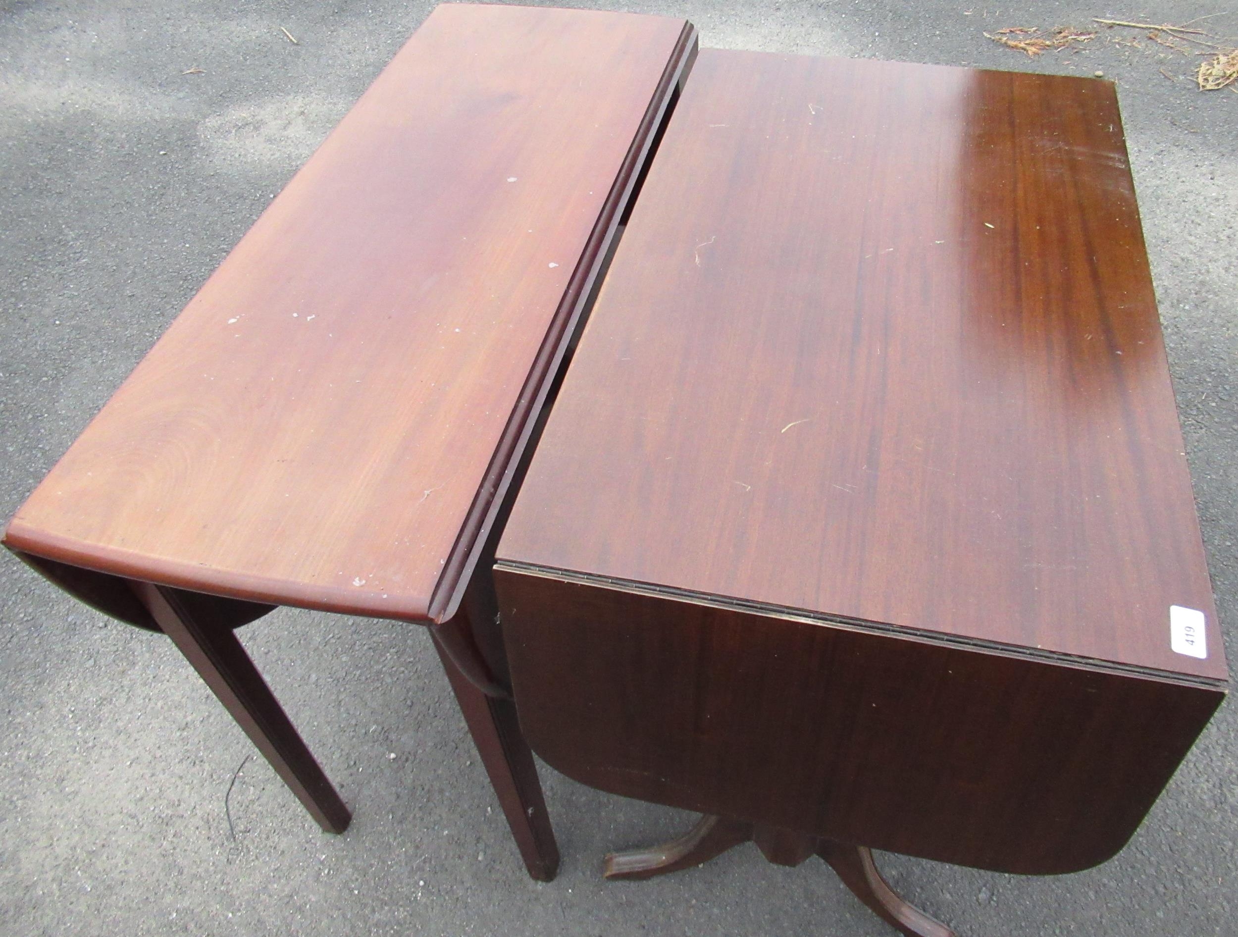 Reprox mahogany drop leaf sofa table and a similar drop leaf dining table (2)