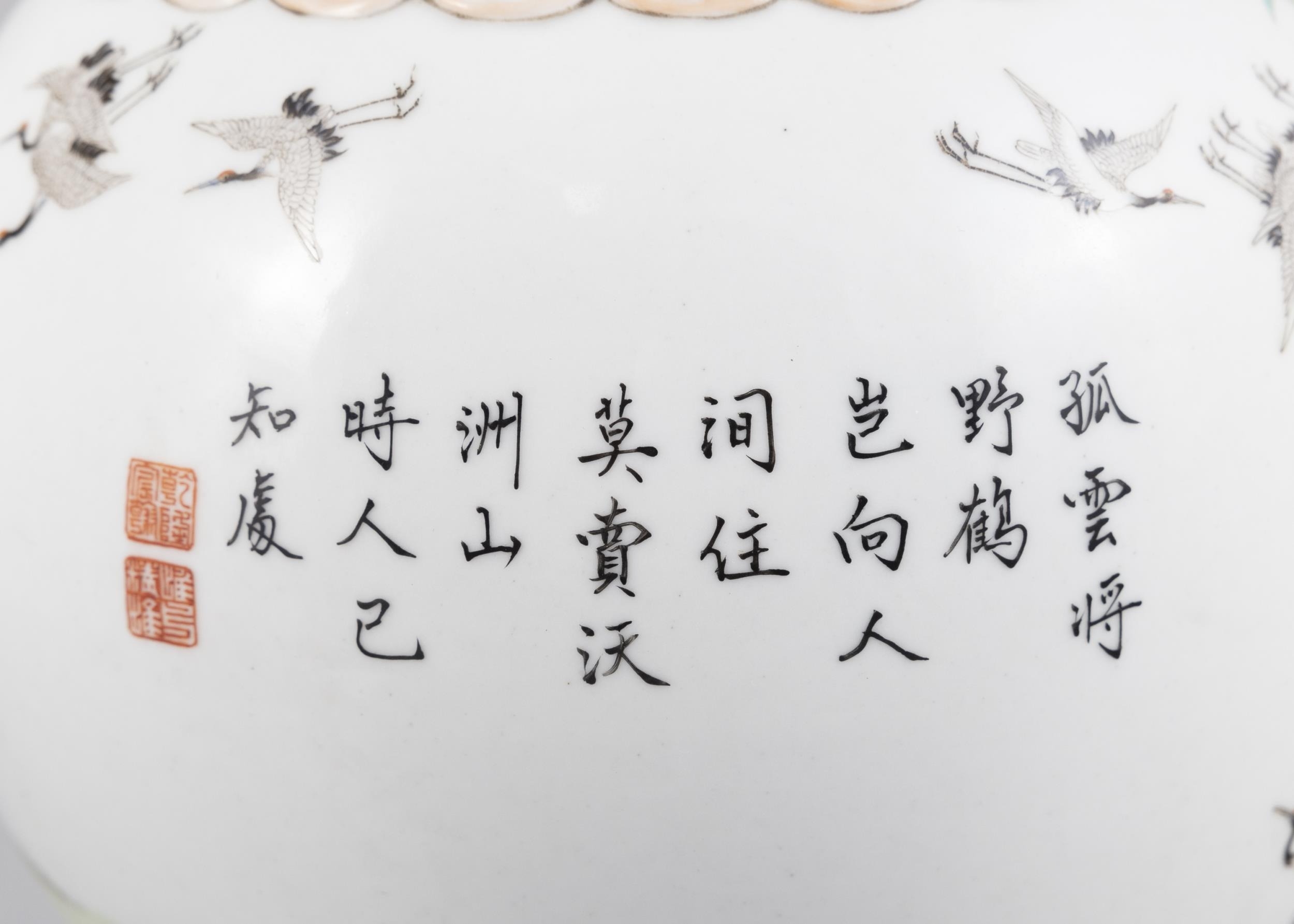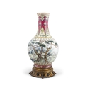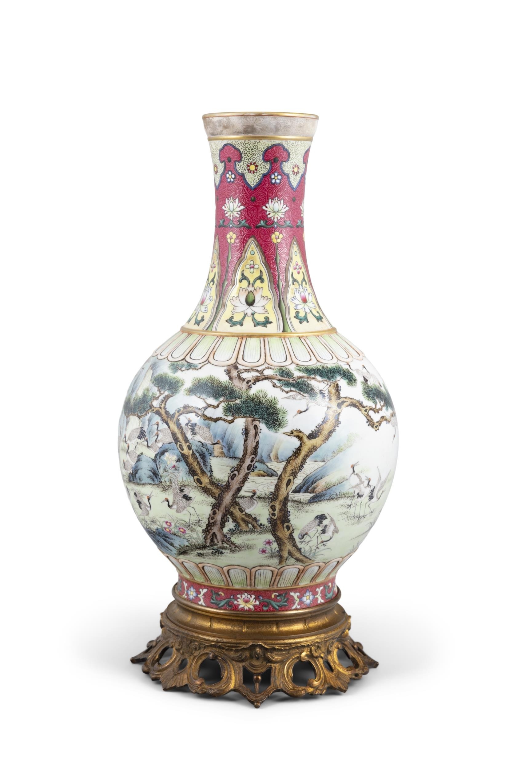 A YANGCAI STYLE THOUSAND CRANES VASE 20?? ???????? China, 20th century H: 32cm (porcelain) Bottom mounted in metal
