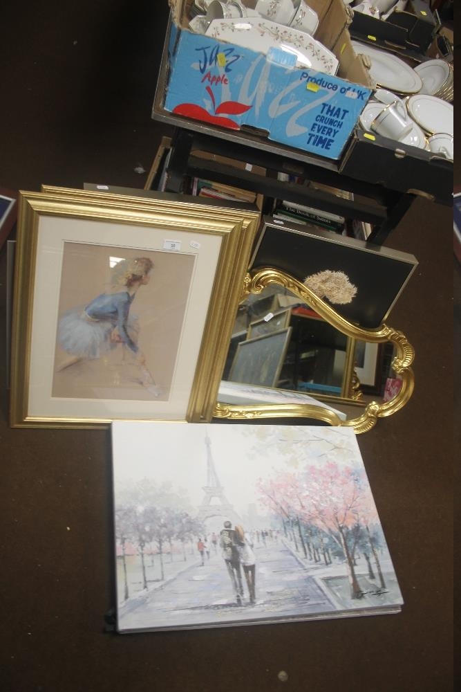 A QUANTITY OF ASSORTED PICTURES AND PRINTS TOGETHER WITH A MODERN MIRROR