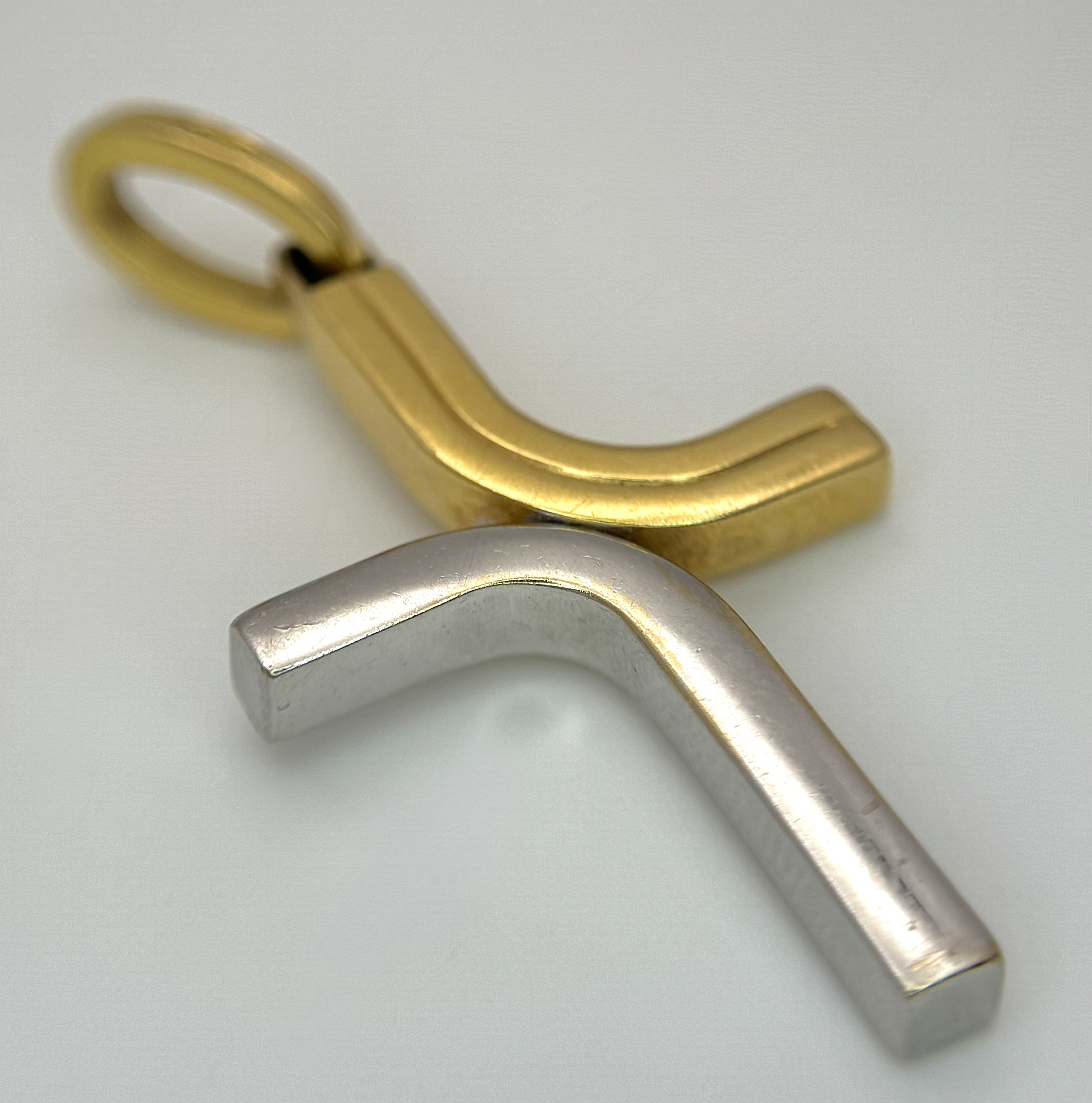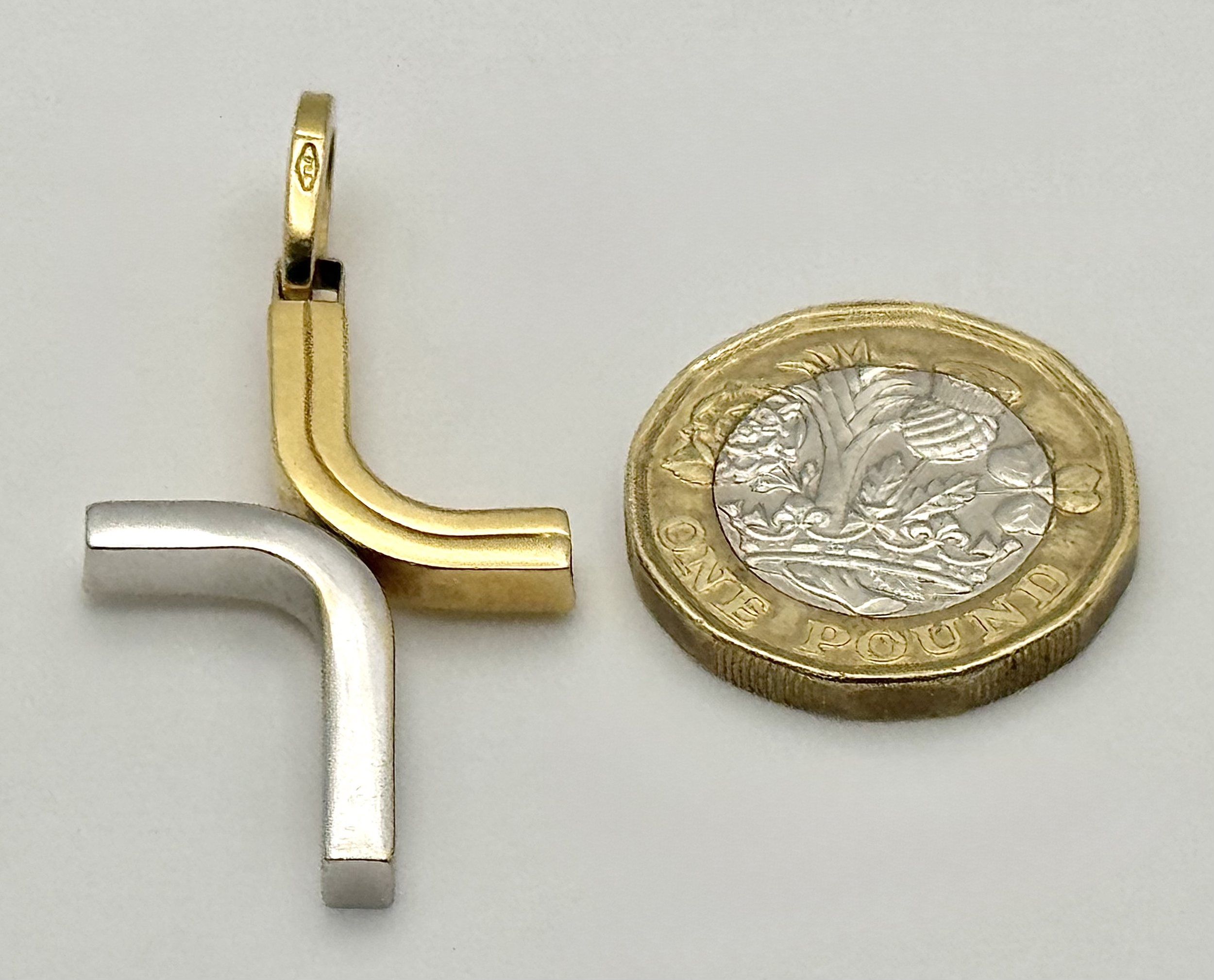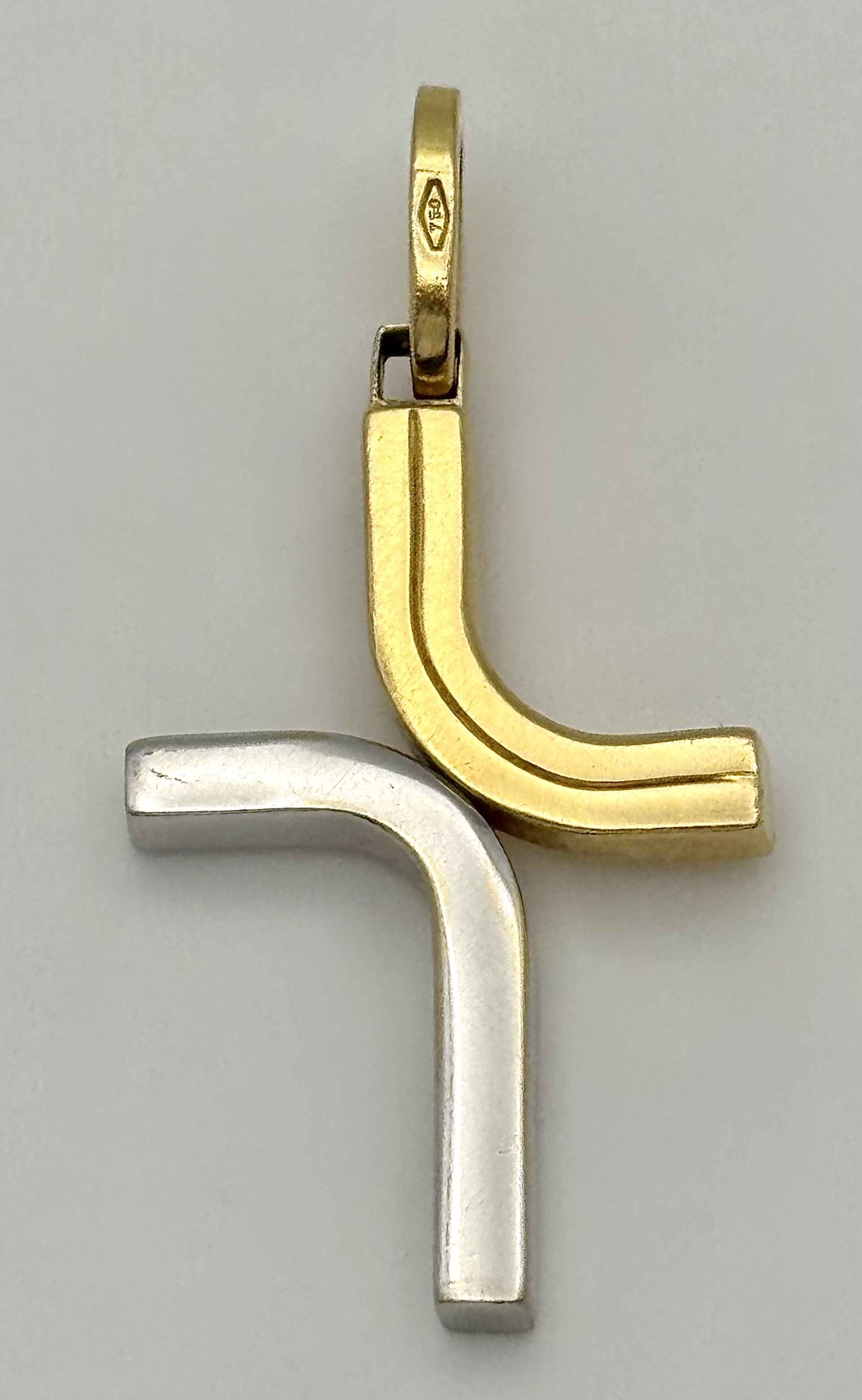 An 18K Yellow and White Gold Abstract Cross Pendant. 4.5cm. 3.9g. MT72.
