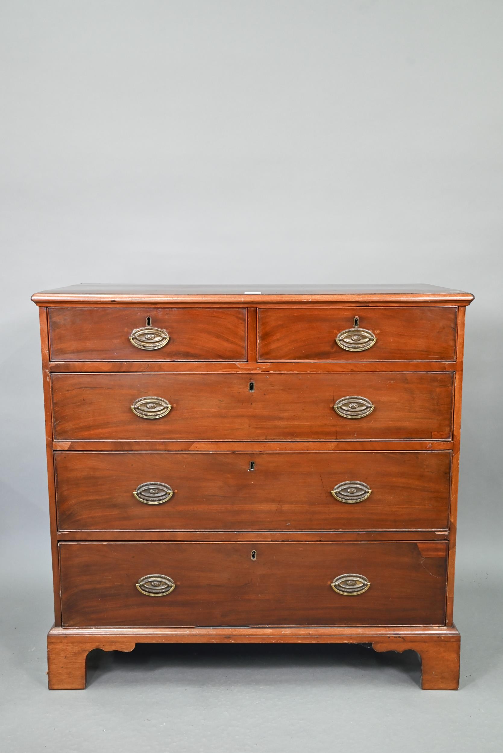 A Victorian mahogany chest of two short over three long graduated drawers, with later brass fittings, 104 cm x 50 cm x 99 cm h