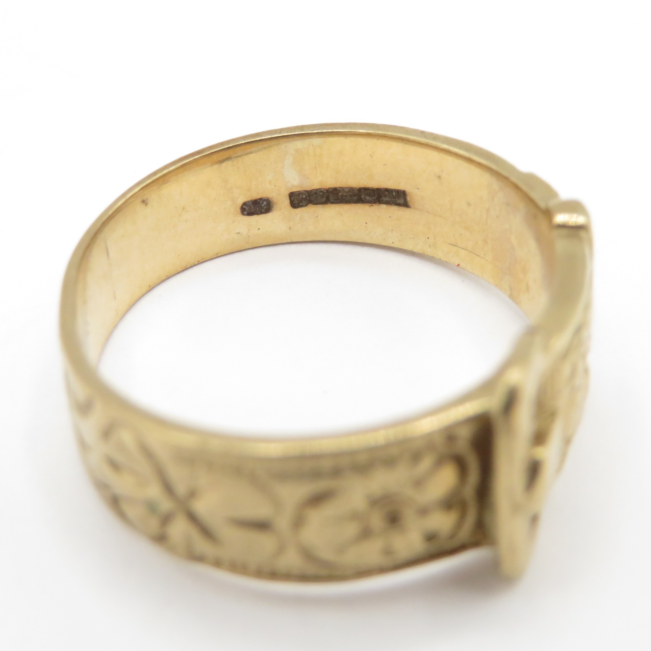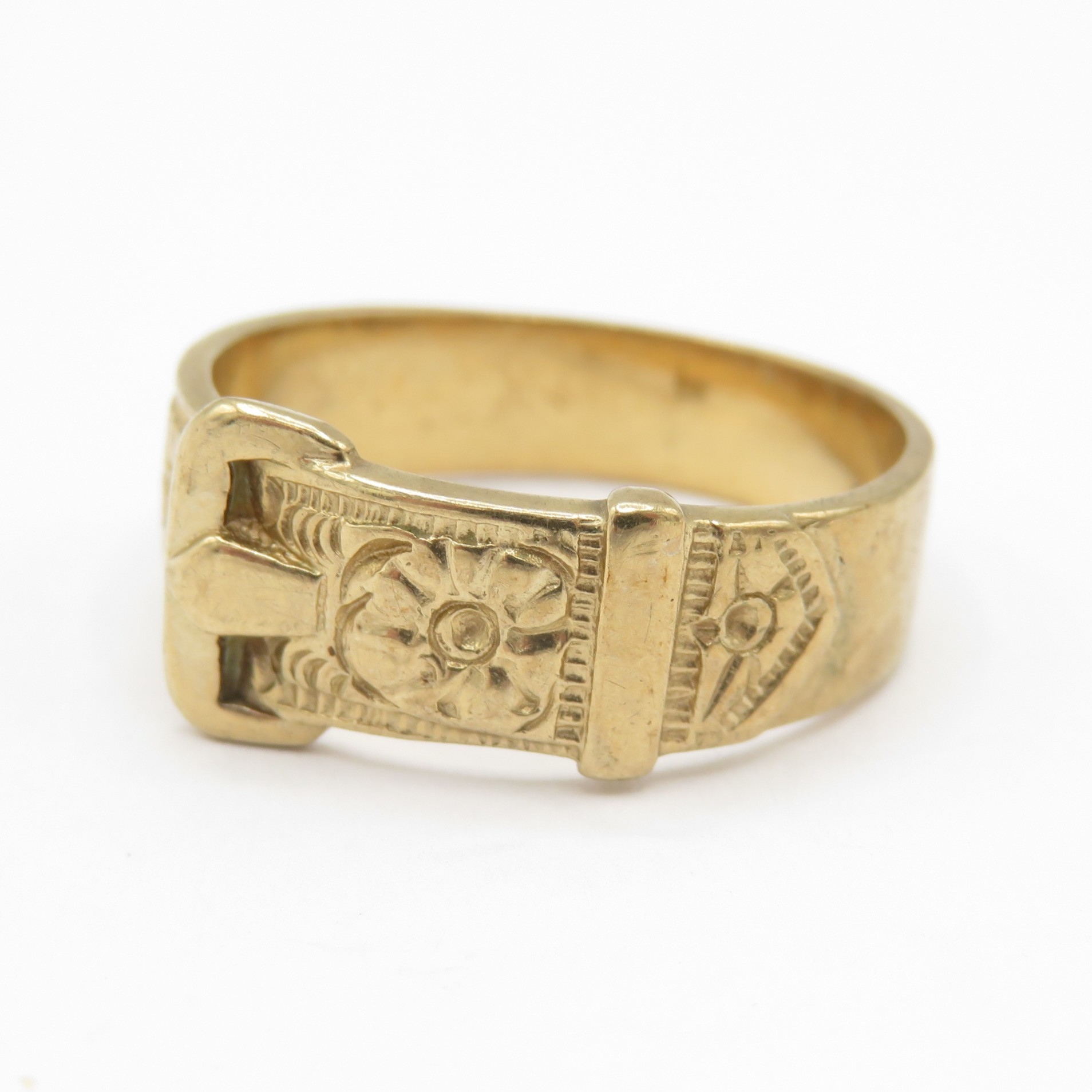 9ct gold buckle ring with floral detailing (3.7g) size N 1/2