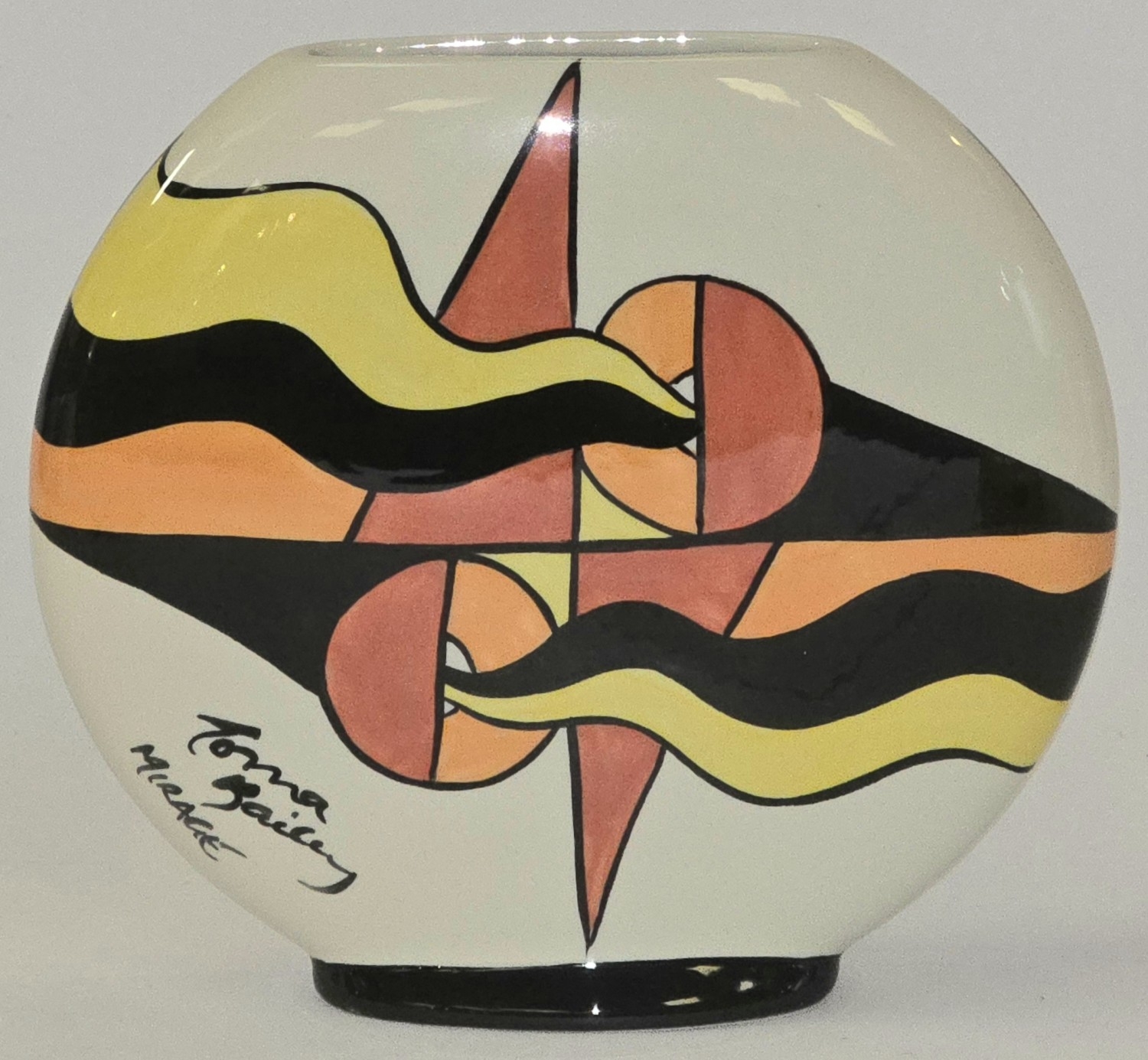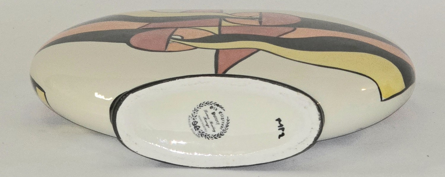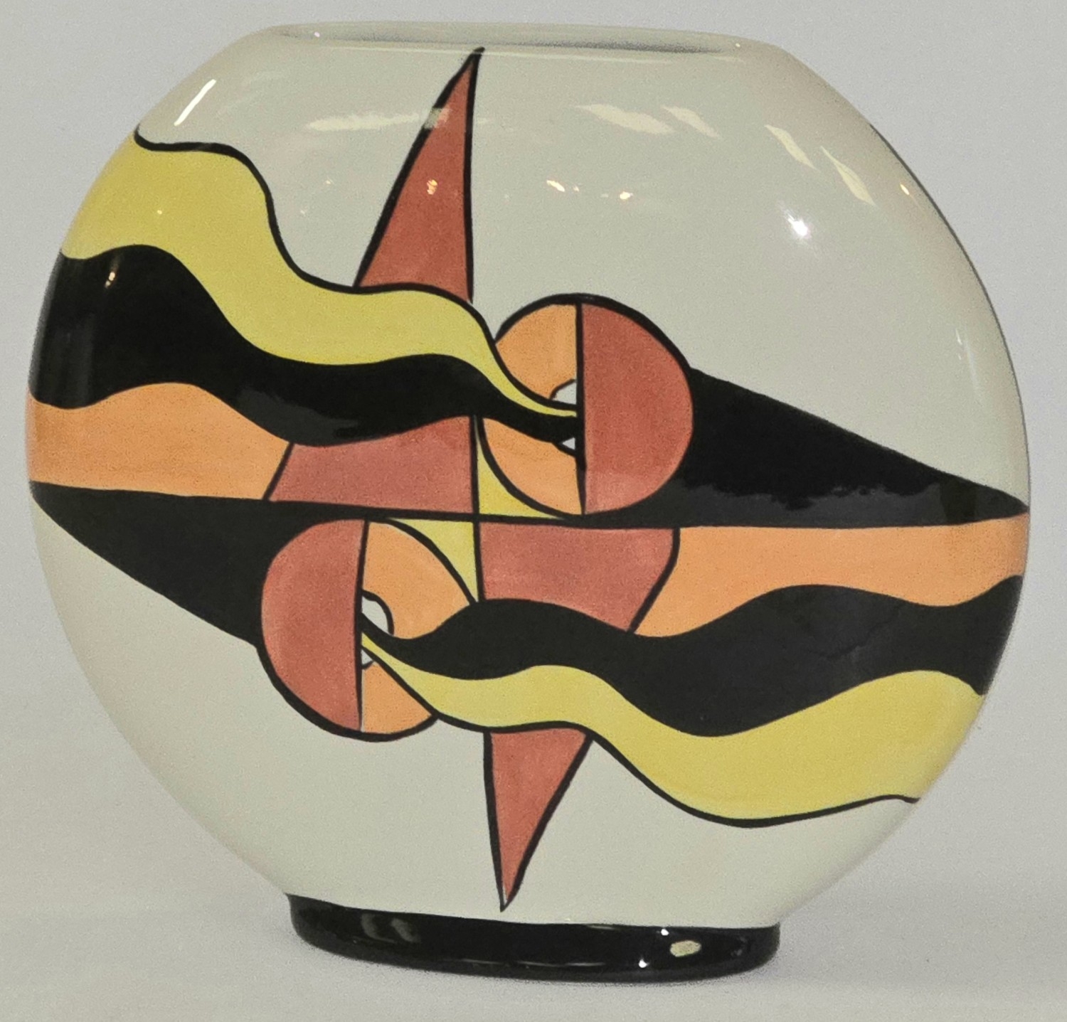 Lorna Bailey Old Ellgreave Pottery Flattened vase in the "Mirage" pattern. 17cms tall. Signed and stamped, perfect condition.