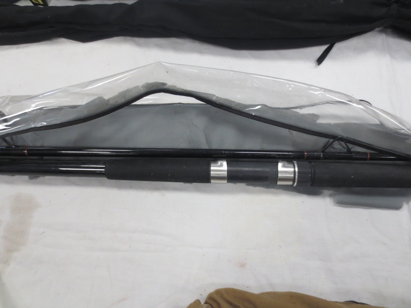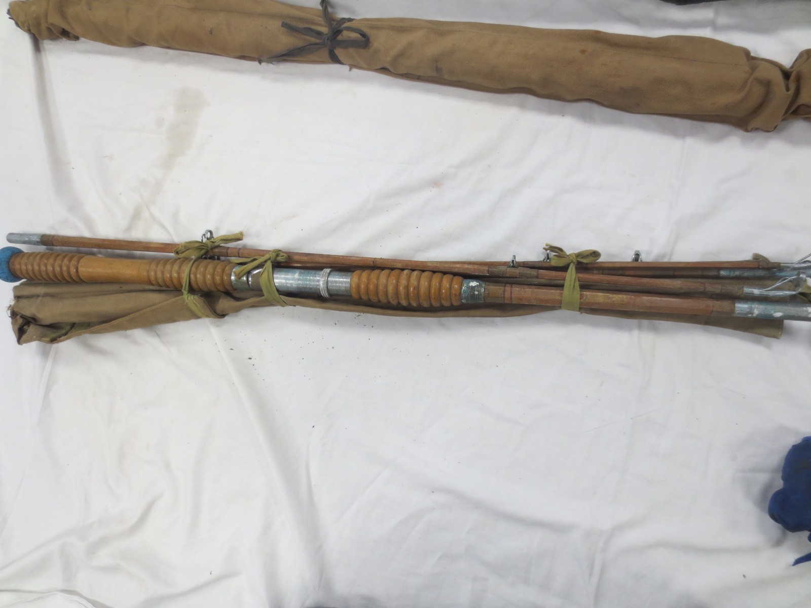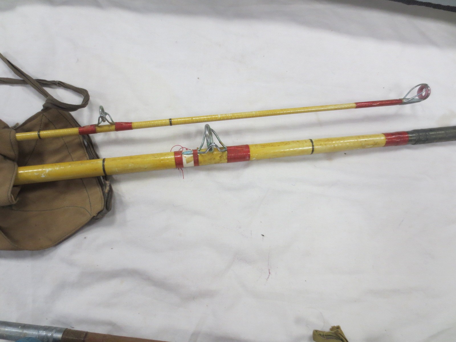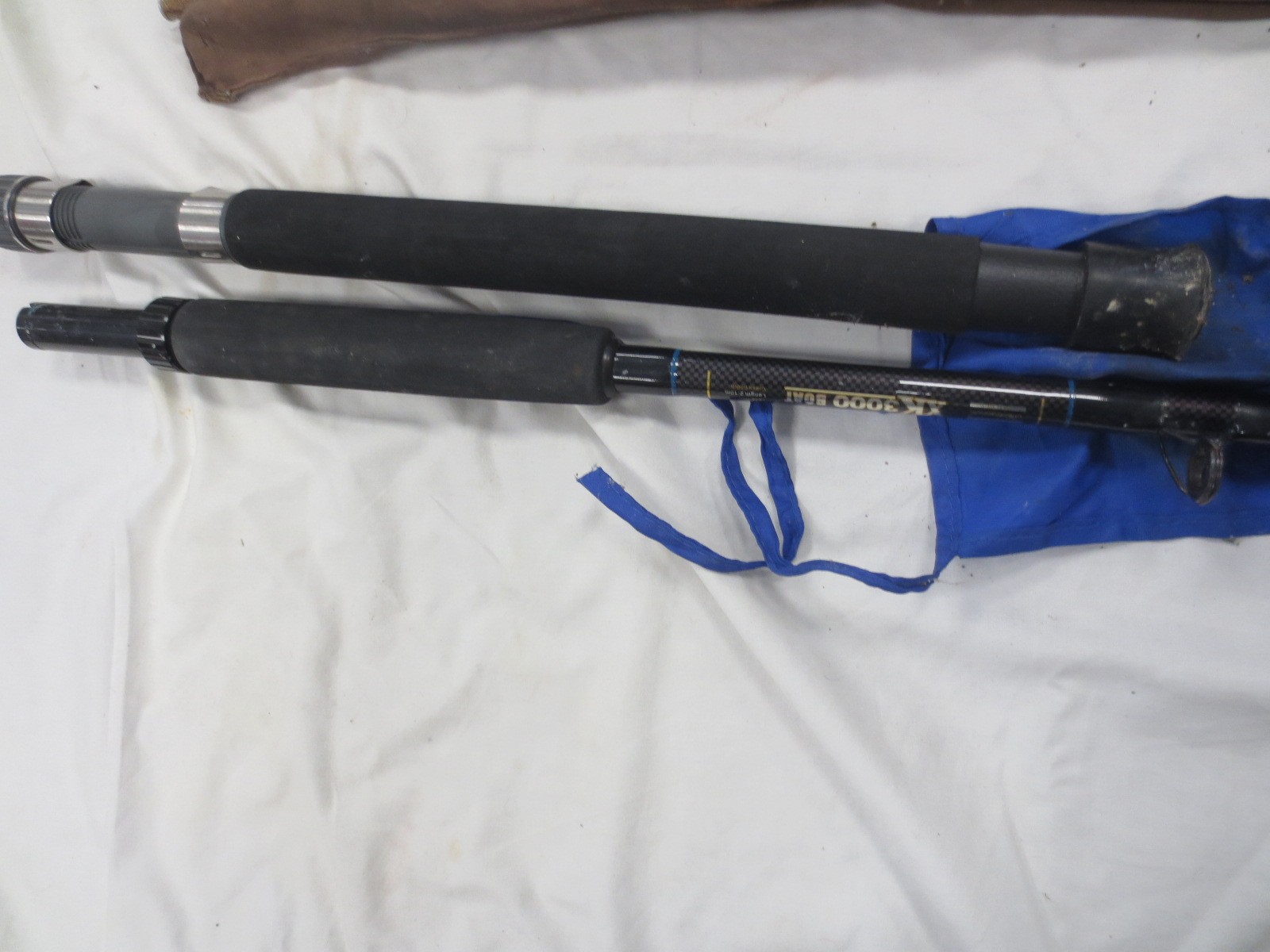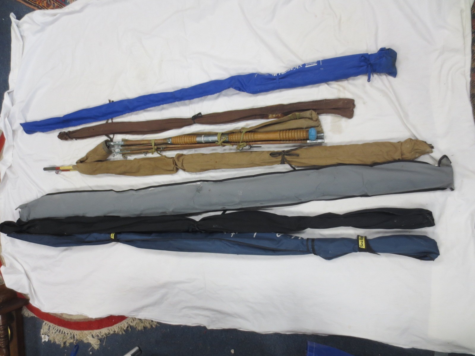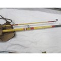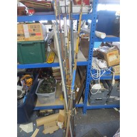 A bundle of fishing rods including fly and beach fishing