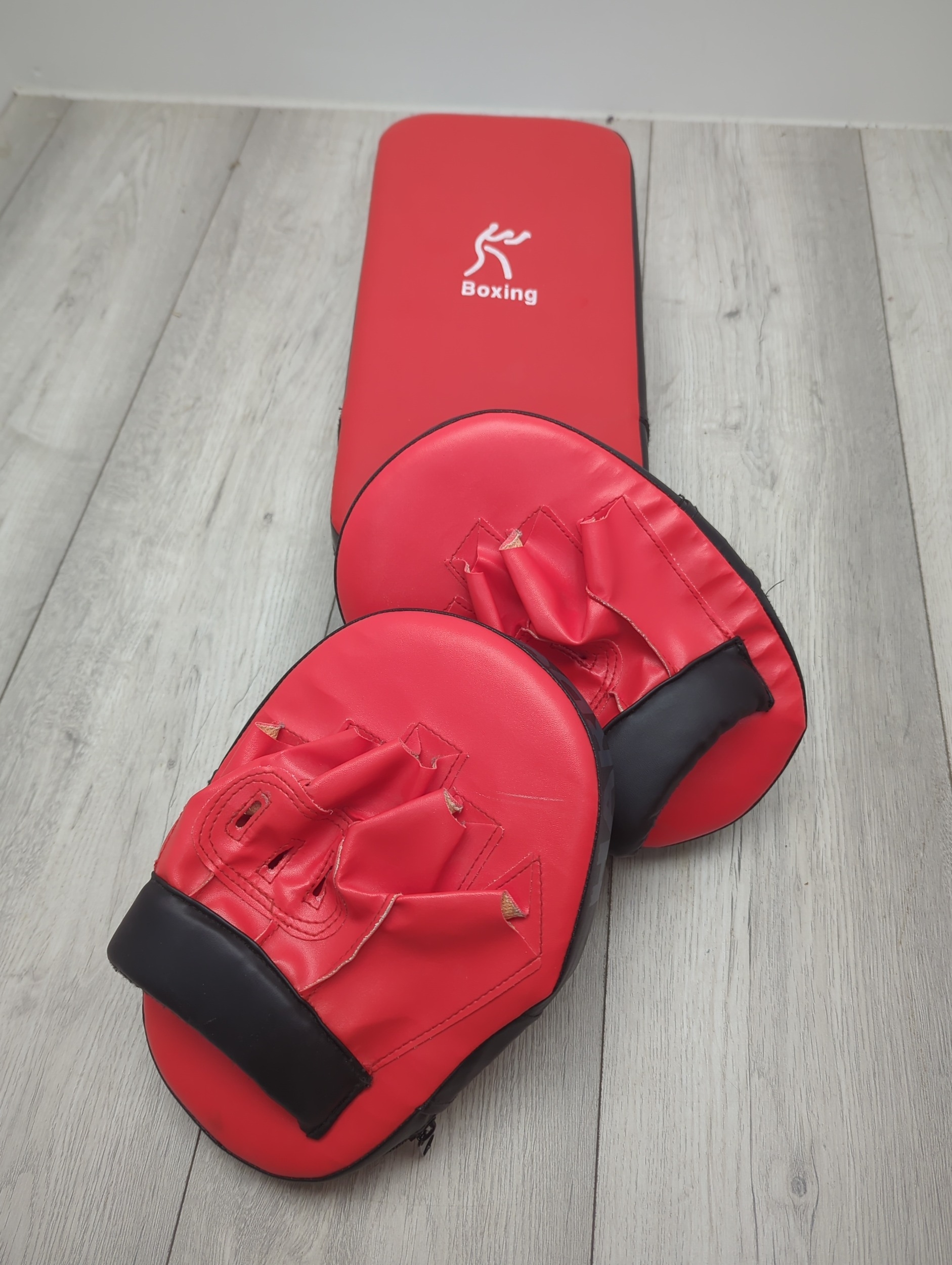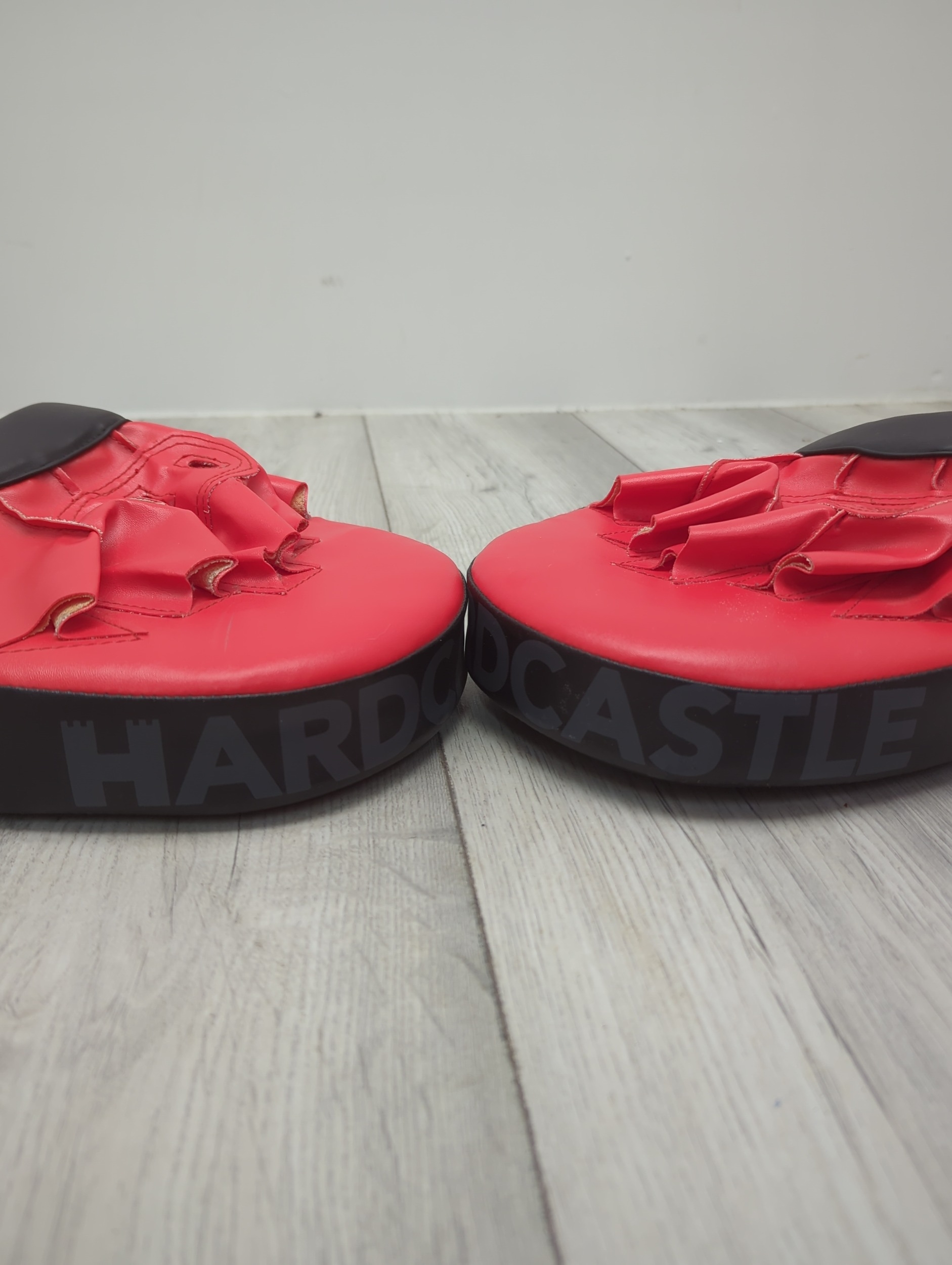 This set includes Hardcastle branded boxing pads and a kick shield, both in a striking red and black colour scheme. The boxing pads feature a firm grip and are designed for comfortable handling during training sessions. The kick shield is robust and padded, suitable for practising powerful kicks. The set is tailored for enhancing boxing and kickboxing skills.