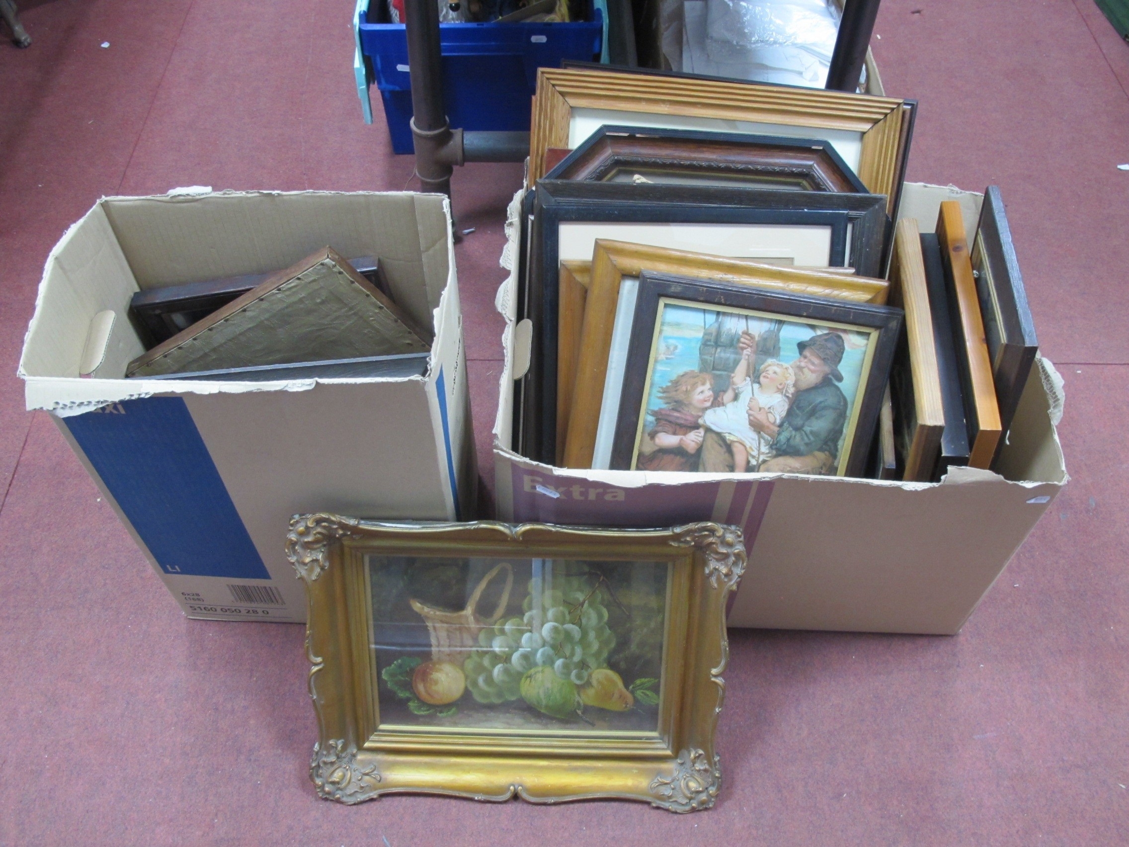 After W.G Baxter, a pair of Humerous prints "A Quite Game at Nap", other pictures, pine mirror, XVIII Century Westmoreland print:- Two Boxes.