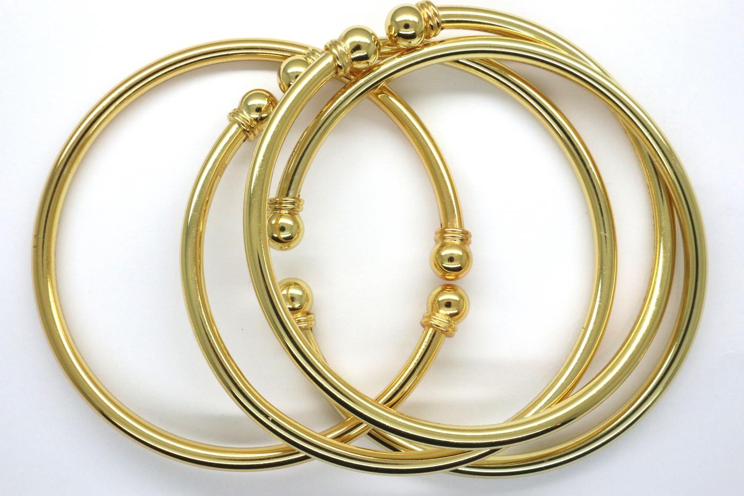 Four 925 silver and gilt bangles. P&P Group 1 (£14+VAT for the first lot and £1+VAT for subsequent lots)