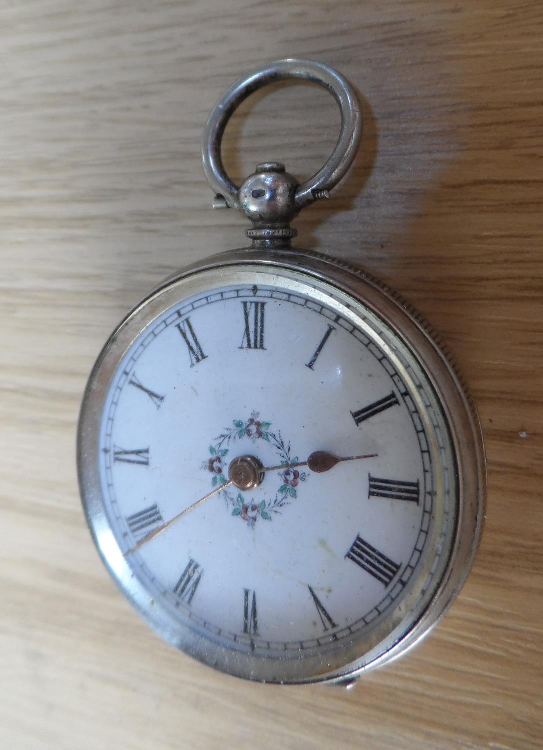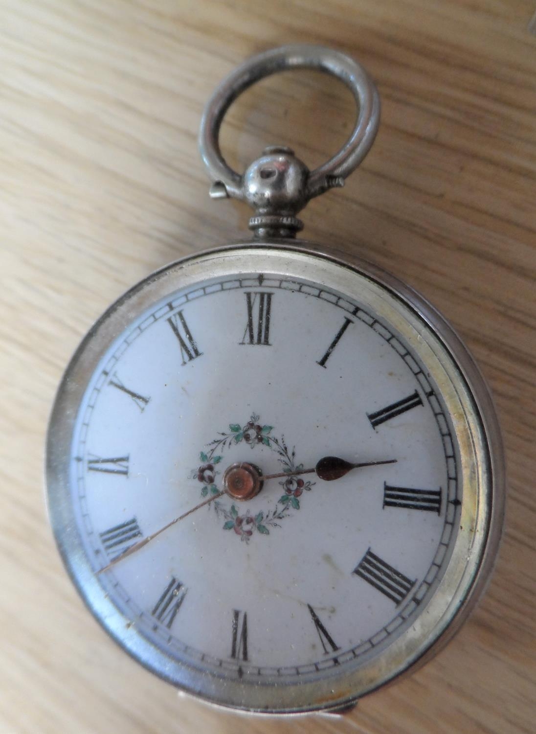 Ladies unmarked, decorated enamel fronted antique European 800 silver pocket watch