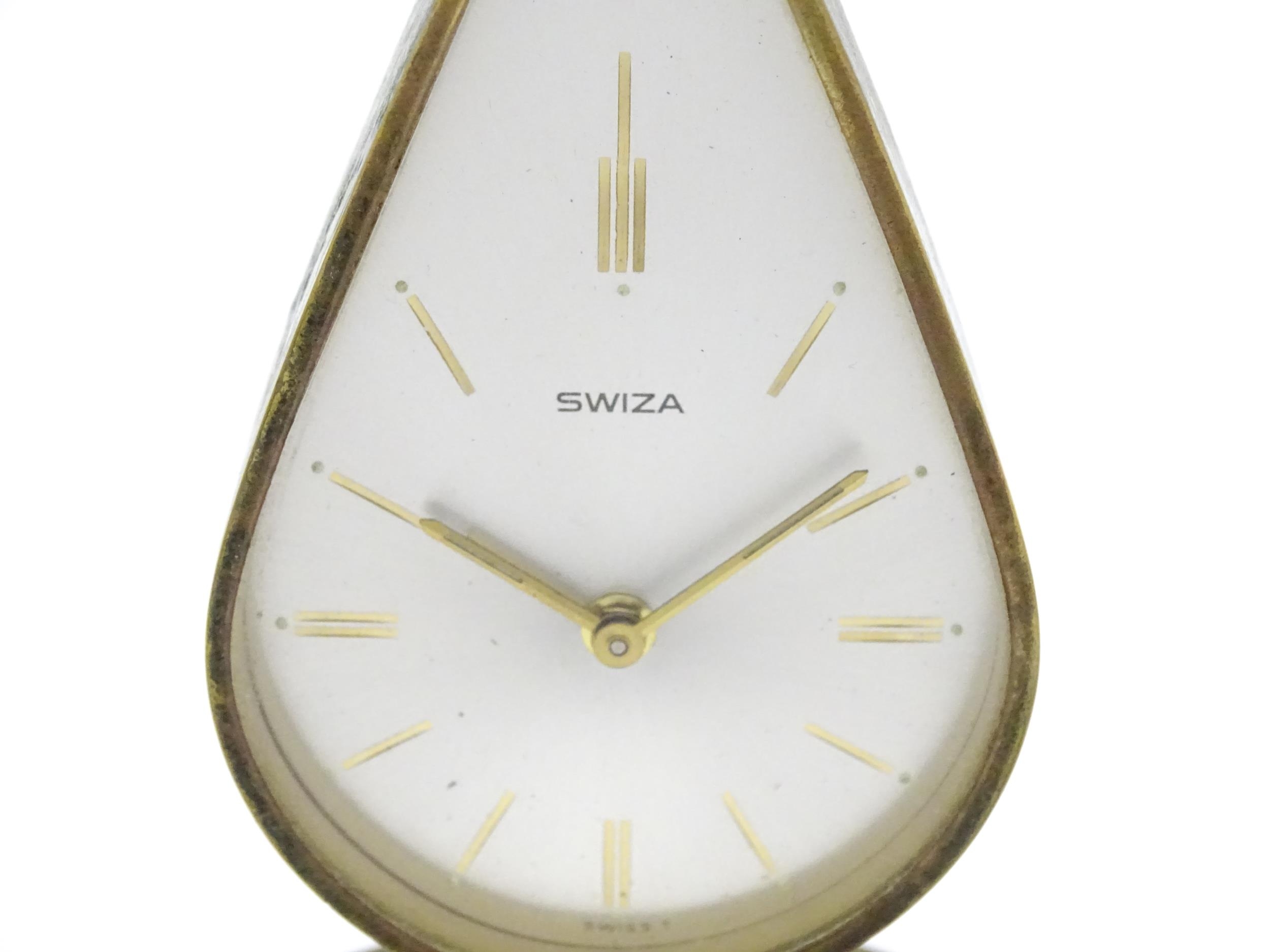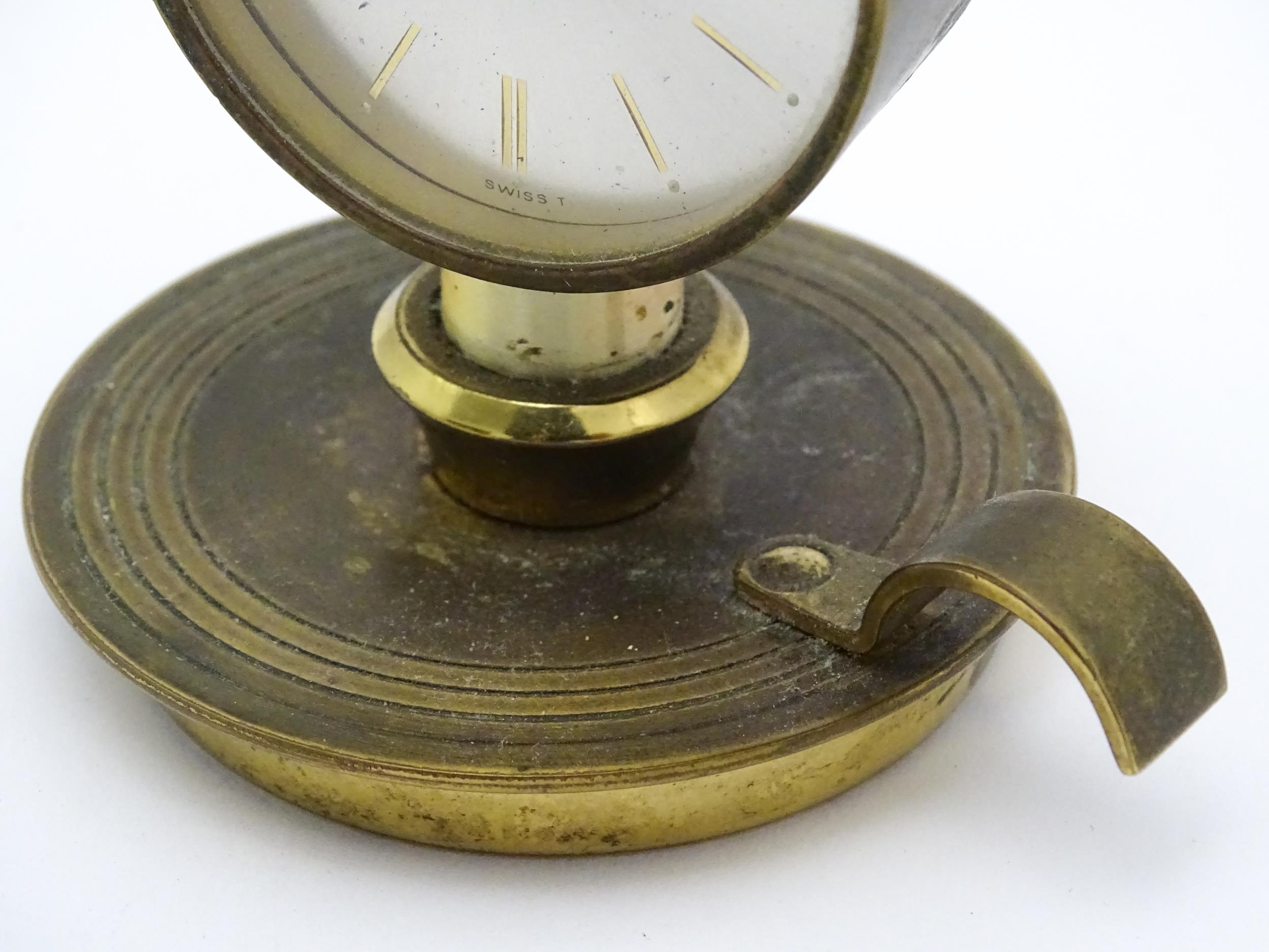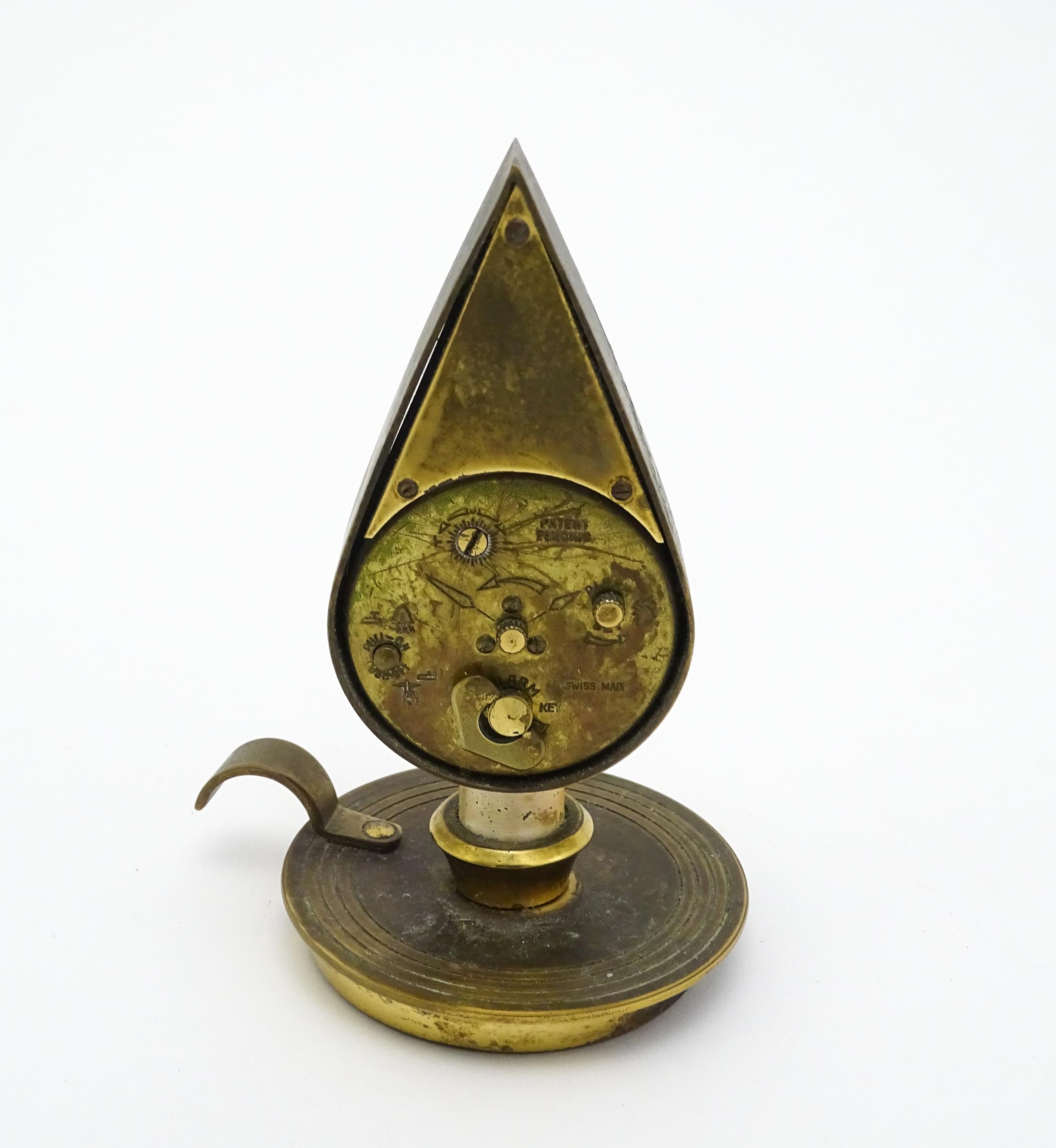 A Swiza novelty clock formed as a chamber stick with candle, the clock of flame form. Approx 5 1/4" high
