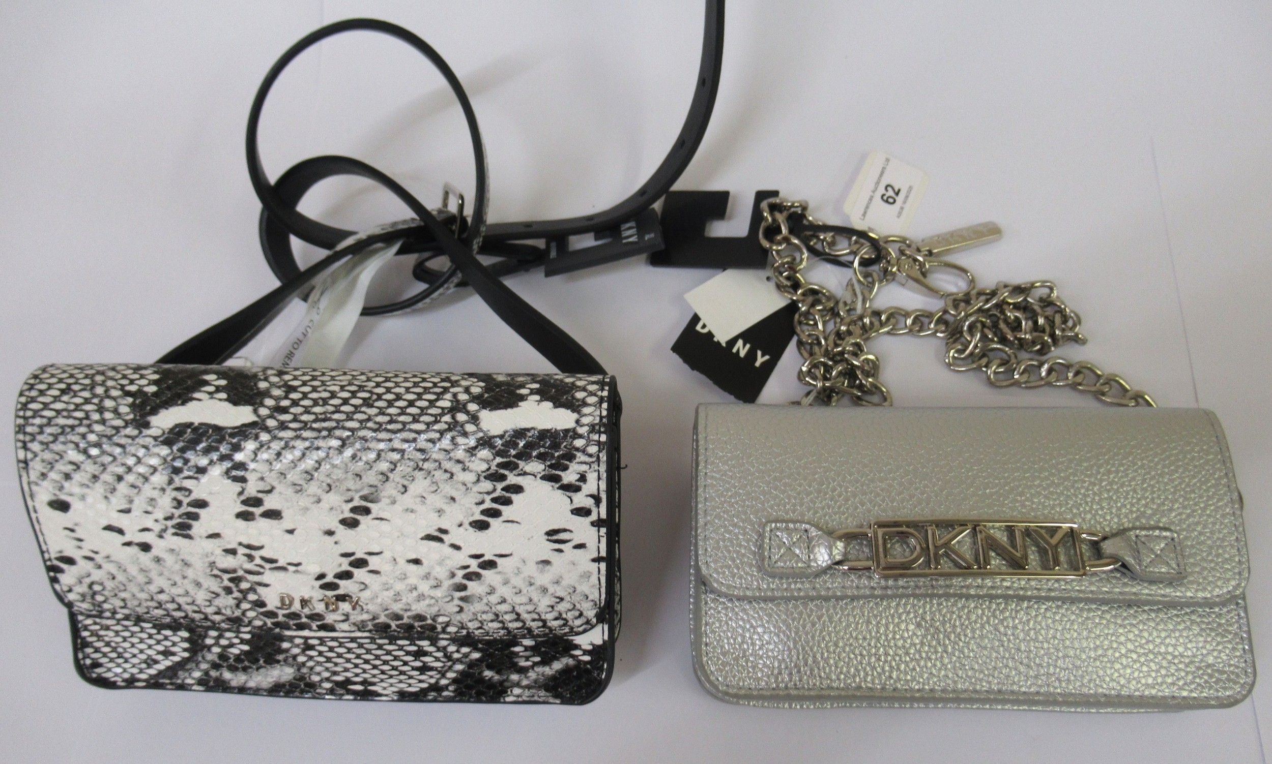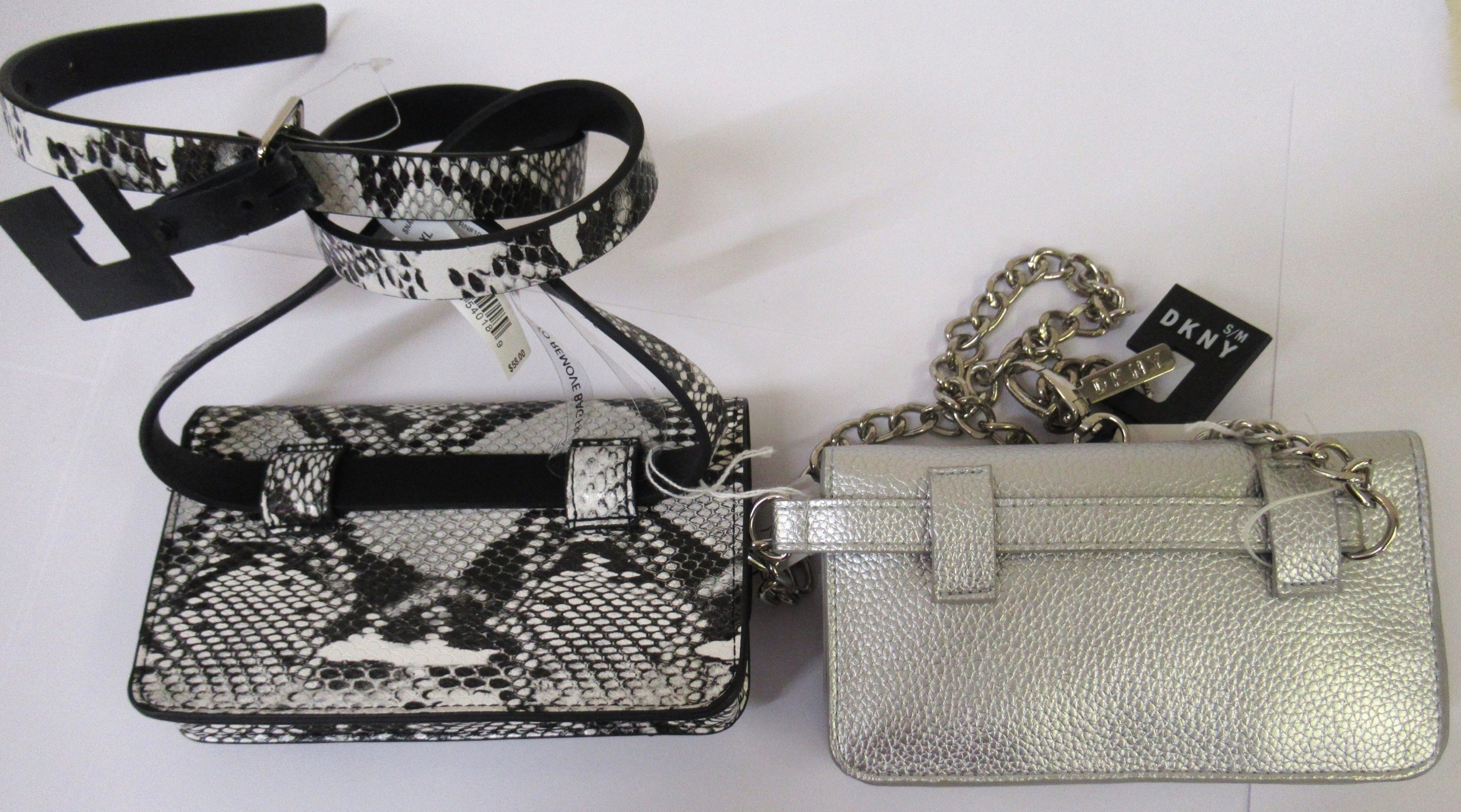DKNY, two belt purses, one with chain link strap, size S/M and size XL, as new with original tags