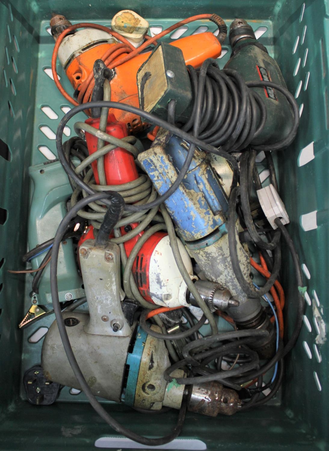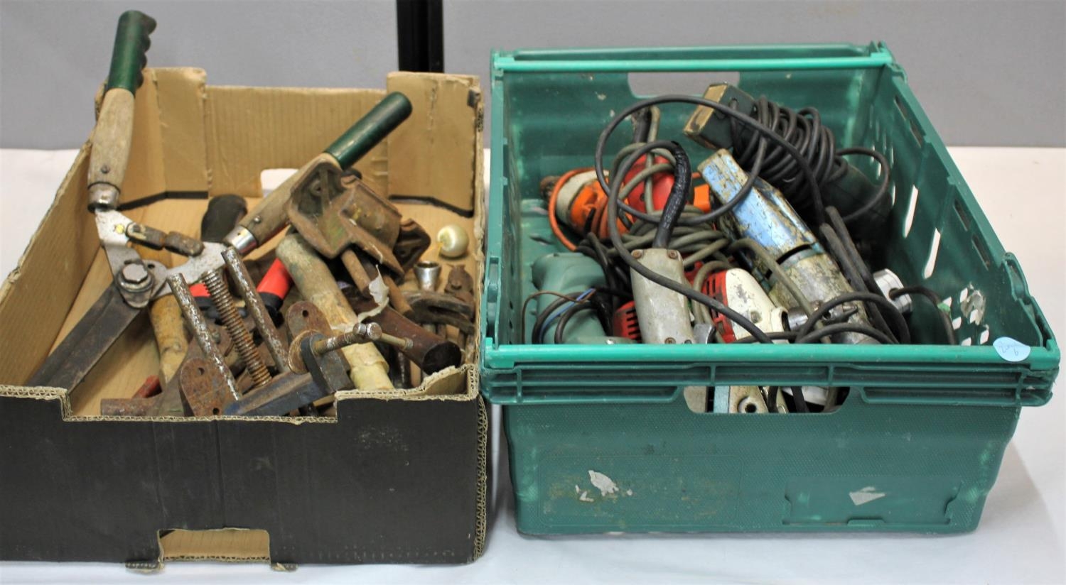 2 TRAYS OF TOOLS INCLUDING ELECTRIC DRILLS