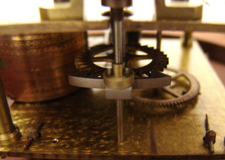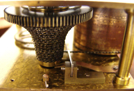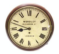 Mahogany cased single fusée wall clock, the circular dial painted with black Roman numerals and signed J.W. Benson, London, 37cm diameter