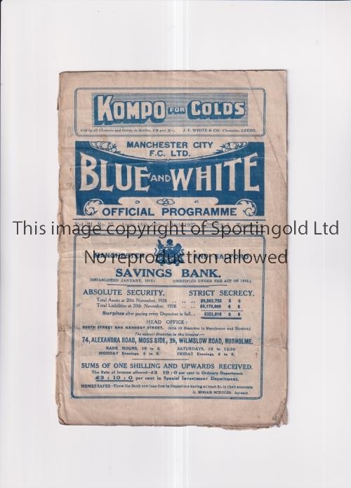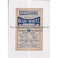 MANCHESTER CITY V DARLINGTON / BURNLEY / STOKE CITY 1927 Triple issue City home programme for the League match v Darlington 18/4/1927 and Reserves matches v Stoke 15/4/1927 and Burnley 16/4/1927. Creased and worn. Poor to fair